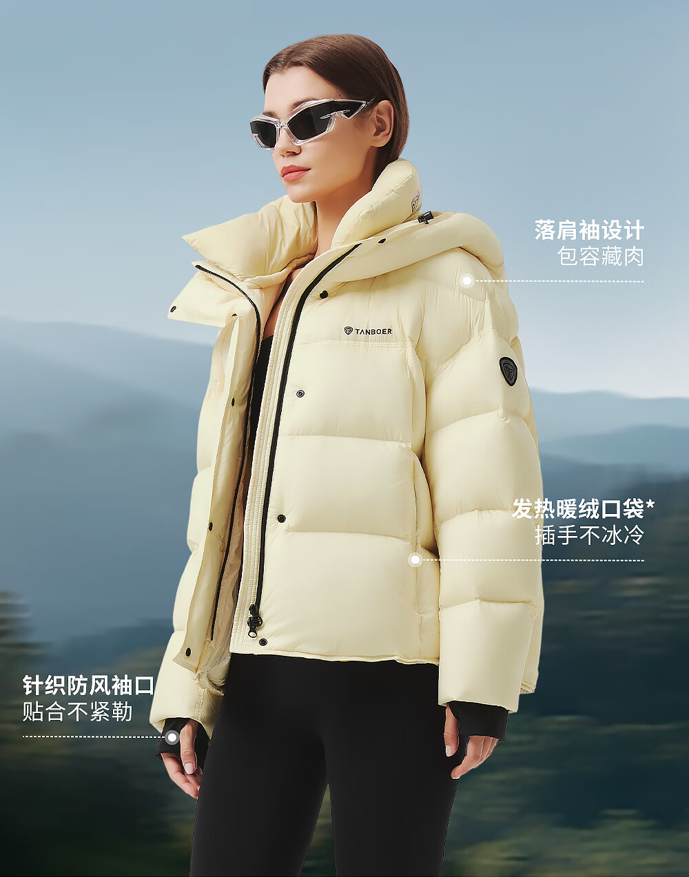 Tambor Zhou Ye's same style puff short down jacket women's winter coat thickened warm bread coat TB5530338Z black M (165)