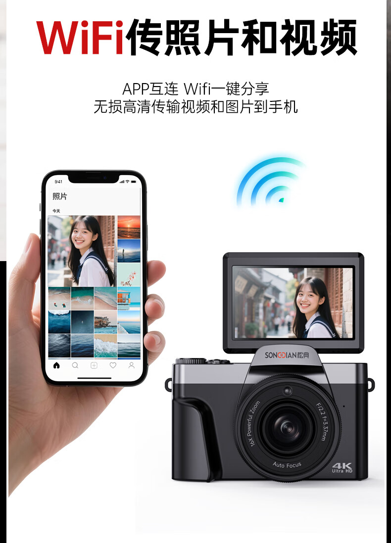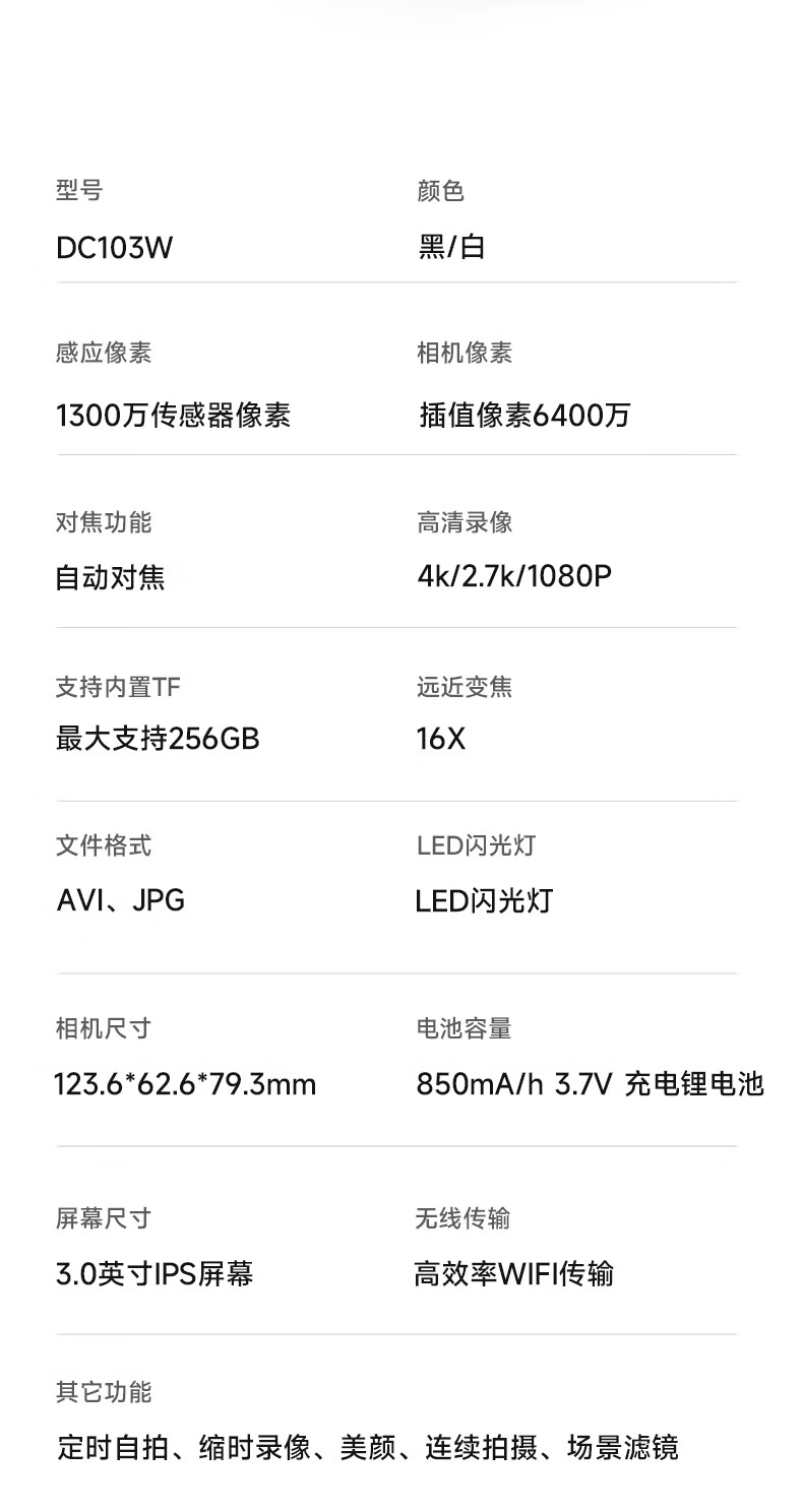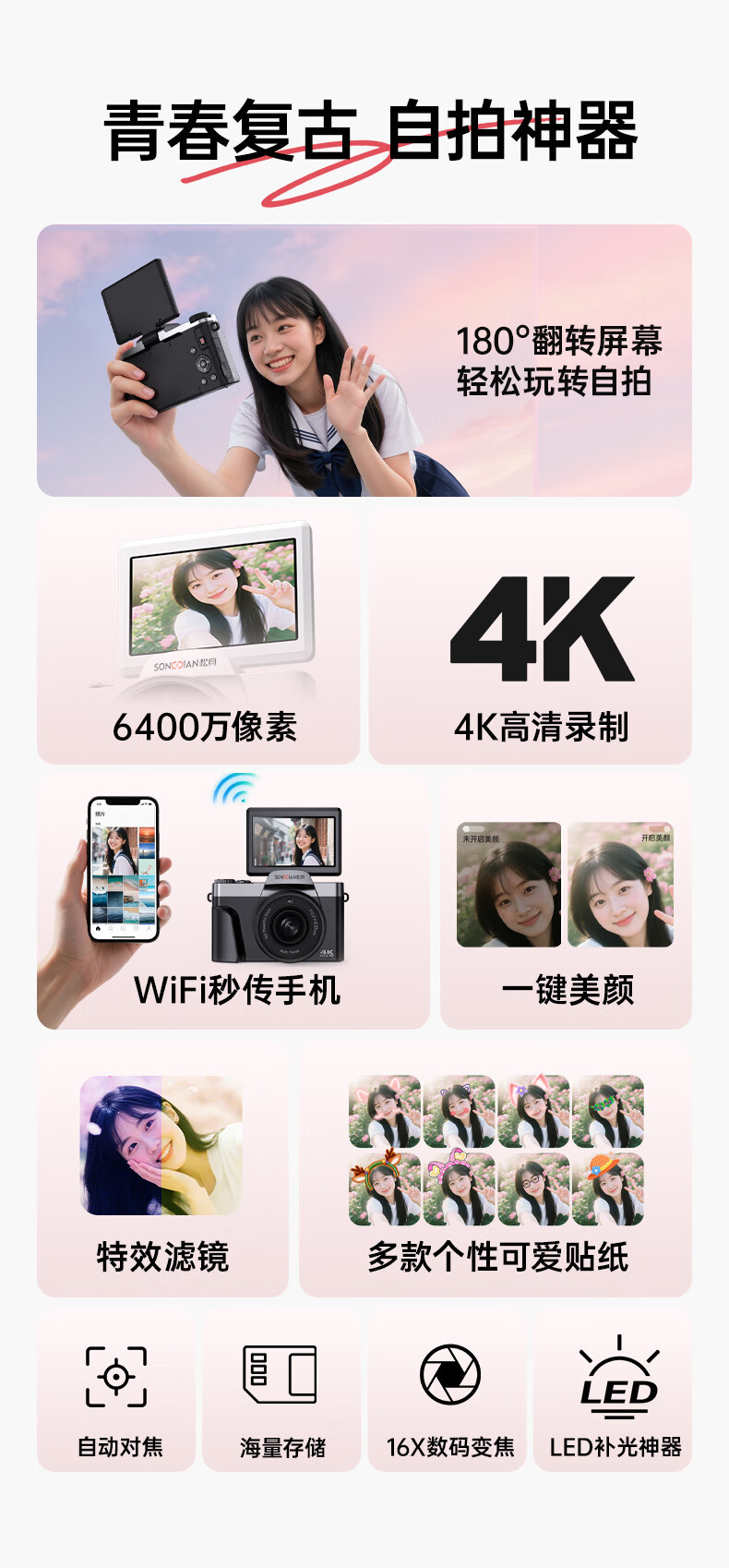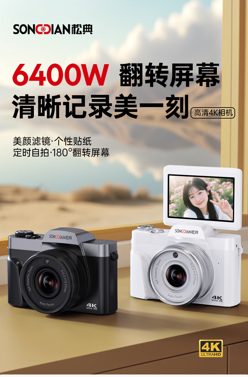 Songdian DC103W high-definition digital camera, flat CCD student party can upload to mobile phone, professional entry-level small mirrorless vlog photography retro camera, white, official standard + 32G memory, approximately 3,000 photos stored
