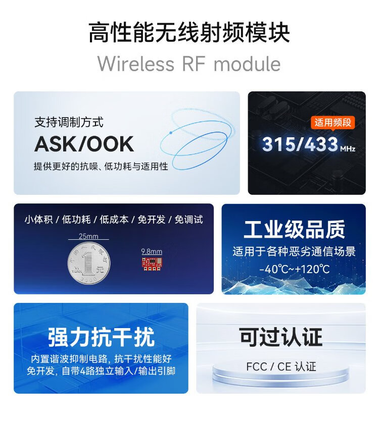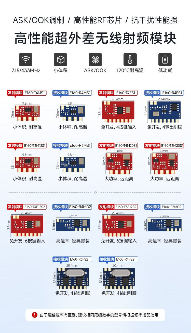 Ebyte 433/315Mhz wireless transceiver module ASK/OOK communication smart home appliance security remote control low cost E160-T4F12S2 development-free 433M transmitter module