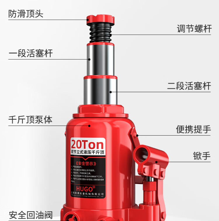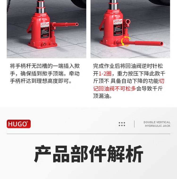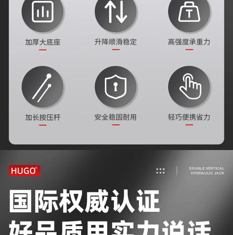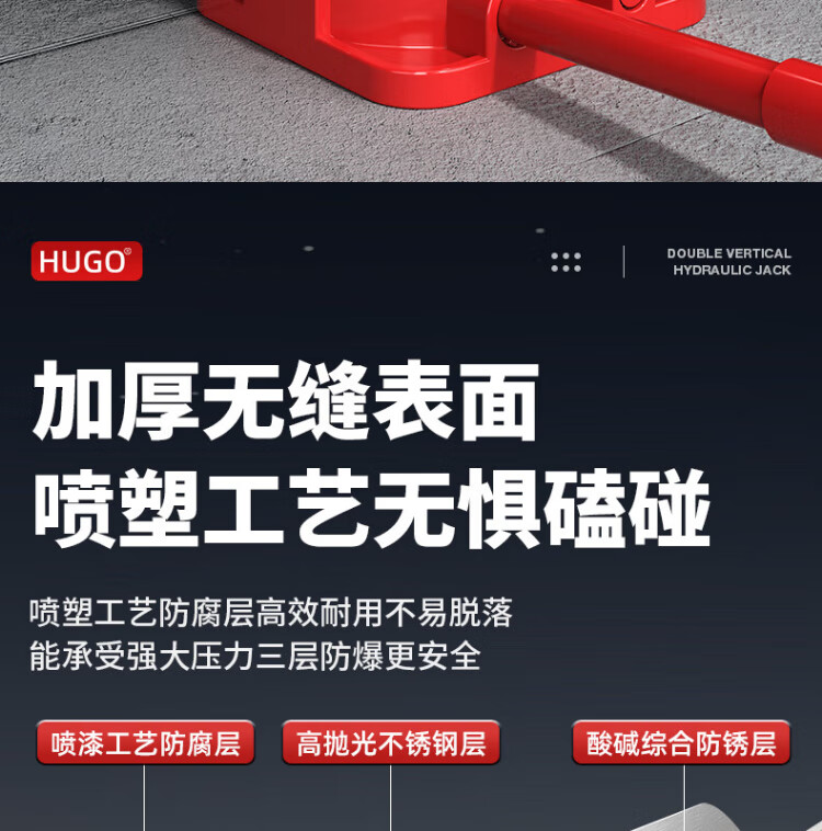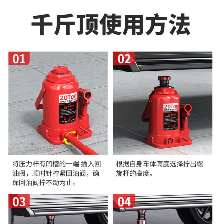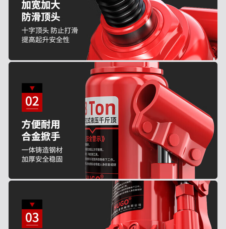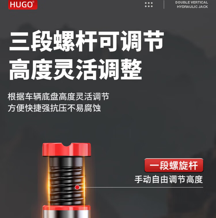 HUGO hydraulic jack double section vertical hydraulic jack car off-road hand jack 2/3/6/10 tons double section 3 tons