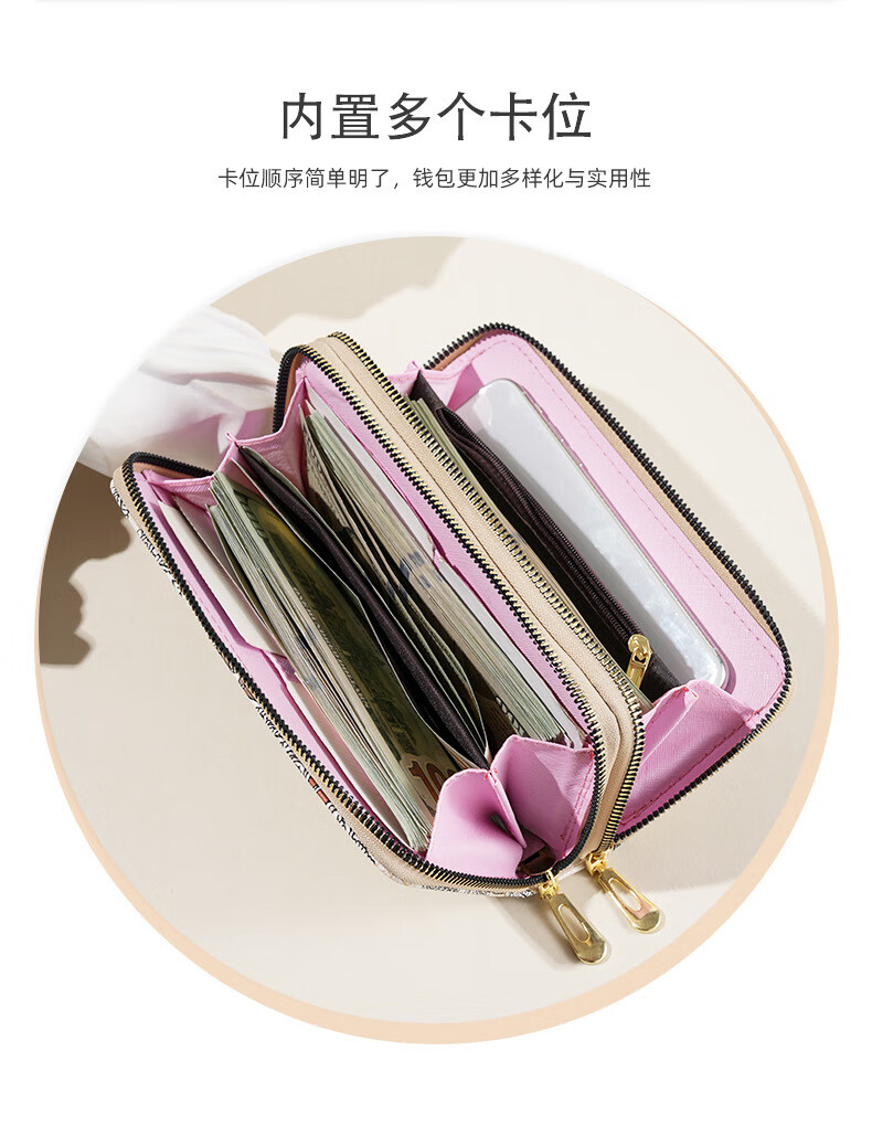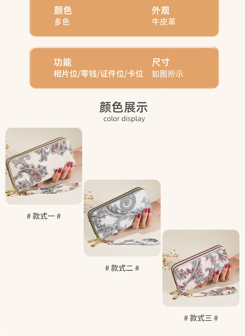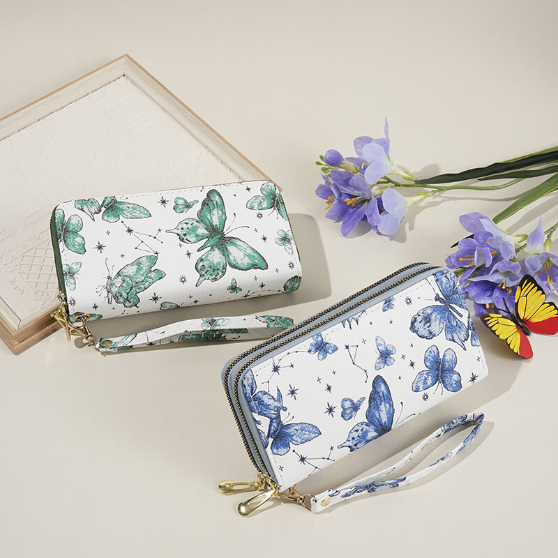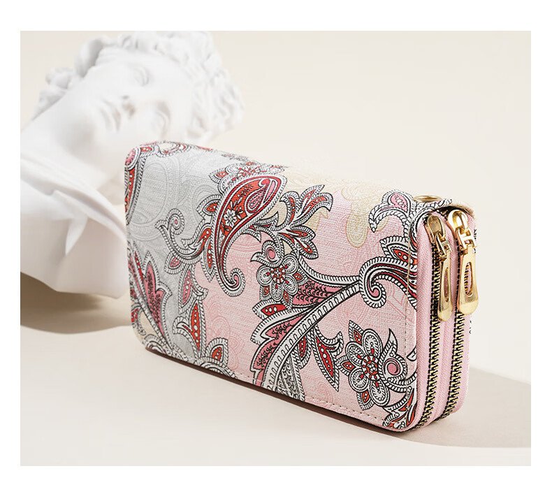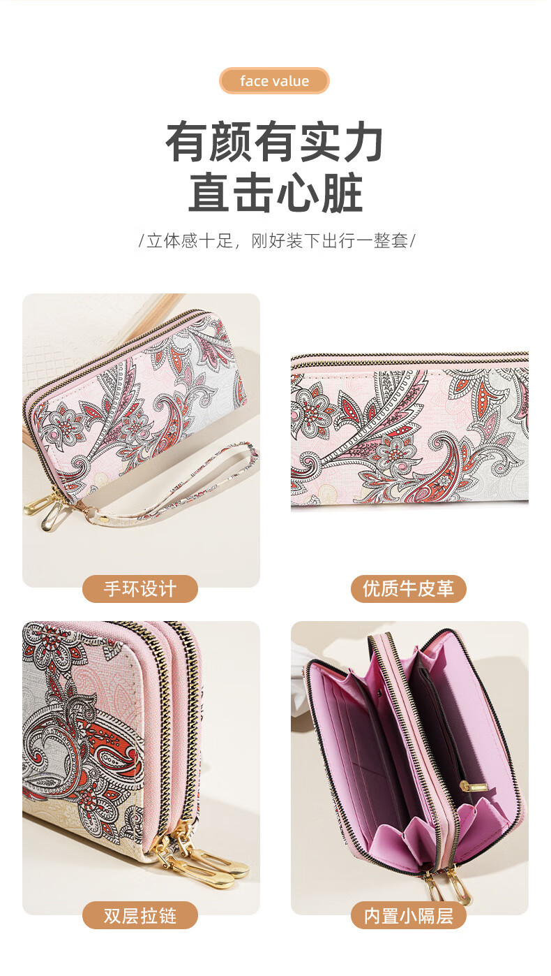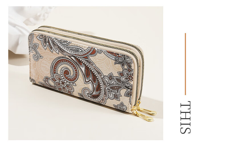 Ye Yu 2025 New Retro Print Lace Wallet Women's National Style Double Zipper Large Capacity Mobile Phone Bag Fashion Gray