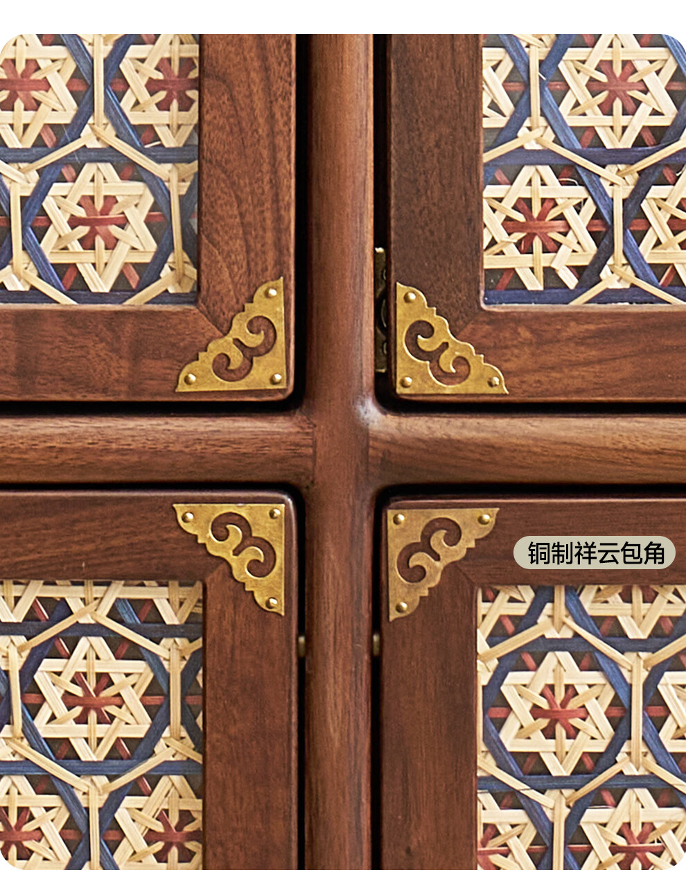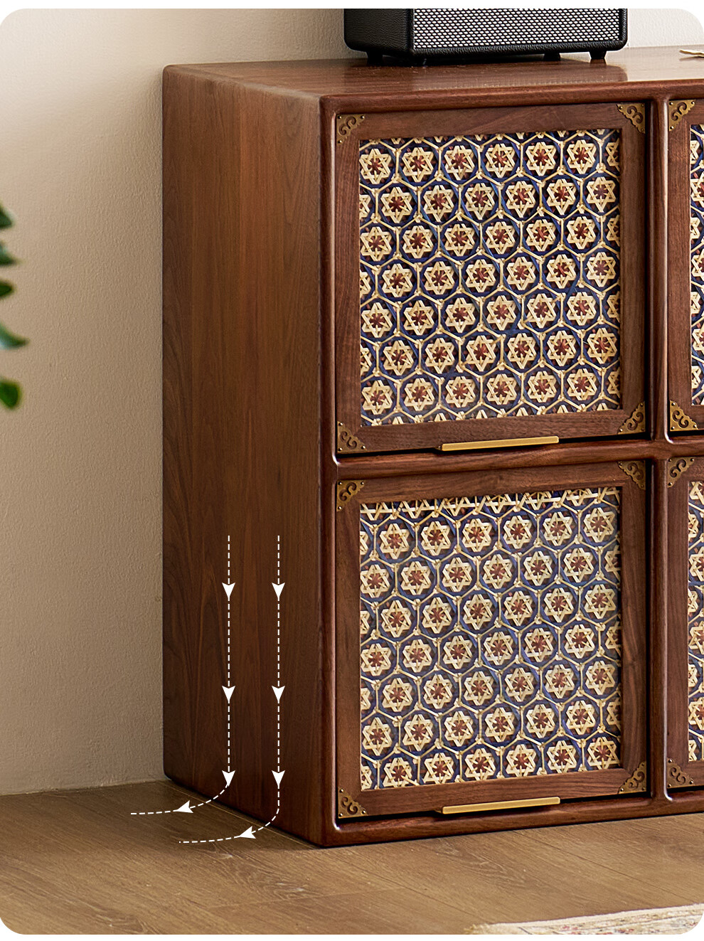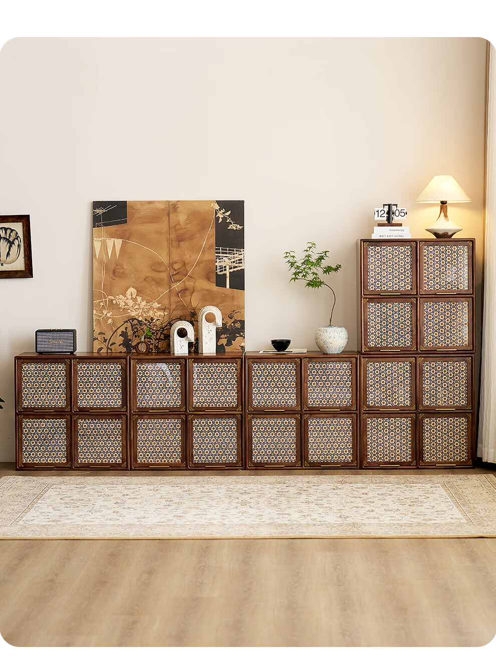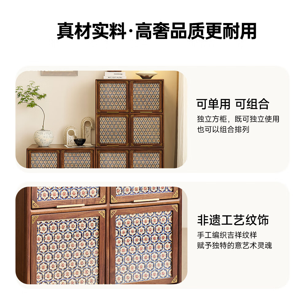 Zhidian North American black walnut intangible cultural heritage square cabinet living room retro rattan lattice cabinet solid wood free combination floor cabinet bookcase North American black walnut square cabinet