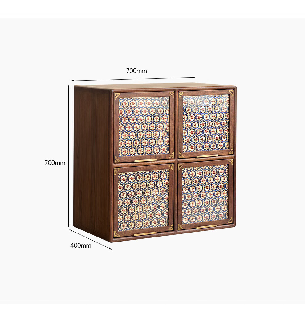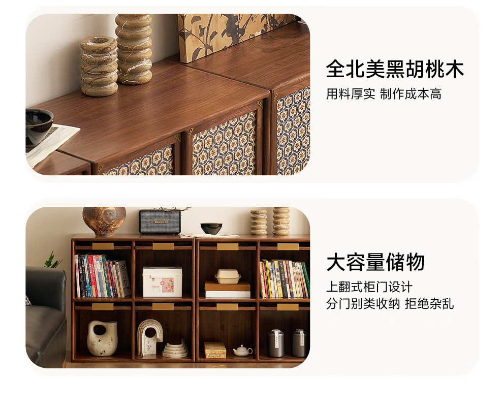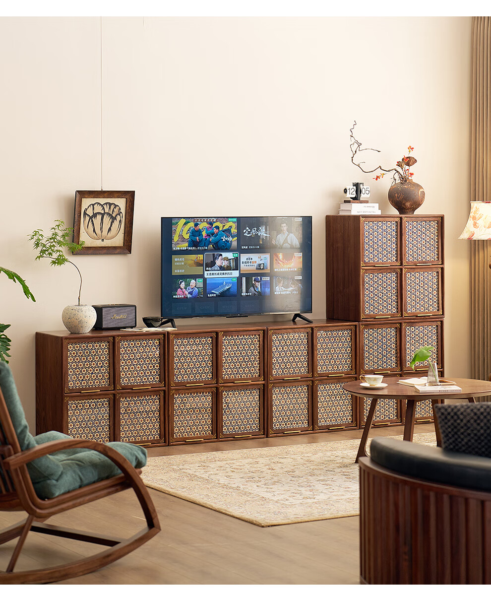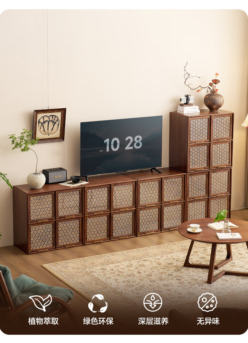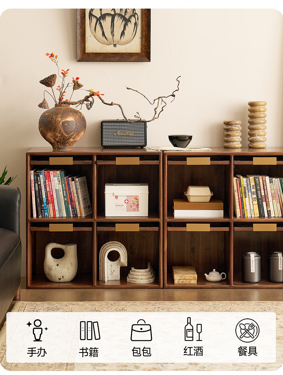 Zhidian North American black walnut intangible cultural heritage square cabinet living room retro rattan lattice cabinet solid wood free combination floor cabinet bookcase North American black walnut square cabinet