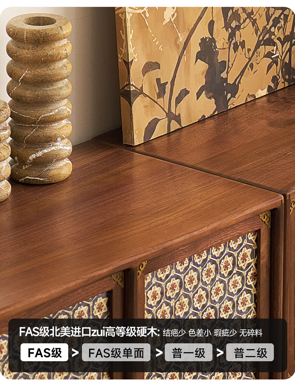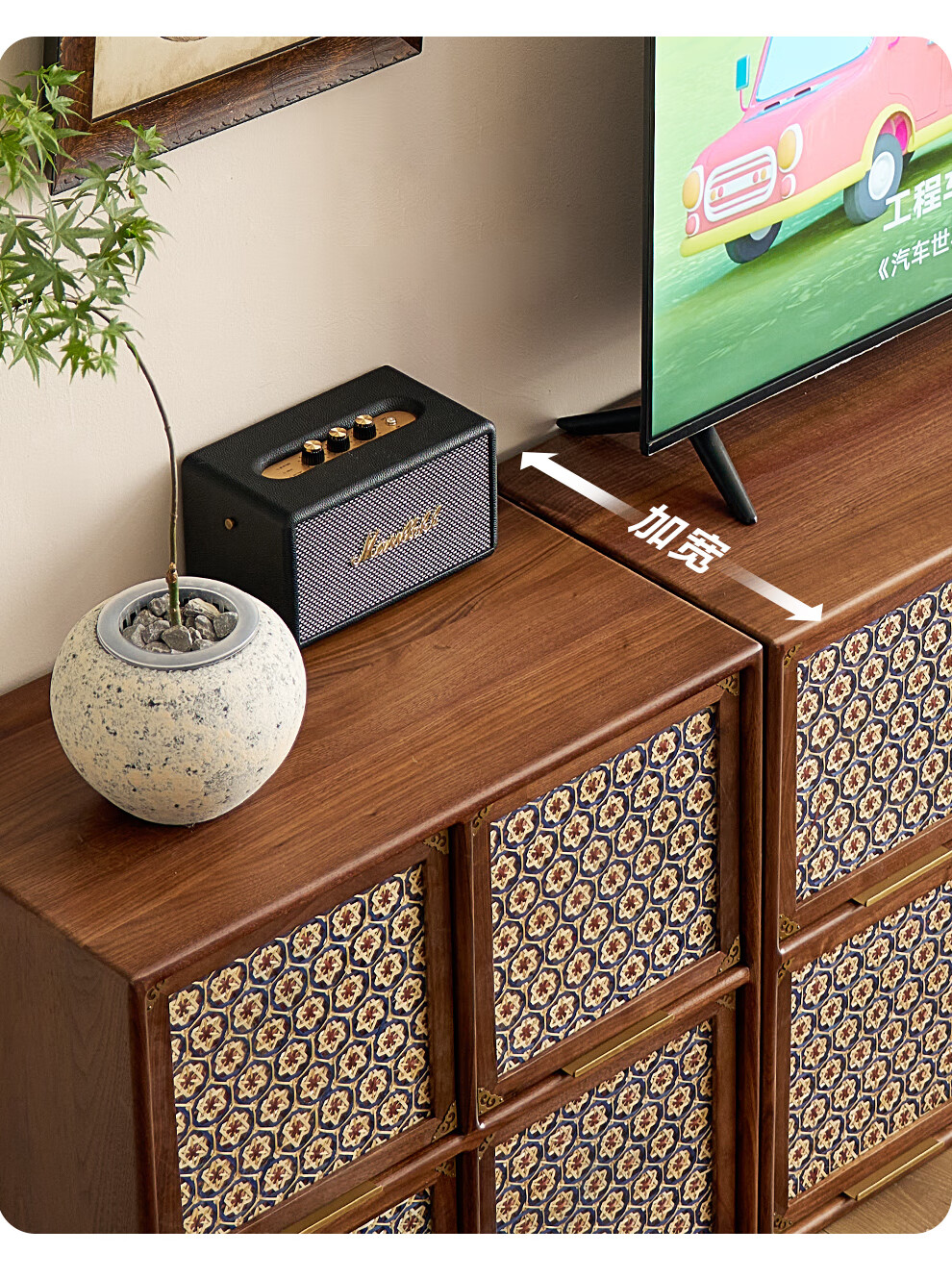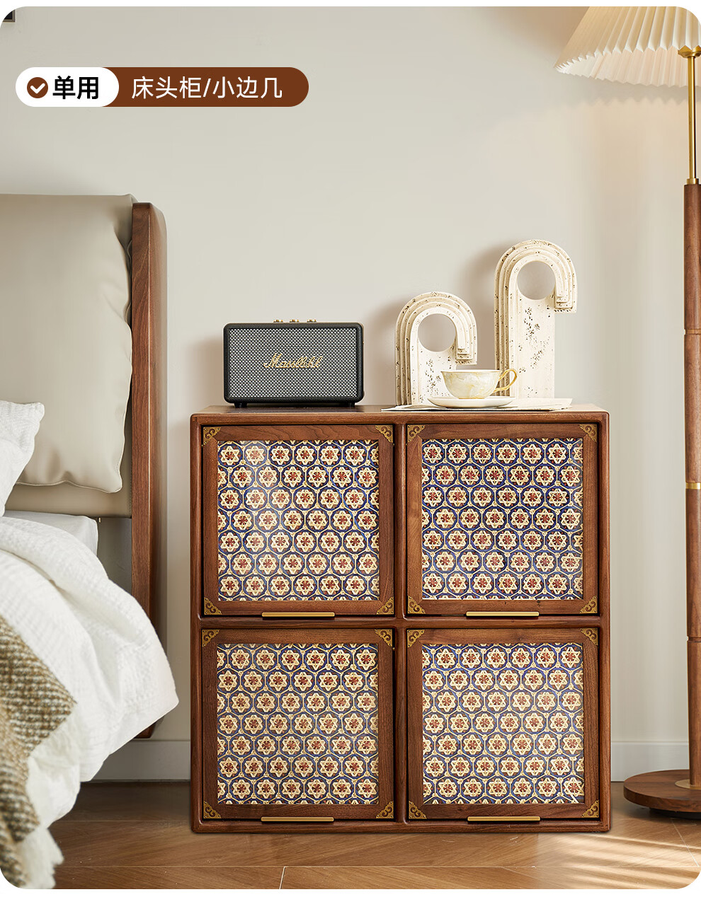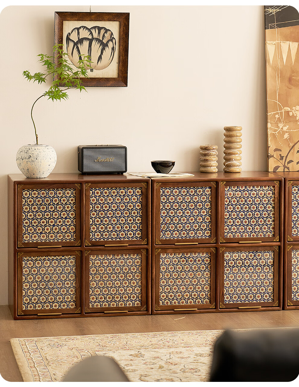 Zhidian North American black walnut intangible cultural heritage square cabinet living room retro rattan lattice cabinet solid wood free combination floor cabinet bookcase North American black walnut square cabinet
