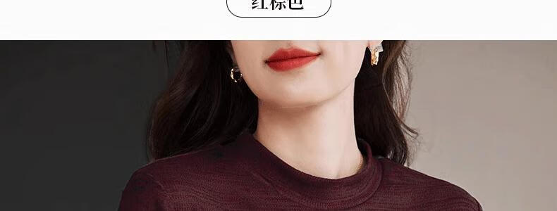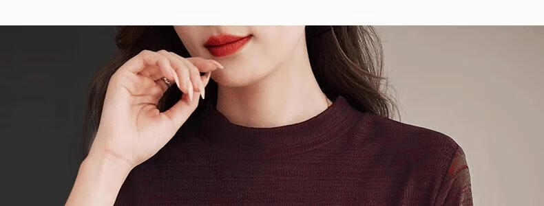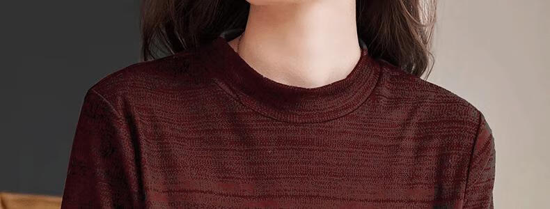 Pierre Cardin German velvet bottoming shirt women's 2026 autumn and winter new mother long-sleeved T-shirt large size warm half turtleneck top red green 5XL (recommended 180-200 pounds)