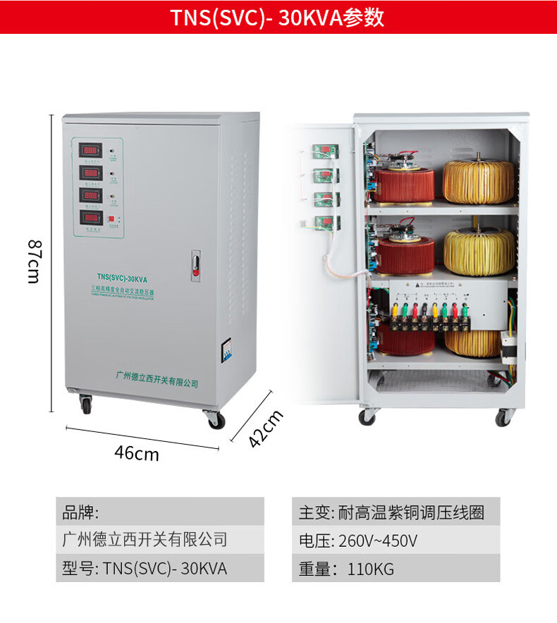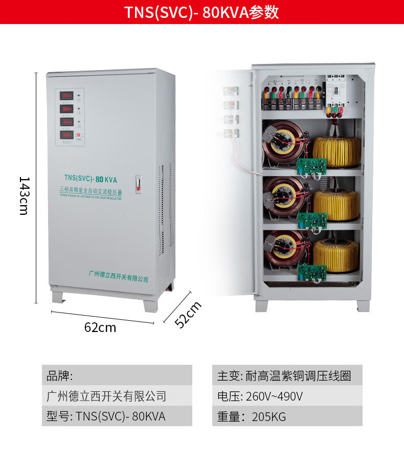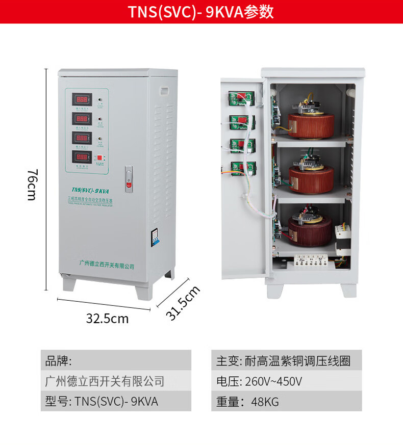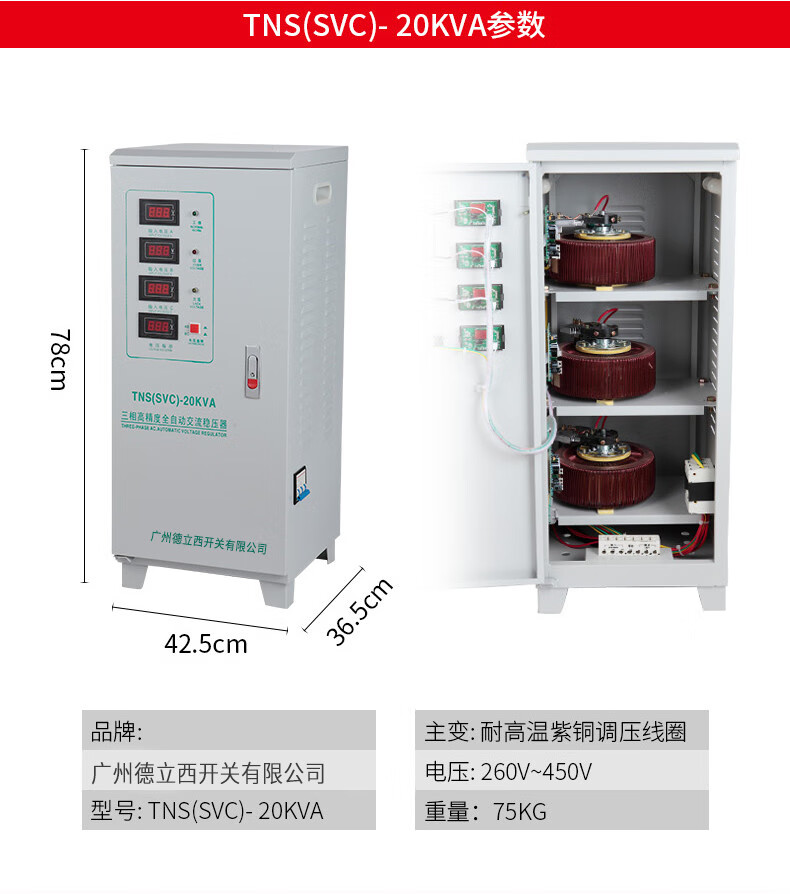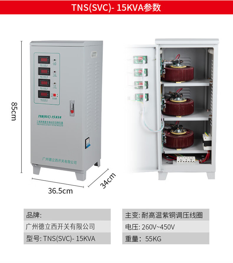 Cchichi Guangzhou Delixi three-phase 380v fully automatic voltage regulator 15/20/30/40/50/60/80/100/120KW 3KW