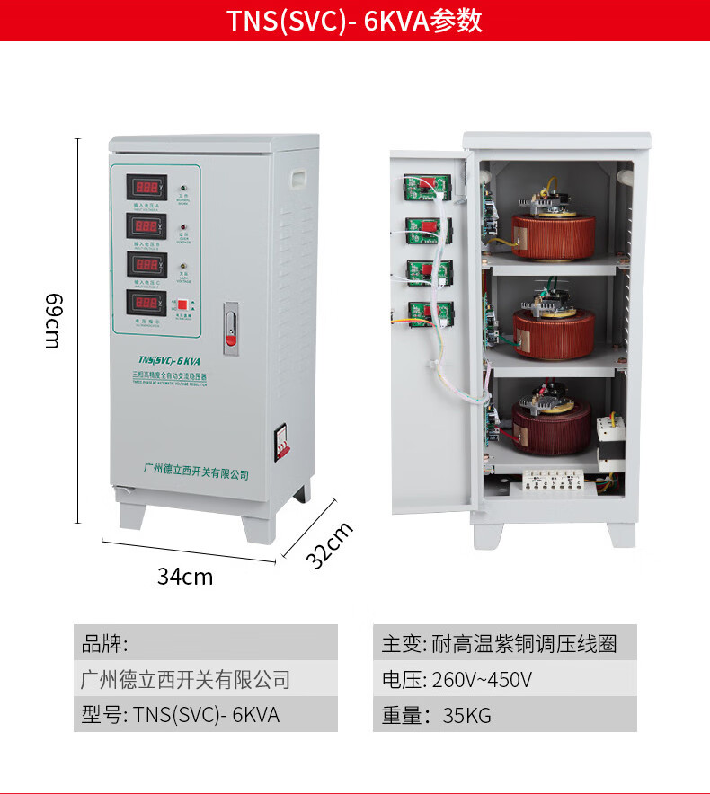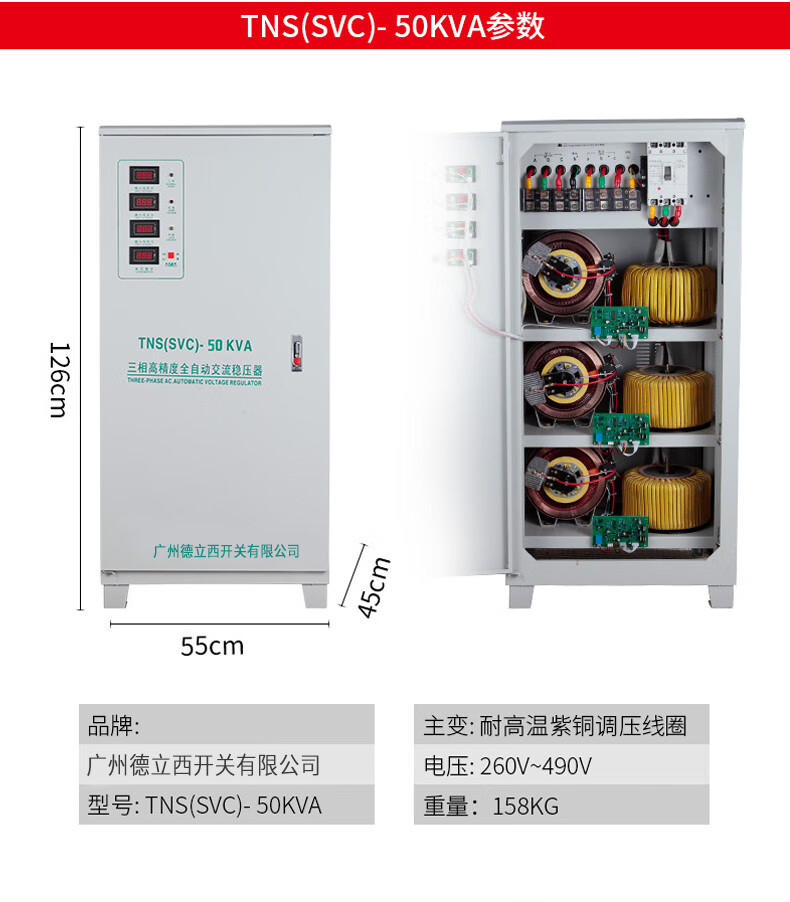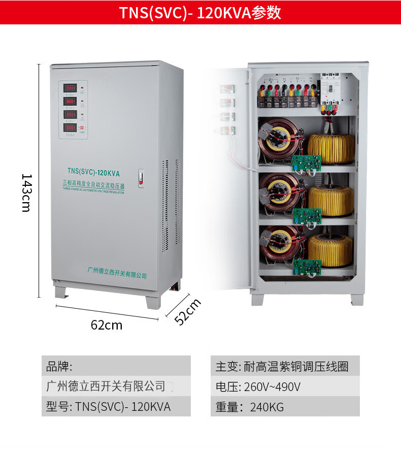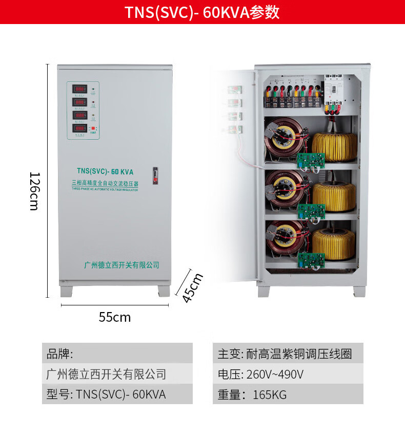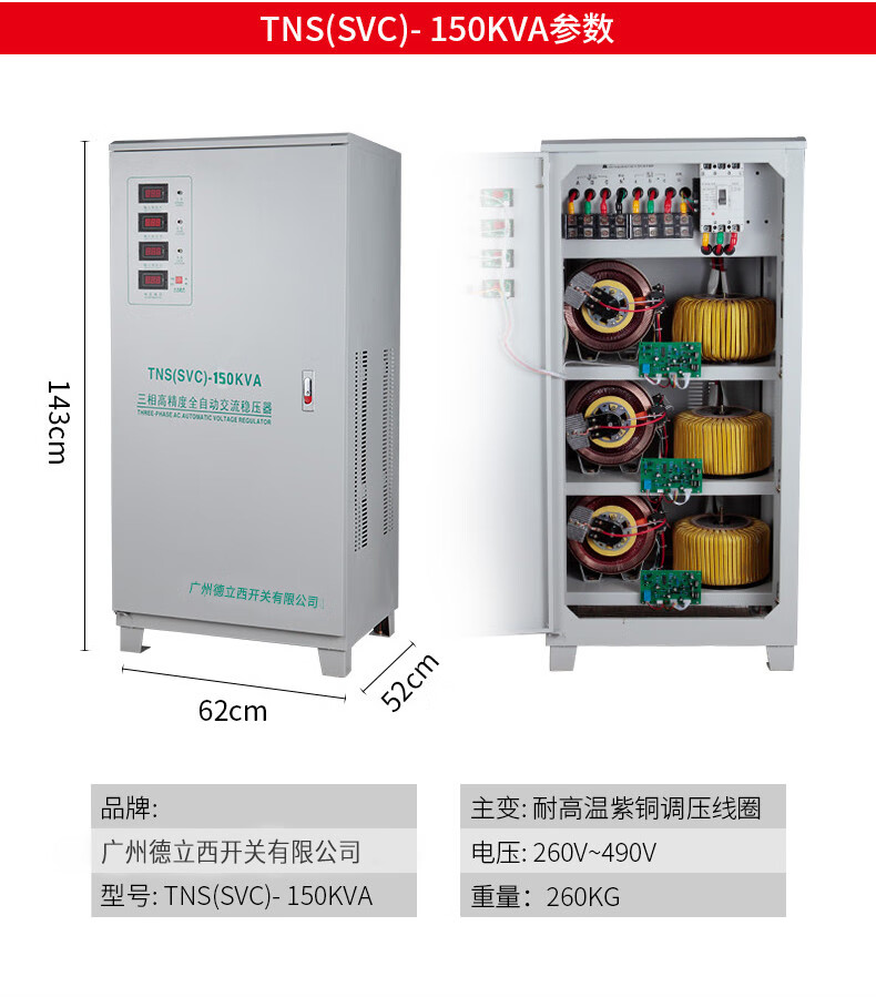 Cchichi Guangzhou Delixi three-phase 380v fully automatic voltage regulator 15/20/30/40/50/60/80/100/120KW 3KW