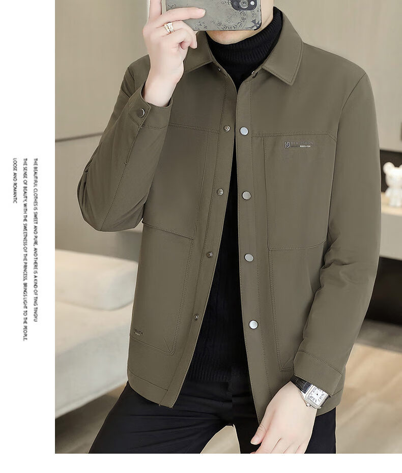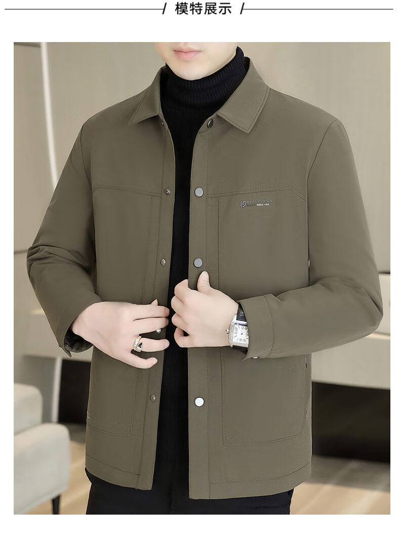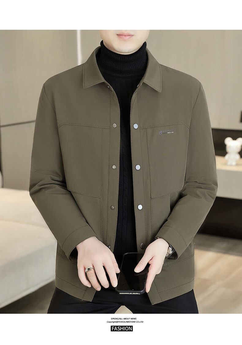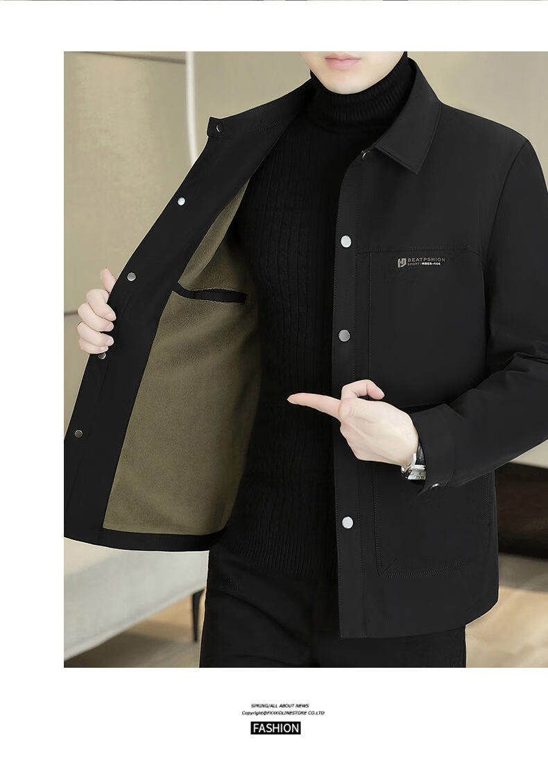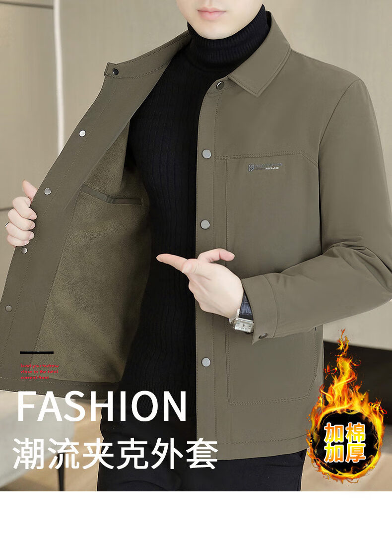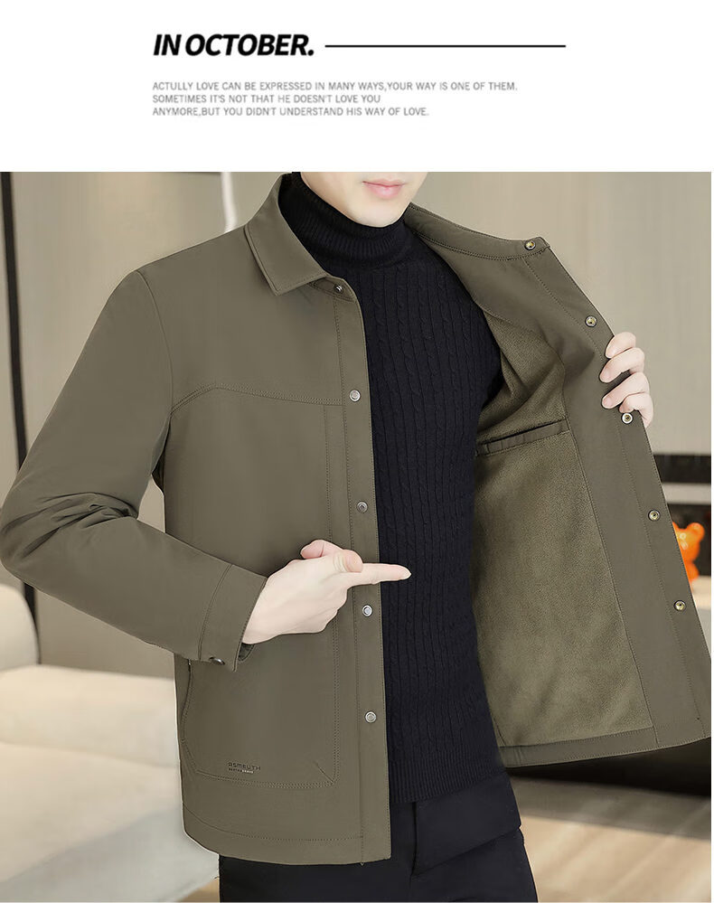 Pierre Cardin Medium Thick Lapel Jacket Men's Autumn and Winter 2025 New Versatile Thickened Warm Jacket Casual Tops Men's Khaki XL 180/92A