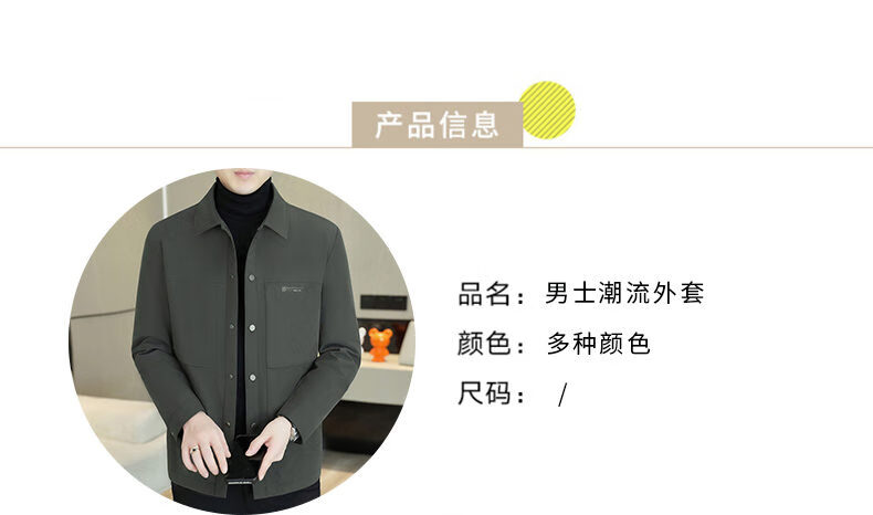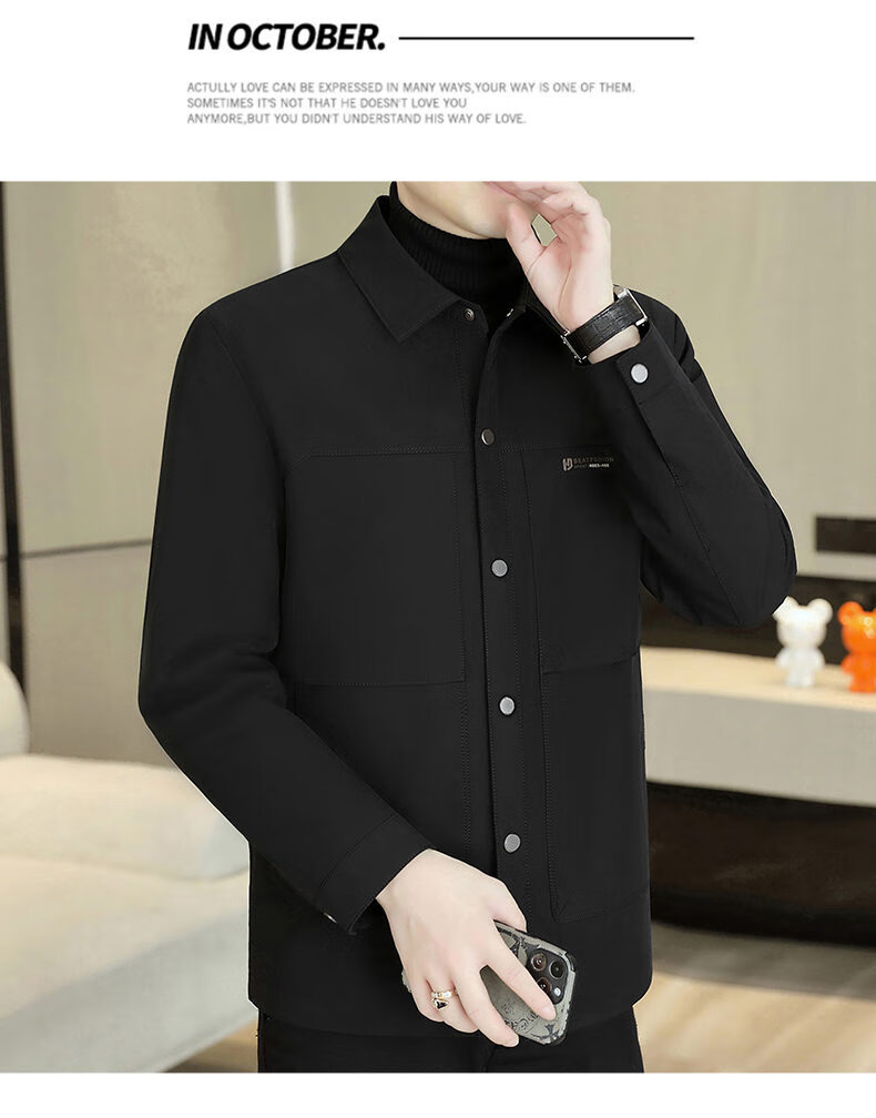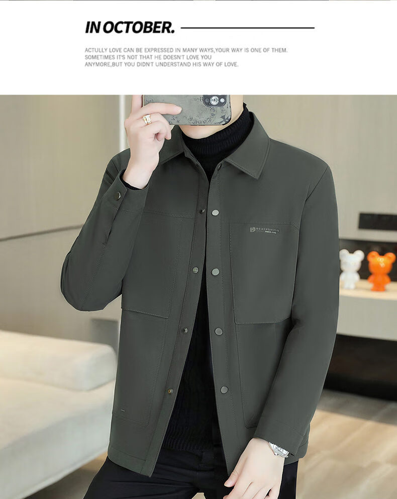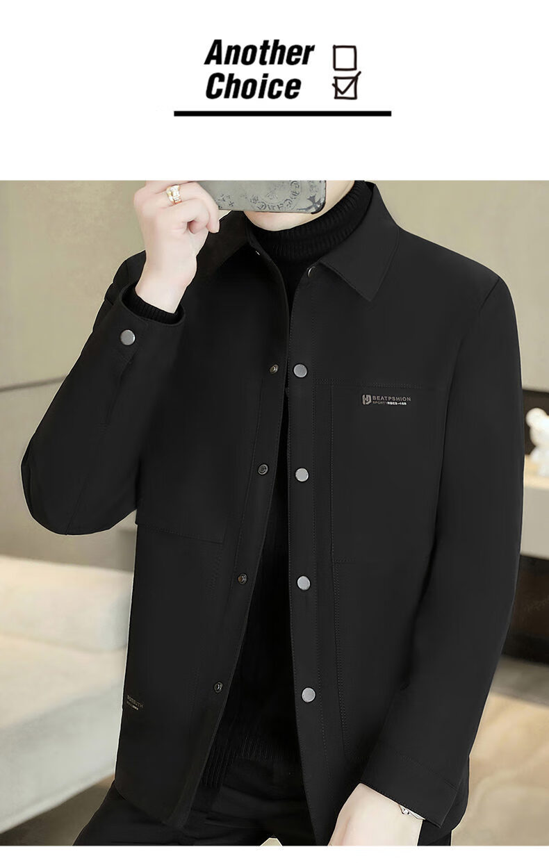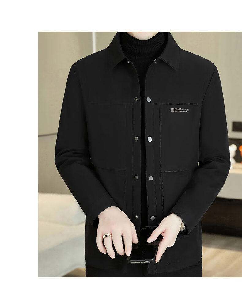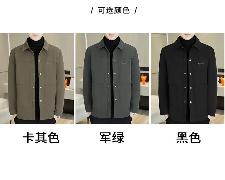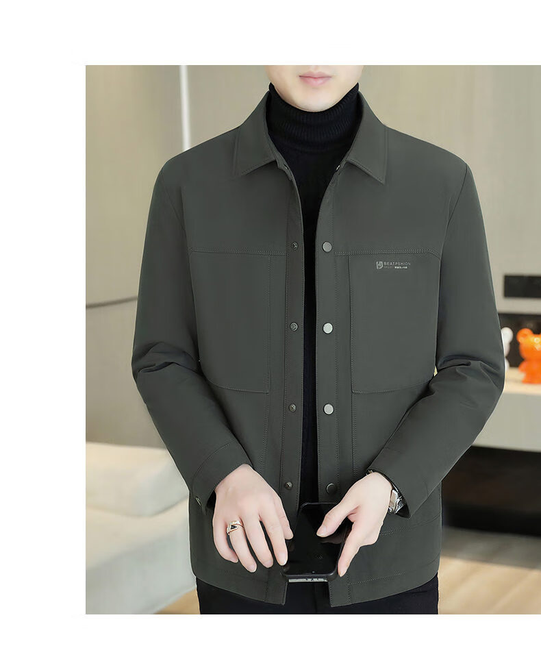 Pierre Cardin Medium Thick Lapel Jacket Men's Autumn and Winter 2025 New Versatile Thickened Warm Jacket Casual Tops Men's Khaki XL 180/92A