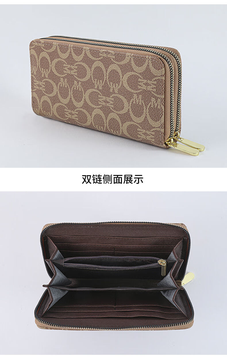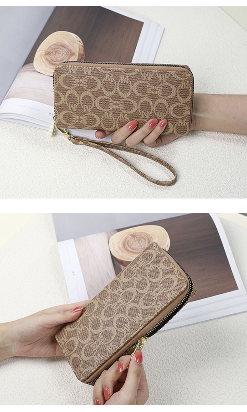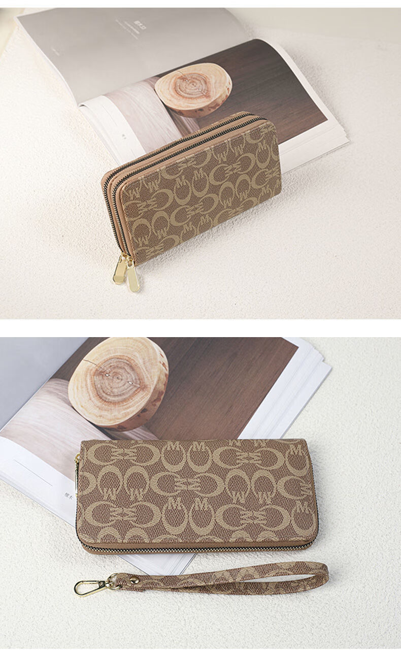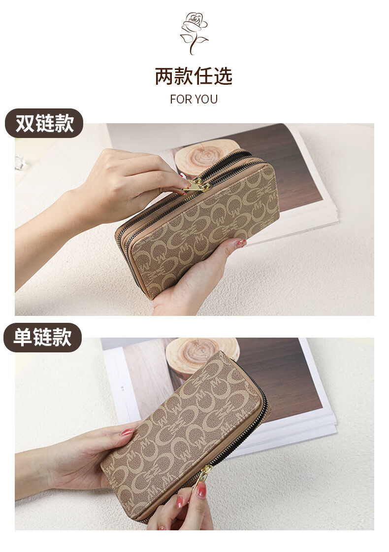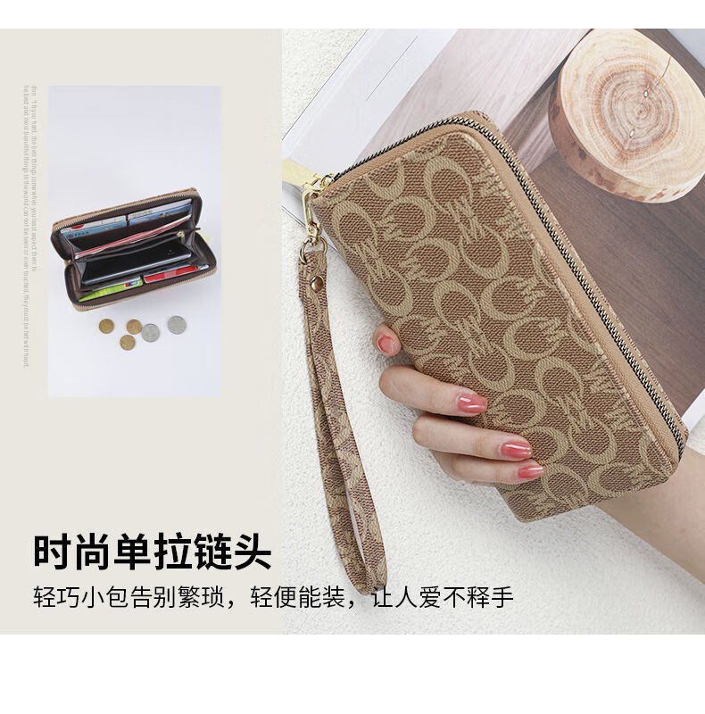 Ye Yu 2025 new long women's wallet, simple and fashionable hand wallet, trendy style, brown double zipper (free wrist strap)