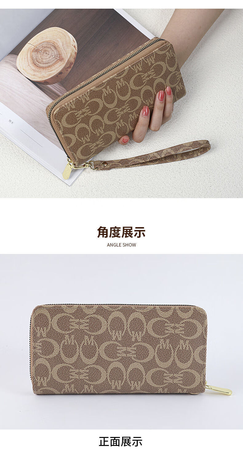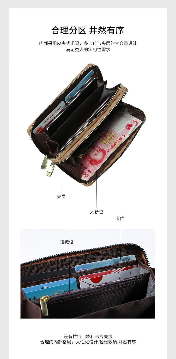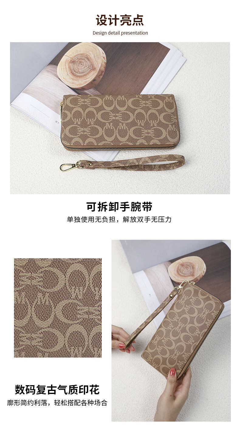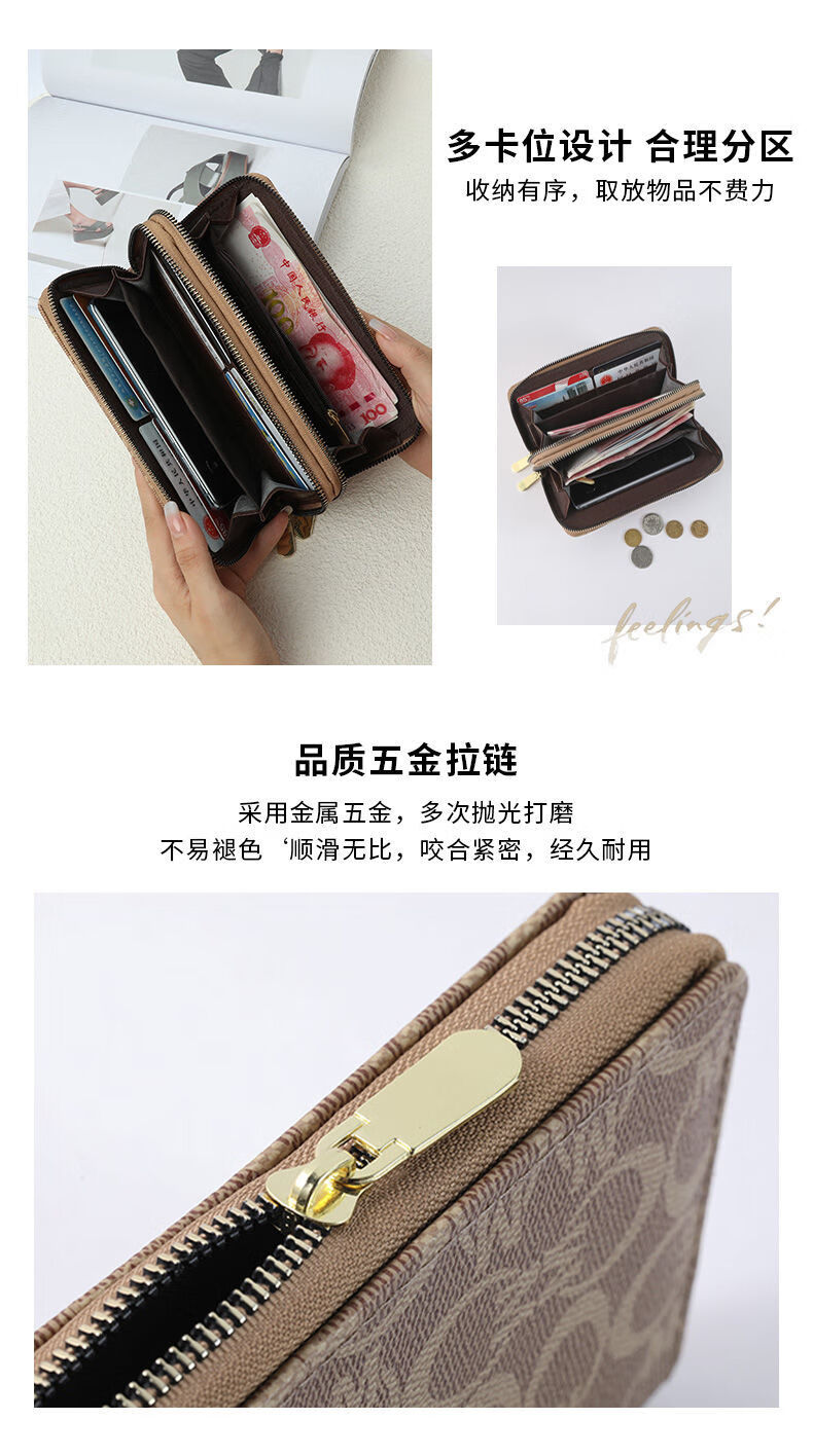 Ye Yu 2025 new long women's wallet, simple and fashionable hand wallet, trendy style, brown double zipper (free wrist strap)