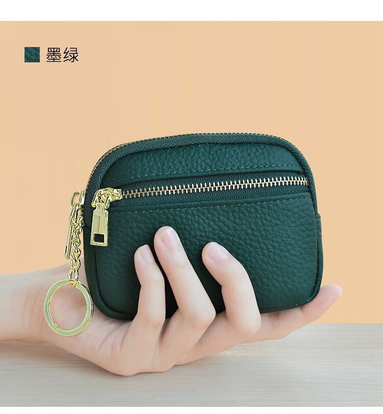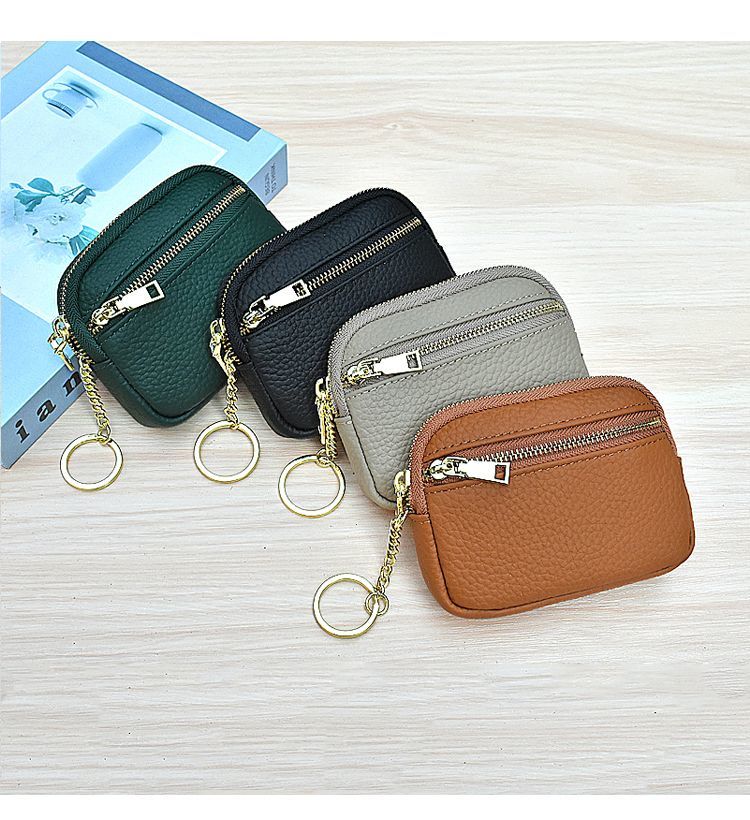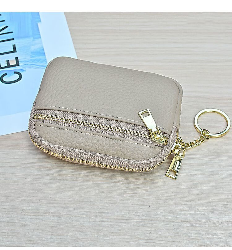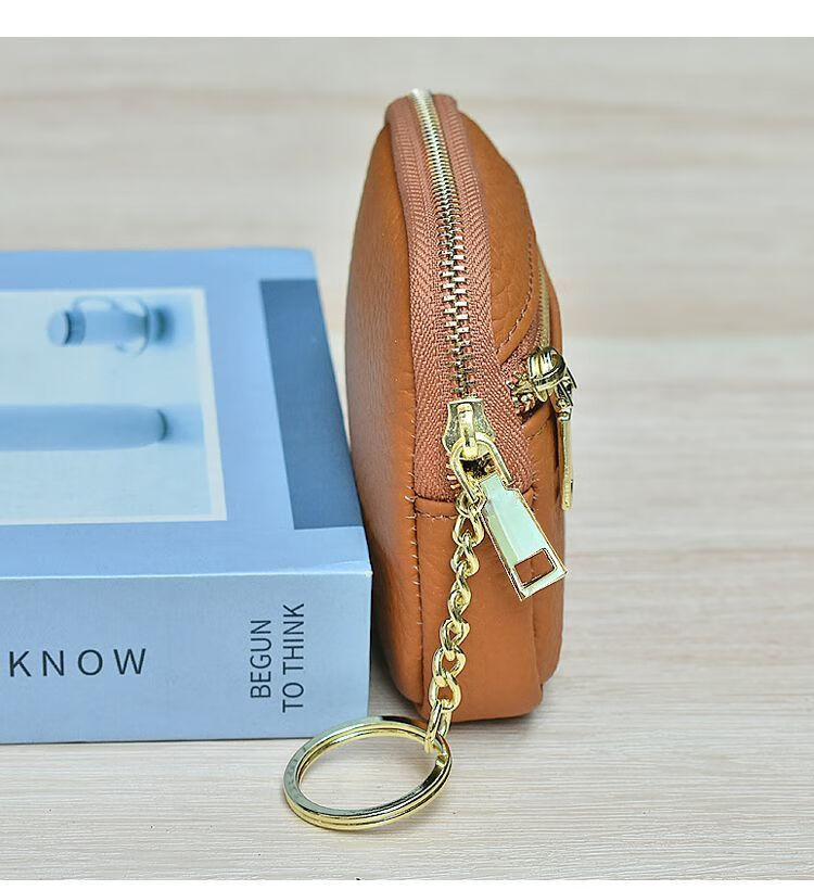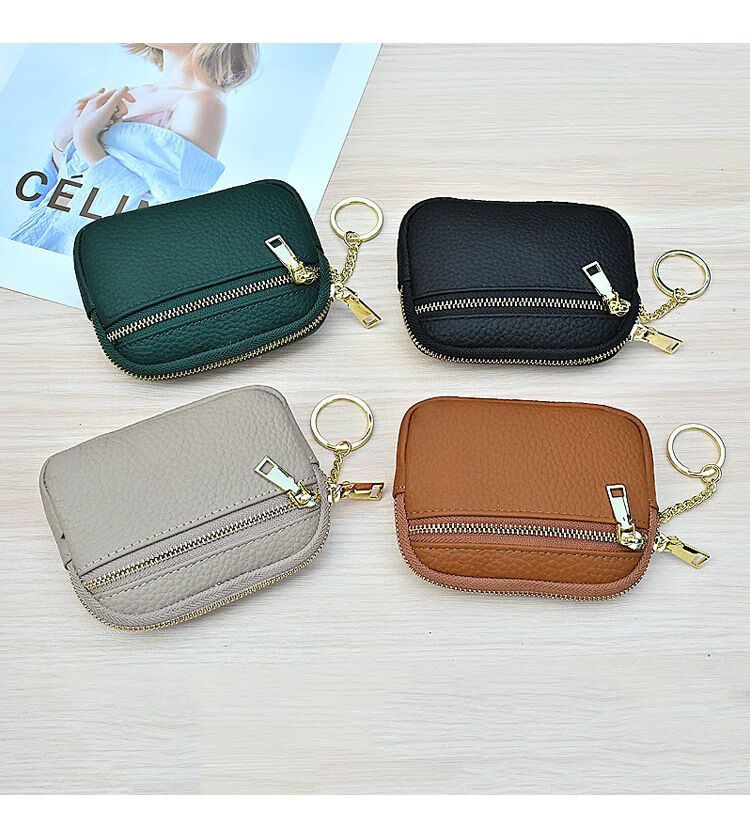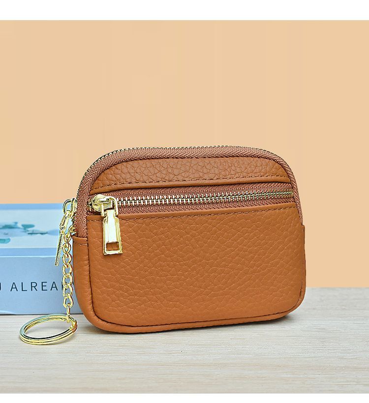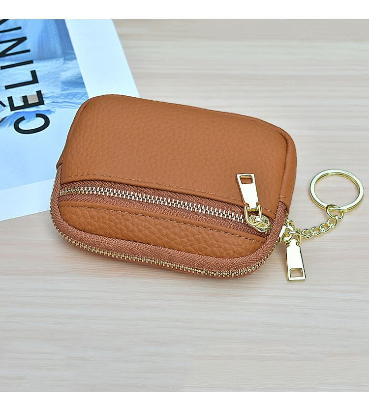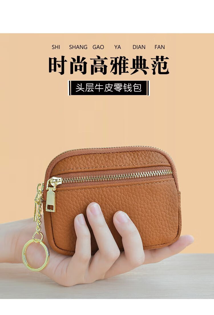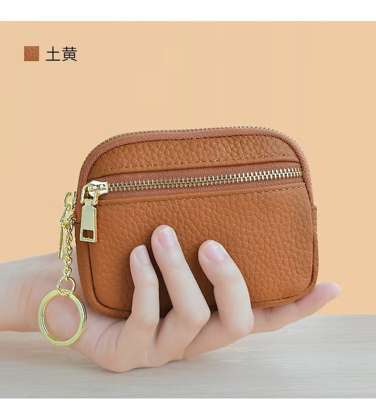 Ye Yu's new women's mini bag coin purse double zipper simple soft leather coin short style earthy yellow