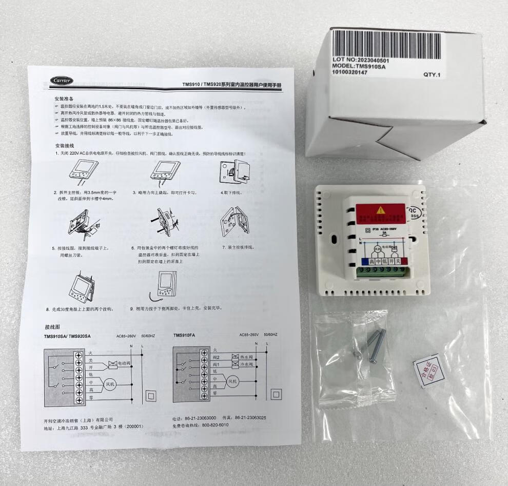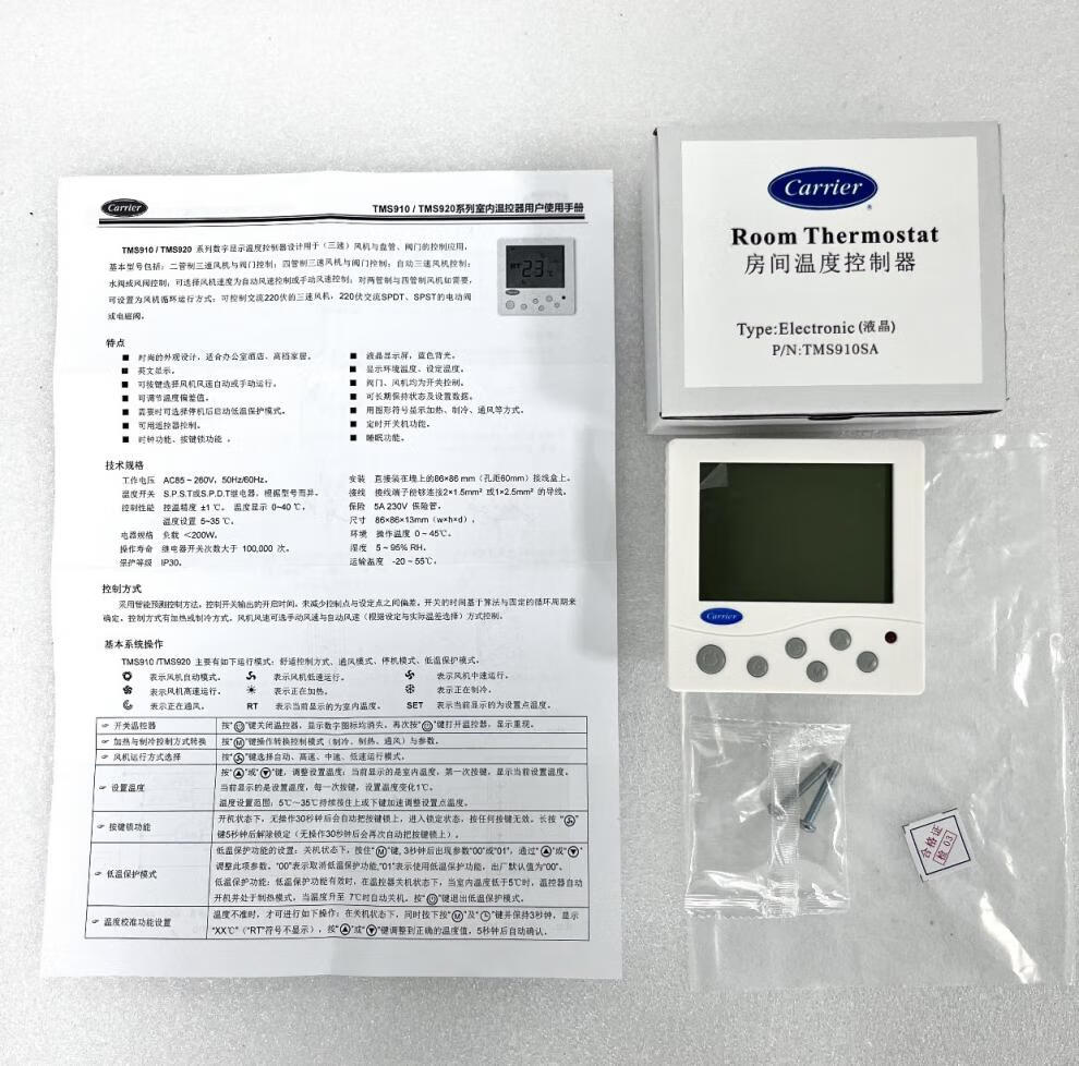Carrier Carrier central water air conditioning LCD thermostat fan coil three-speed switch panel TMS910SA TMS910SA-OS (external probe + probe line)
