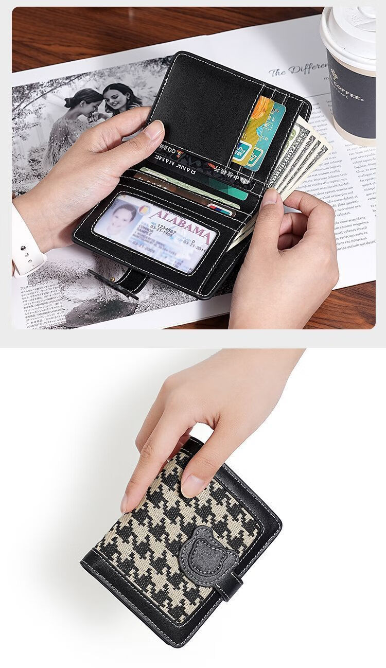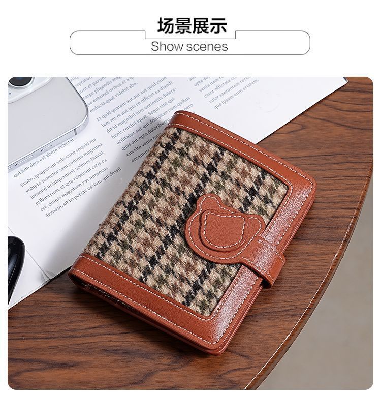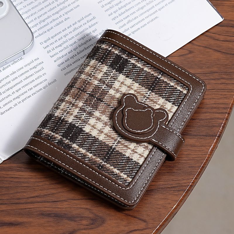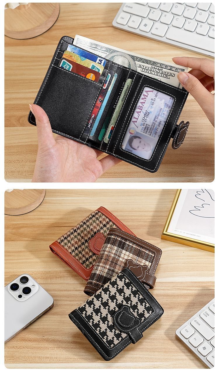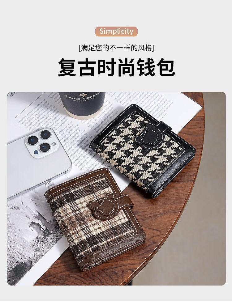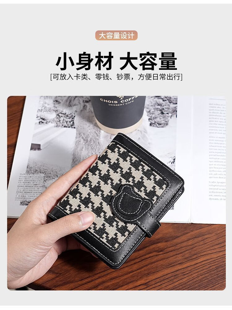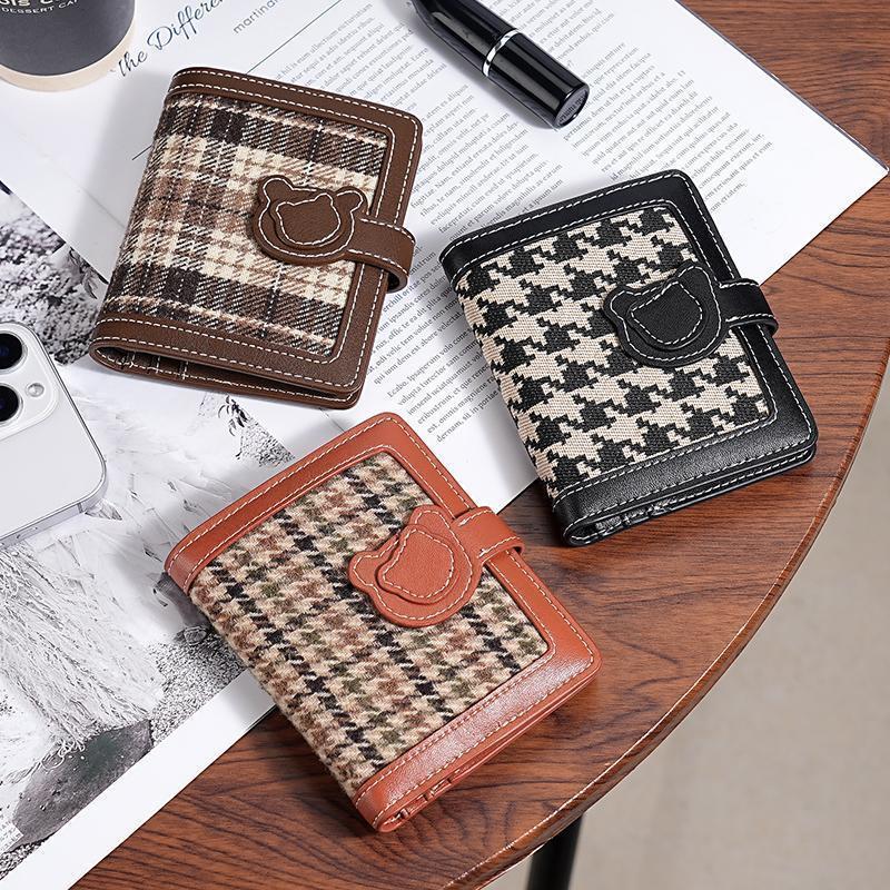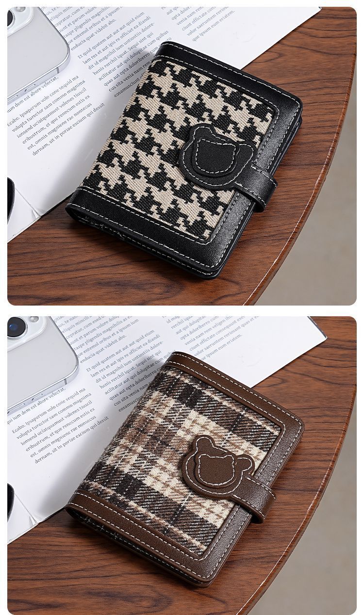 Ye Yu's new original cute Mao Ni Bear Wallet 2025 Autumn Plaid Short Lightweight Card Holder Wallet Large Capacity Women Houndstooth Black Regular Style