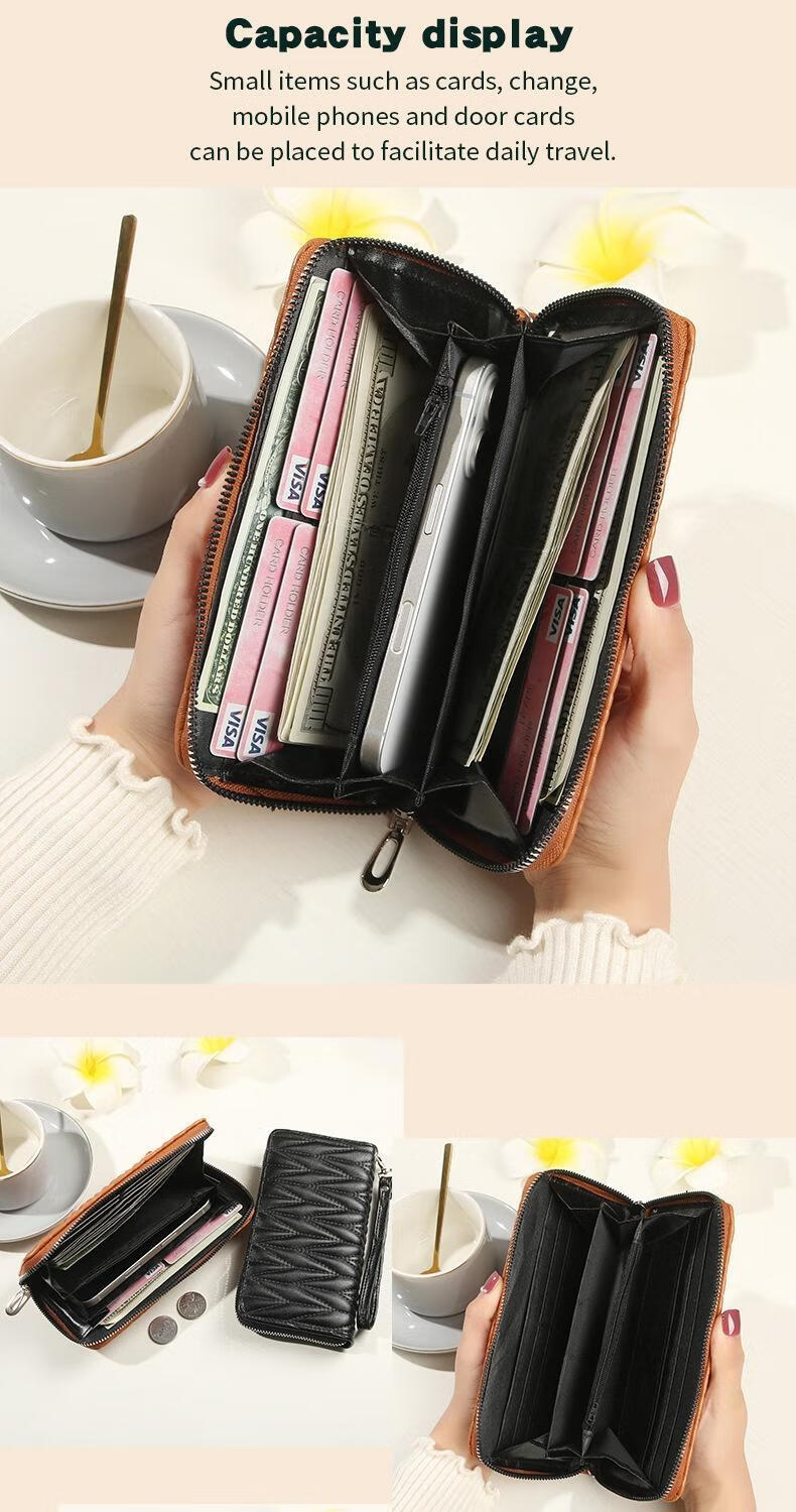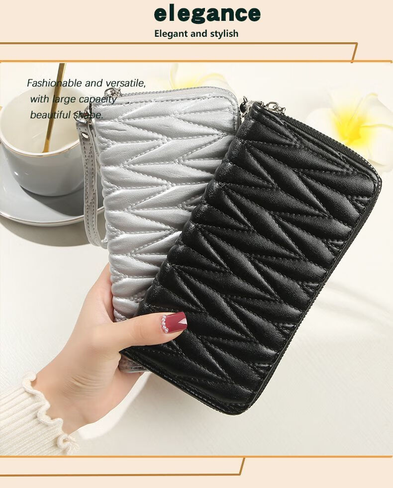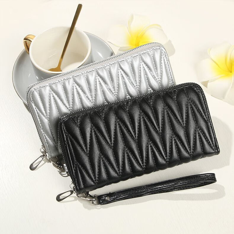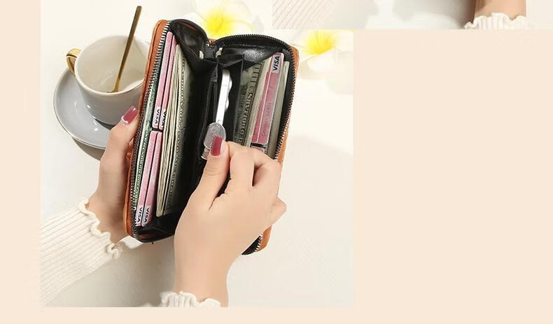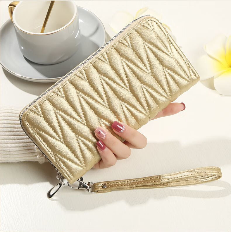 Ye Yu cross-border new 2025 wallet women's long embroidery mobile phone bag wallet multi-card slot card bag large capacity clutch bag trendy gold