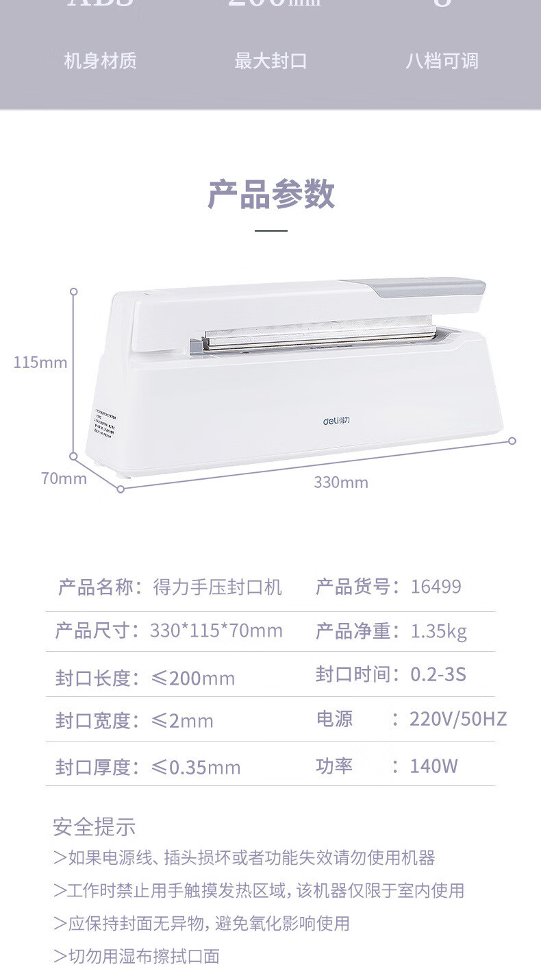 Deli Deli hand pressure sealing machine food preservation sealing machine packaging machine small packaging machine sealing and plastic sealing machine 16499