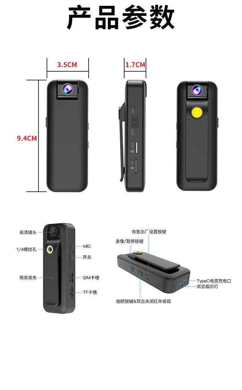 Yinwei HD camera conference recorder video recorder wearable back clip camera wireless portable card recording rechargeable battery camera mobile phone remote monitoring AG12-WIFI remote ultra-clear recording + remote power on and off 128G