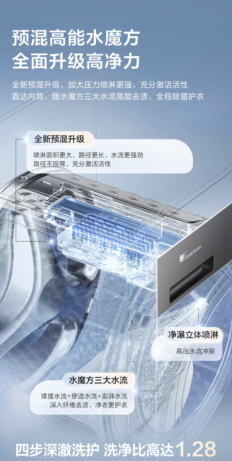 LittleSwan drum washing machine fully automatic household 10kg water cube flat screen free insert 1.28 ultra-high cleaning ratio AI smart investment first-class energy efficiency home appliance subsidy TG10V628PLUS drum
