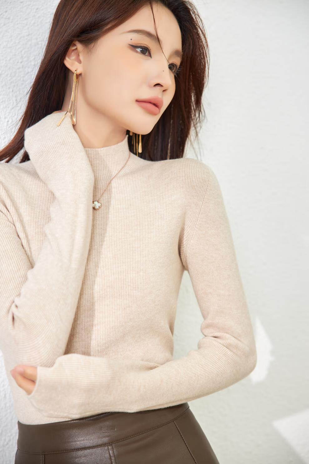 New fashionable and simple half turtleneck wool blended sweater for women, autumn and winter slim fit and versatile bottoming shirt, black M (90~110 catties)