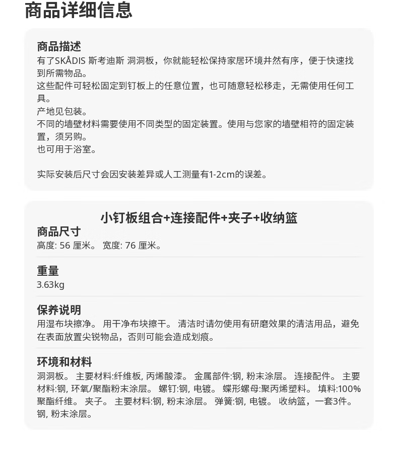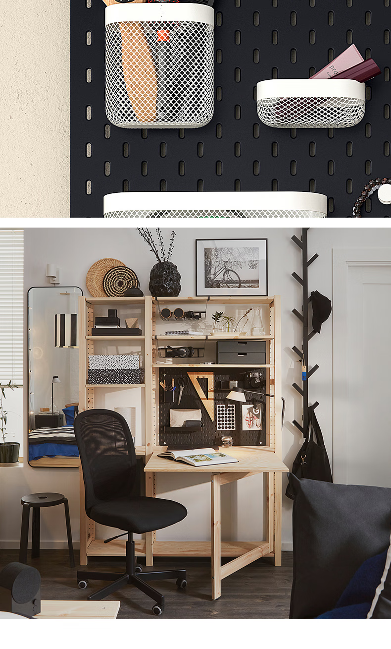 IKEA (IKEA) SKADIS gaming room hole board wall storage entry entrance storage hanging board student dormitory small peg board combination + connecting accessories + clip + storage basket hole board combination black 76x56 cm