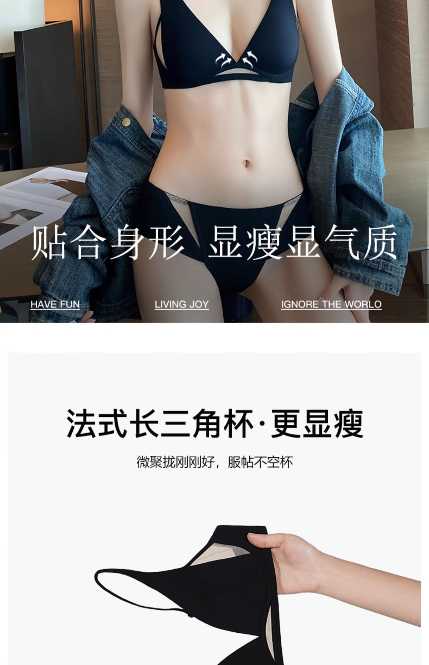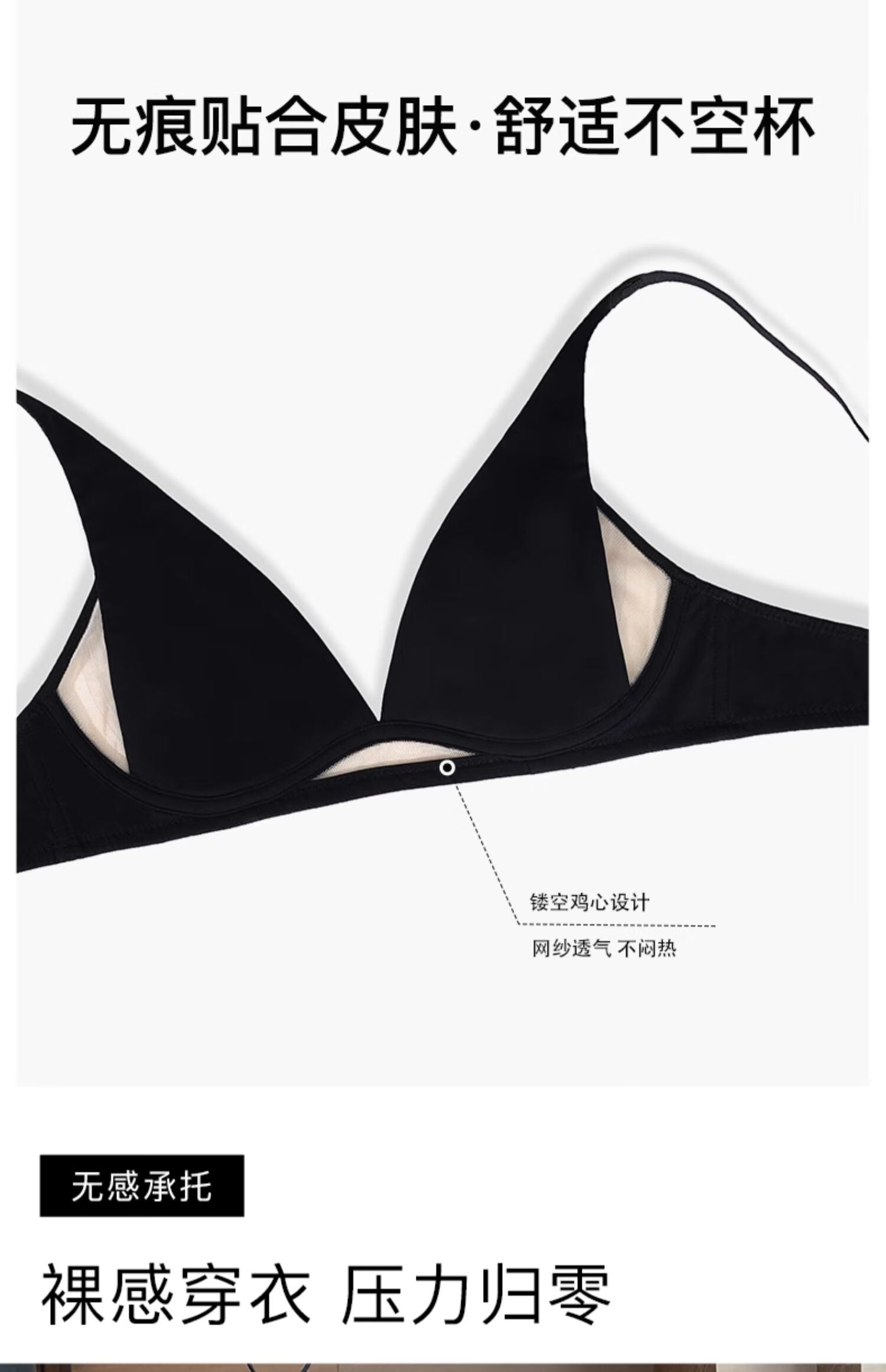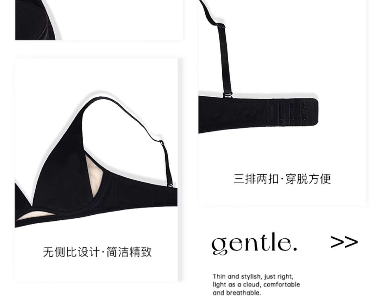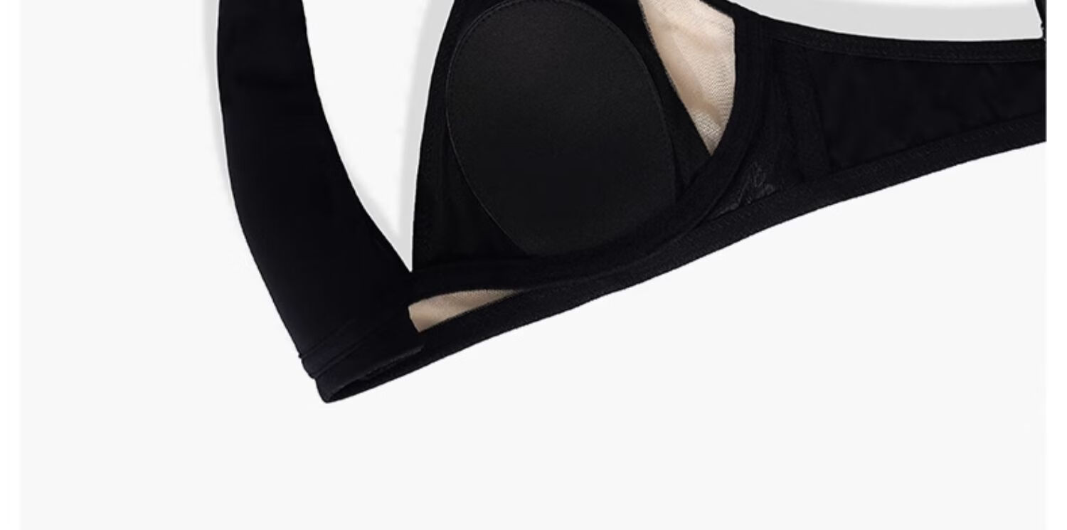 Seamless underwear for women, summer thin, small breasts, no steel rings, comfortable and sexy, deep v rabbit ears, triangle cup bra 2025 new style, black suit + champagne suit XL suitable for 85A/85B
