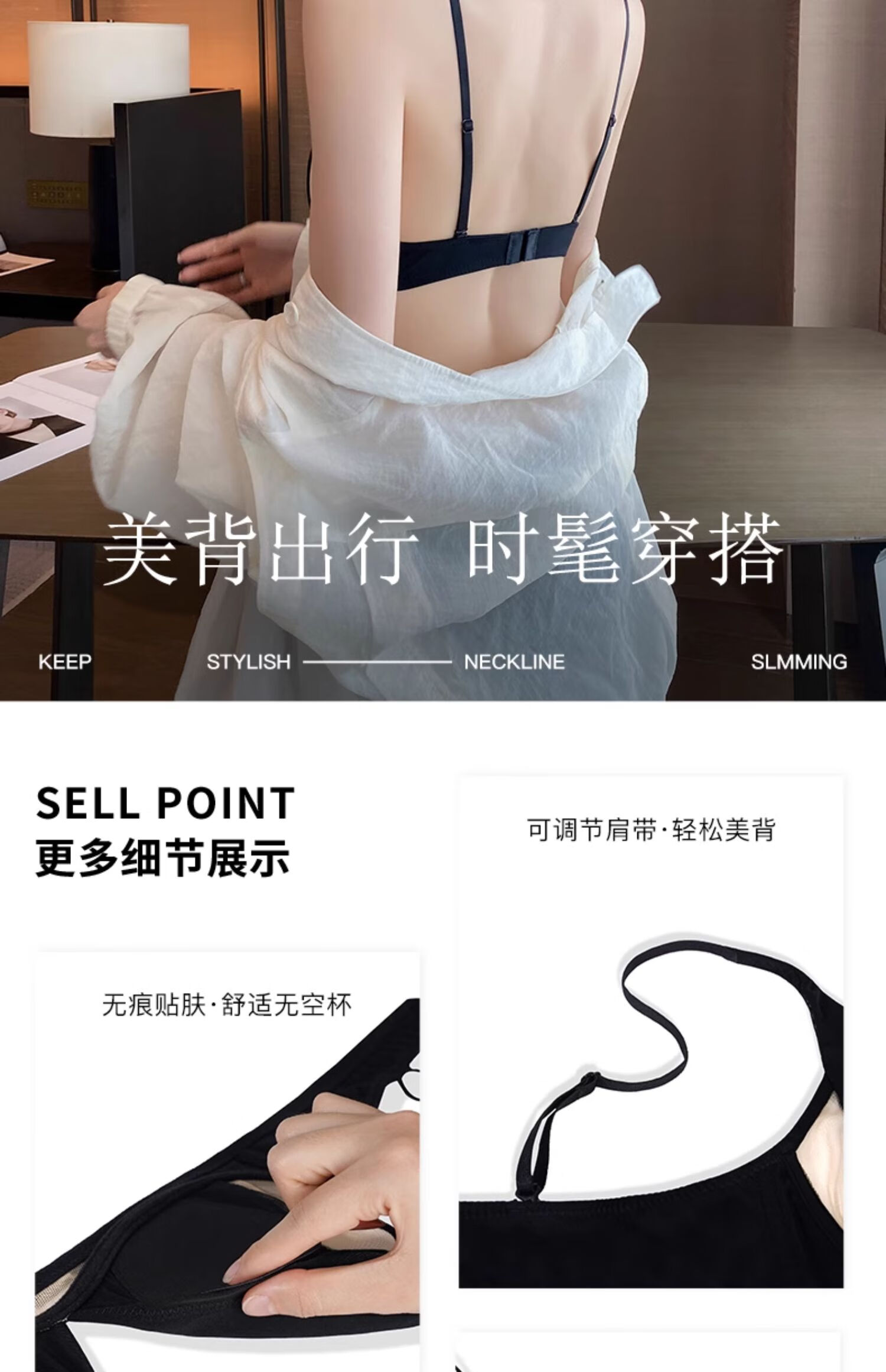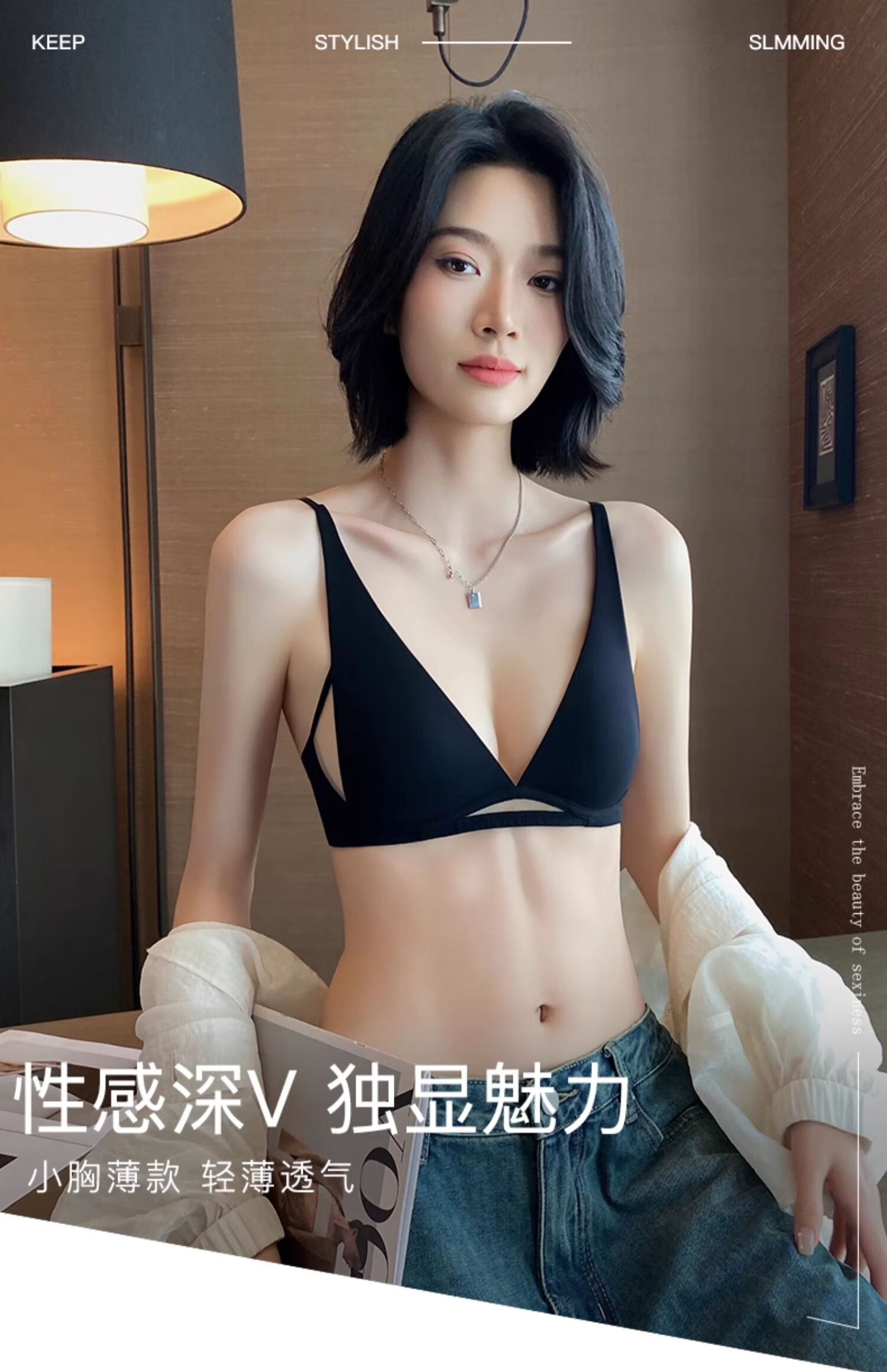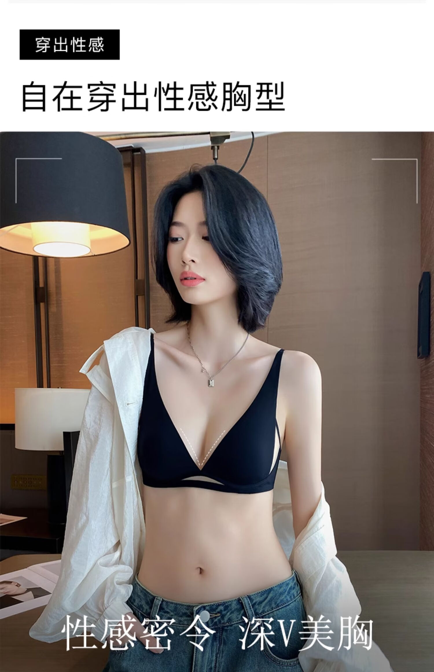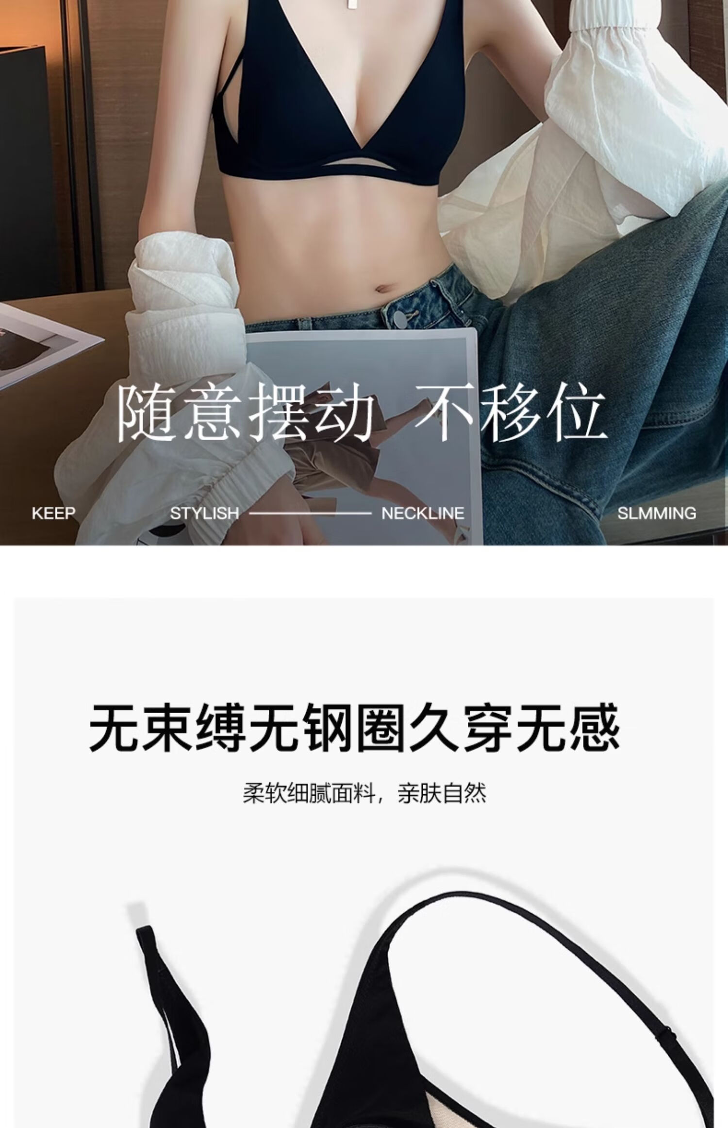 Seamless underwear for women, summer thin, small breasts, no steel rings, comfortable and sexy, deep v rabbit ears, triangle cup bra 2025 new style, black suit + champagne suit XL suitable for 85A/85B