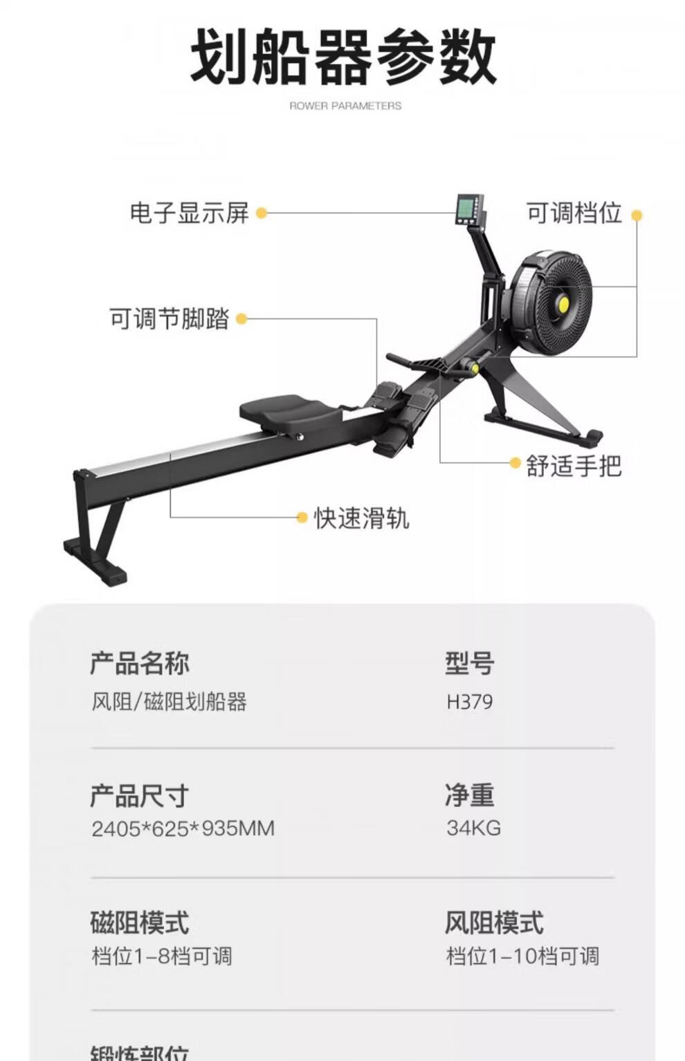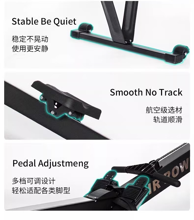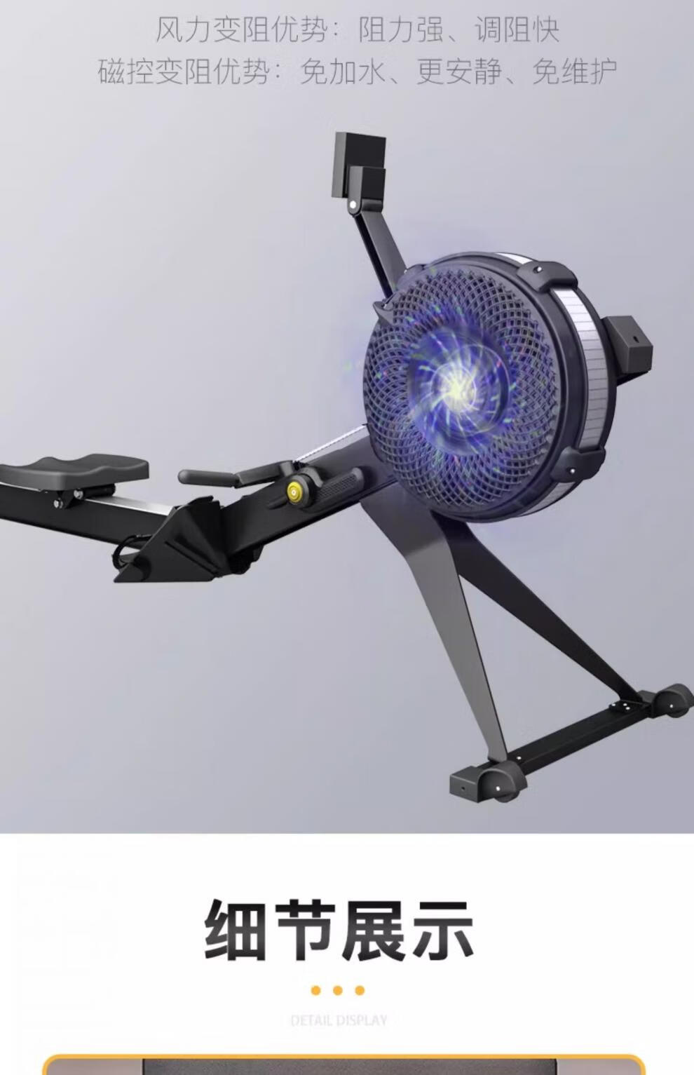 MI Xiaomi Jiao Magnetic Resistance Wind Resistance Rowing Machine Home Fitness Aerobic Rowing Sports Equipment Folding Rowing Ergometer H369 Flagship Model - Black - Aluminum Alloy Guide Rail