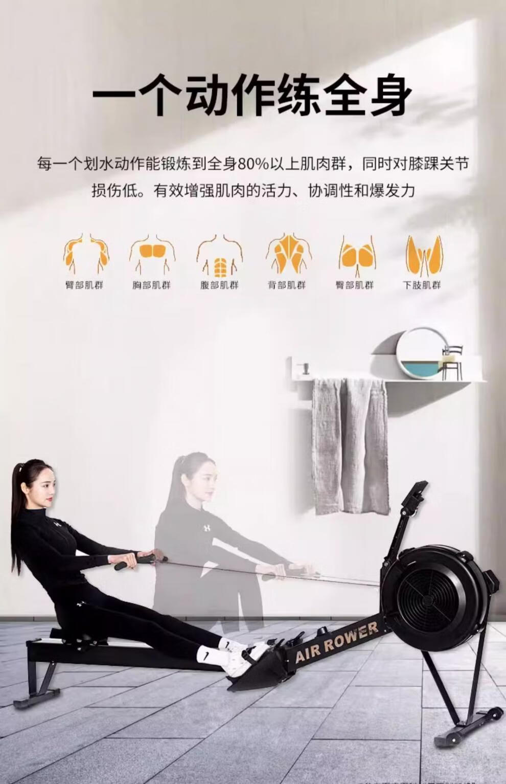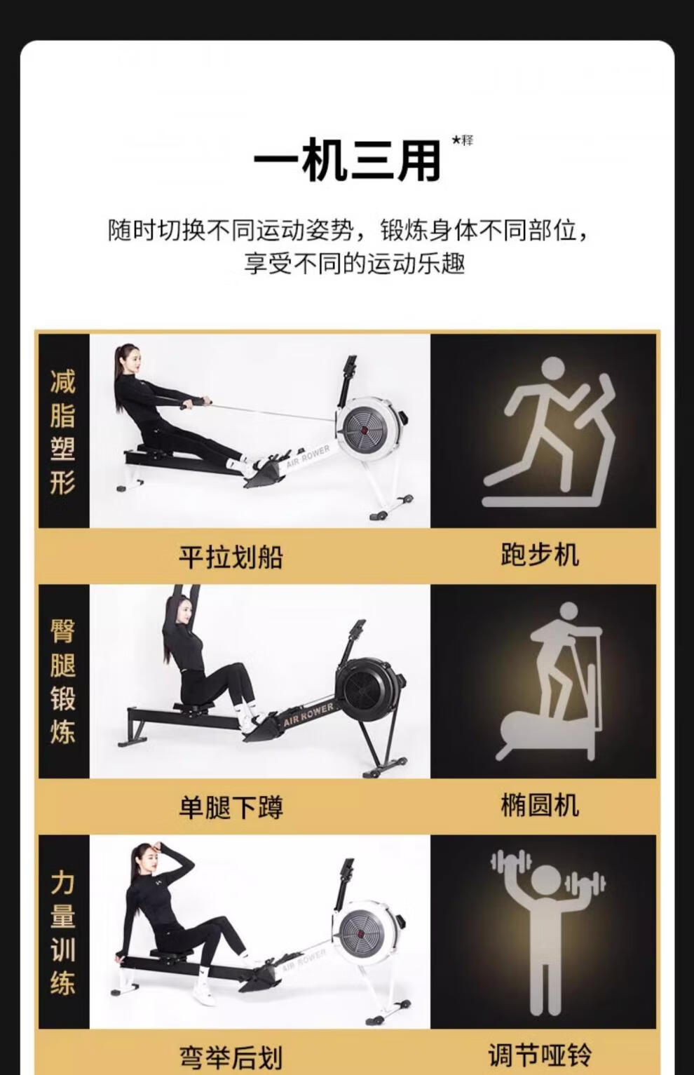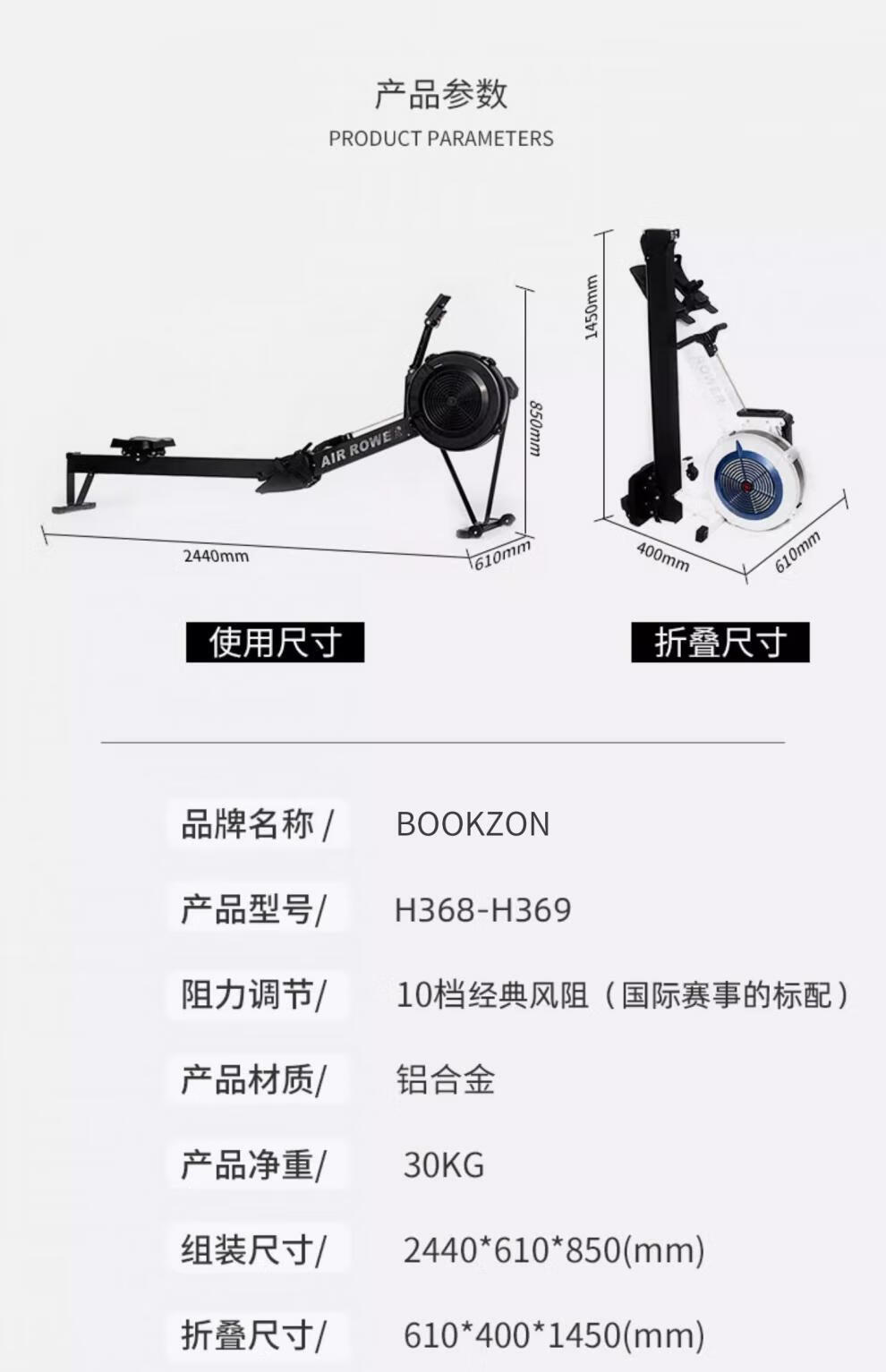 MI Xiaomi Jiao Magnetic Resistance Wind Resistance Rowing Machine Home Fitness Aerobic Rowing Sports Equipment Folding Rowing Ergometer H369 Flagship Model - Black - Aluminum Alloy Guide Rail