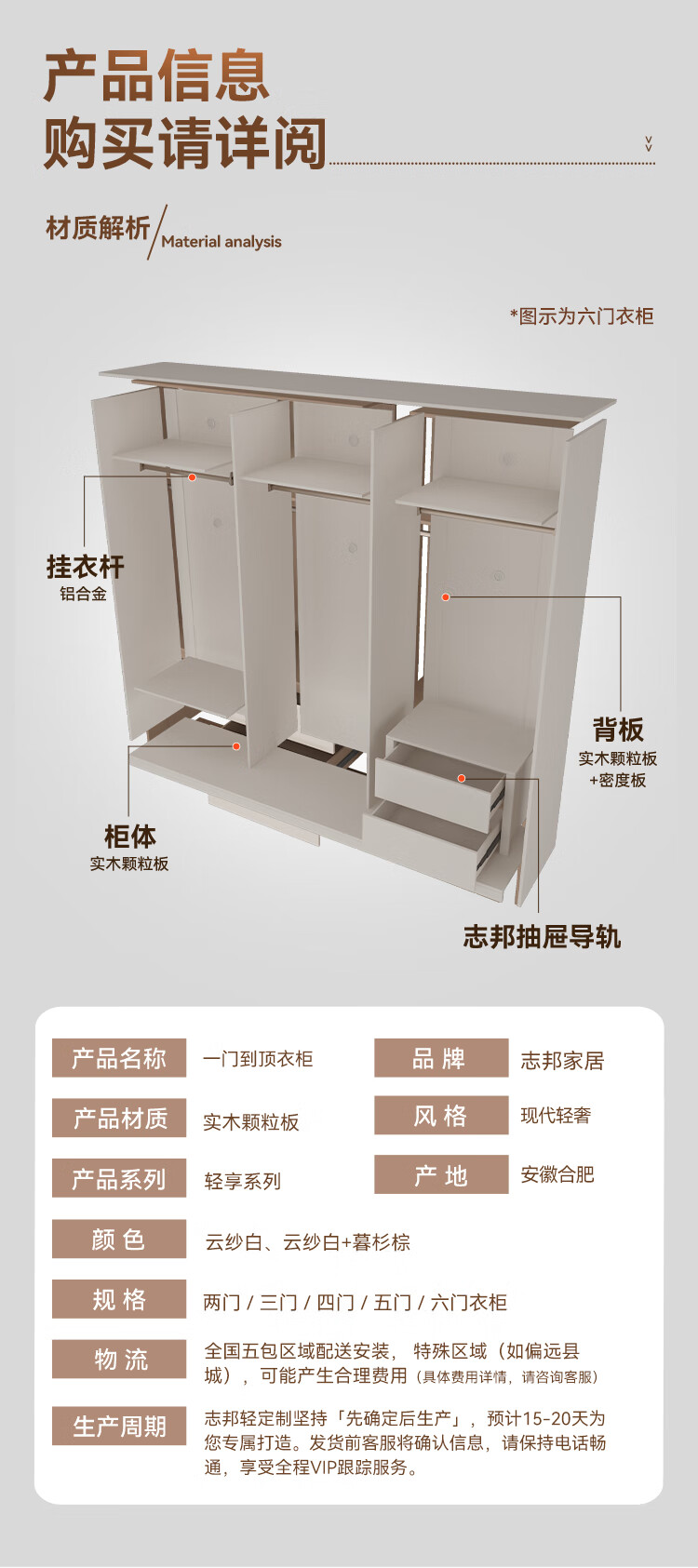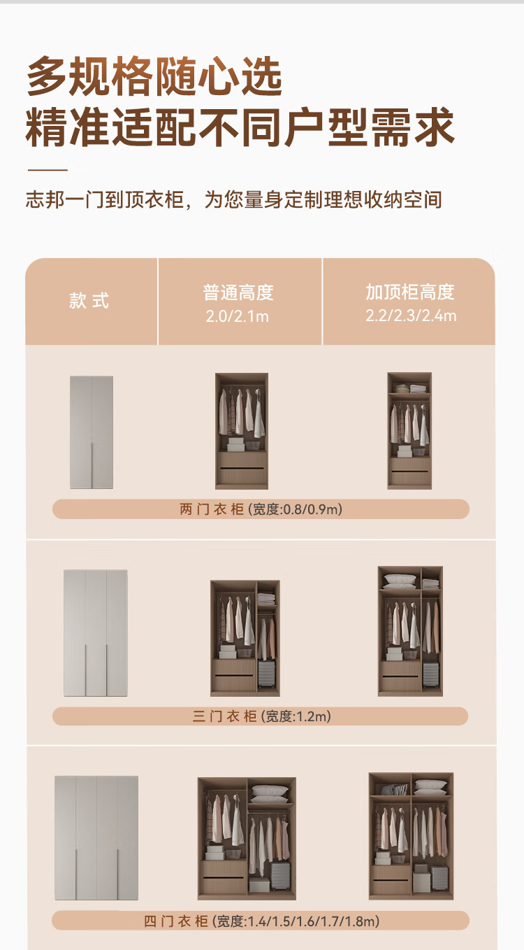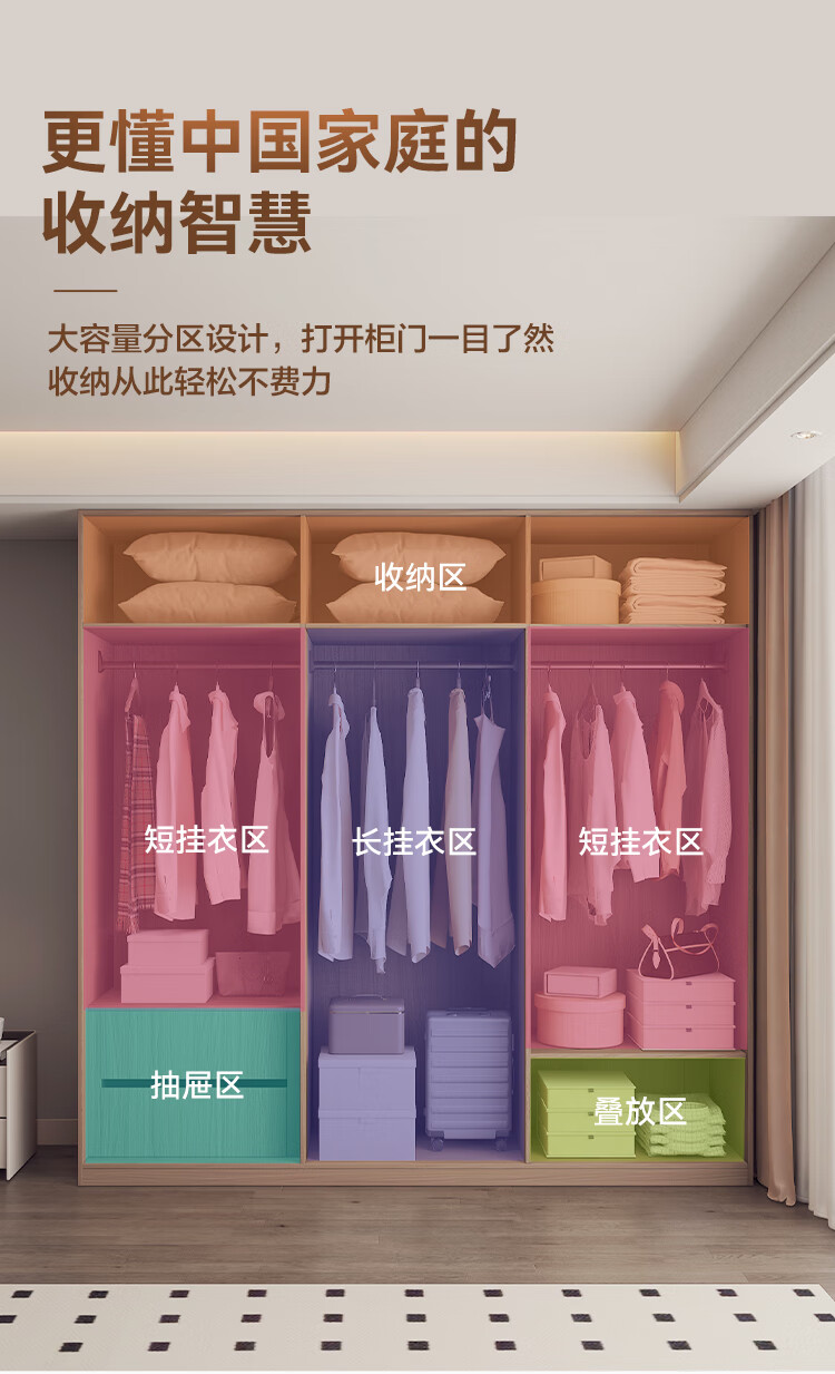 Zbom wardrobe enjoys minimalist combination ENF grade environmental protection popular home bedroom finished one door to top storage wardrobe 2.4m wide * 2.4m high | six door wardrobe