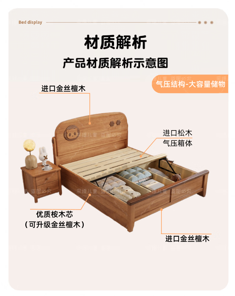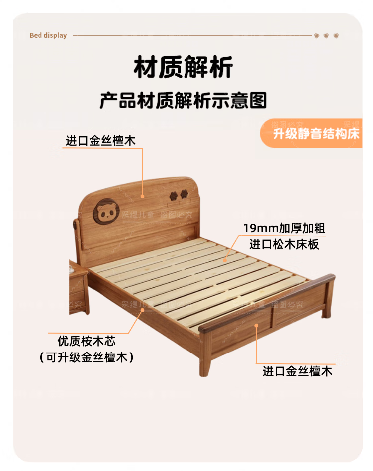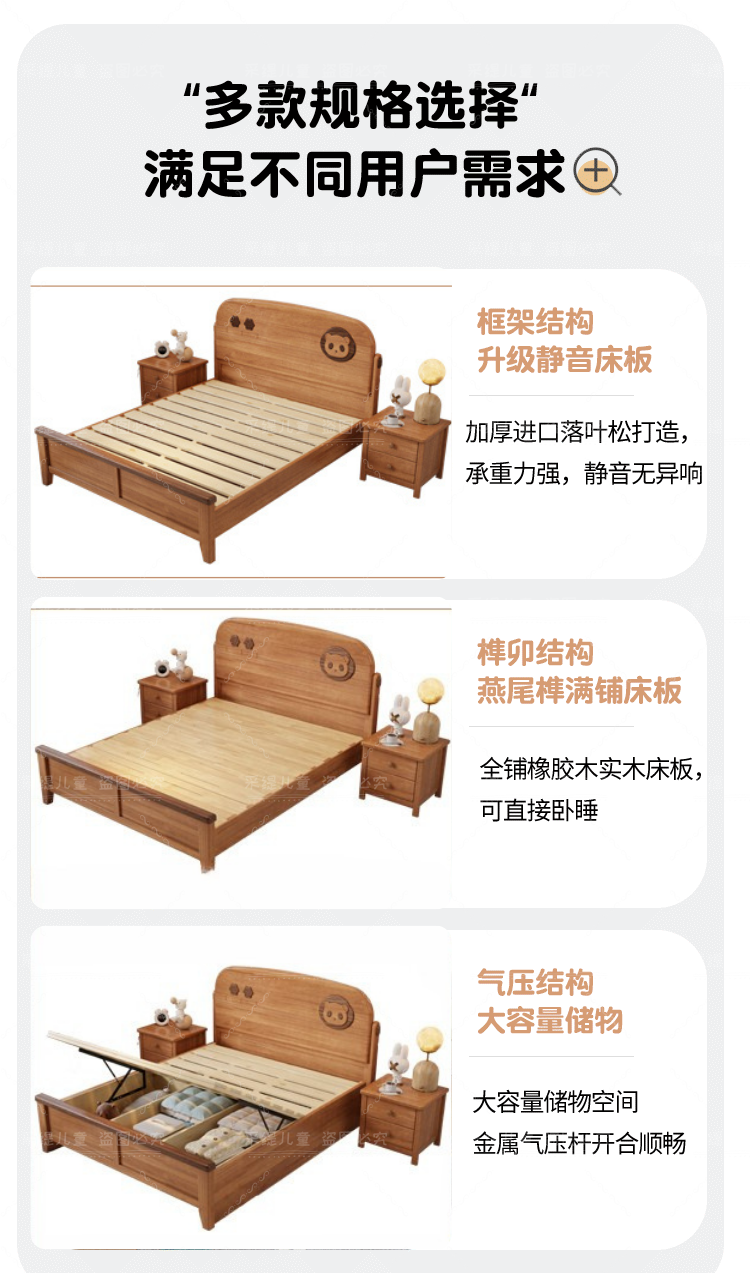 Caiti solid wood children's bed for boys and girls 1.2m single bed 1.5m teen bedroom bed storage bed home bed single bed standard pine silent bed board 150*190cm standard pine silent bed board
