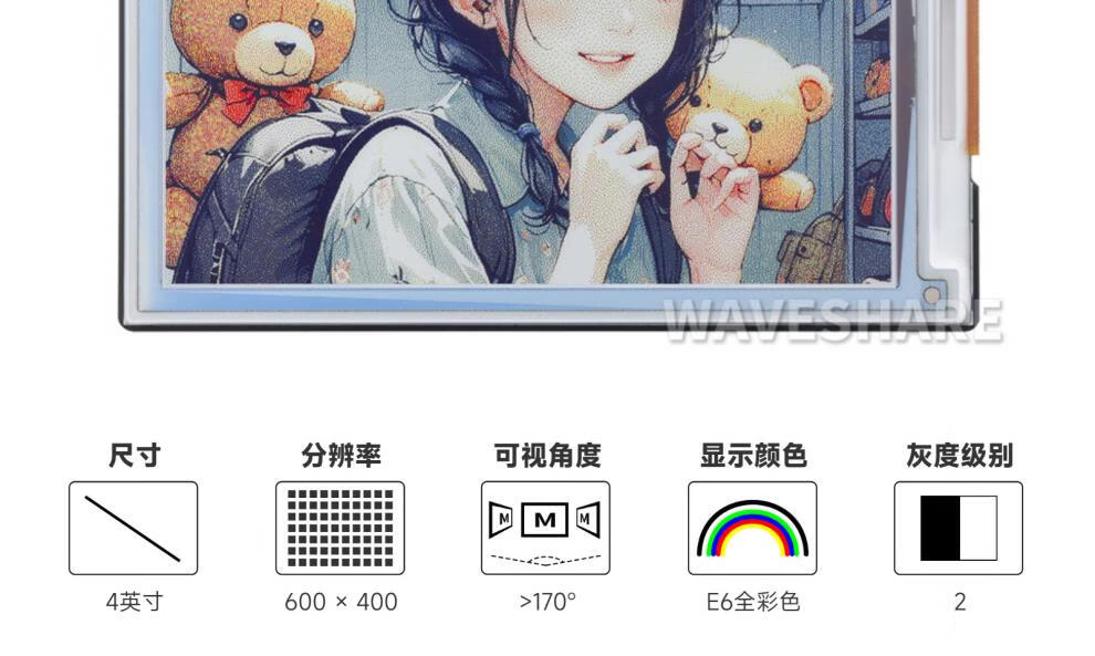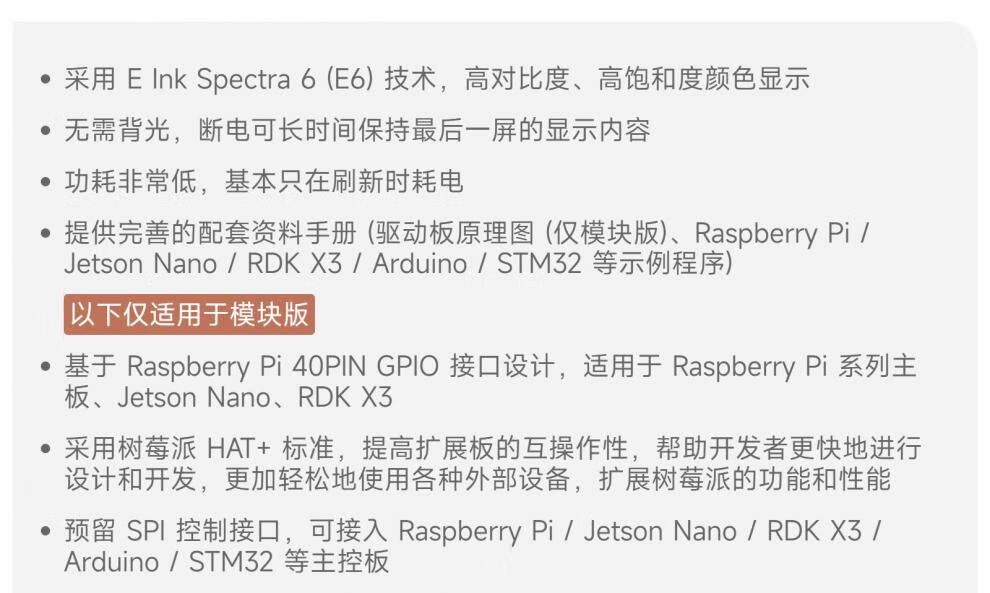 Raspberry Pi 4-inch color electronic paper screen module E6 ink screen label digital display 4inch e-Paper (E) (bare screen)