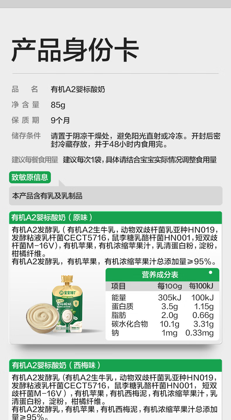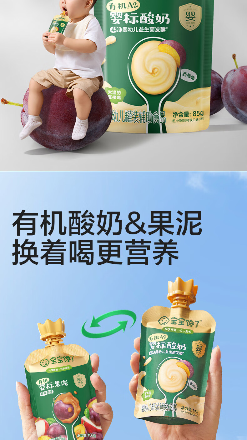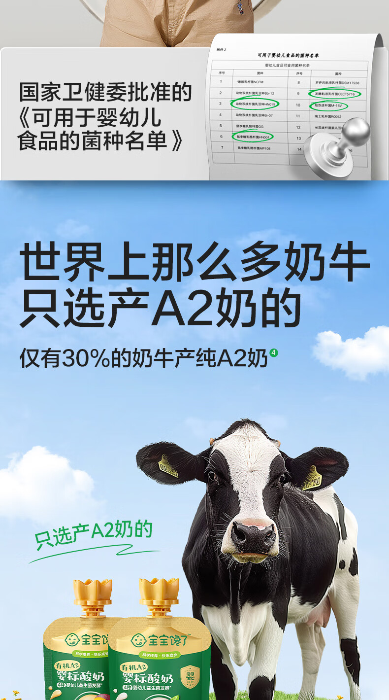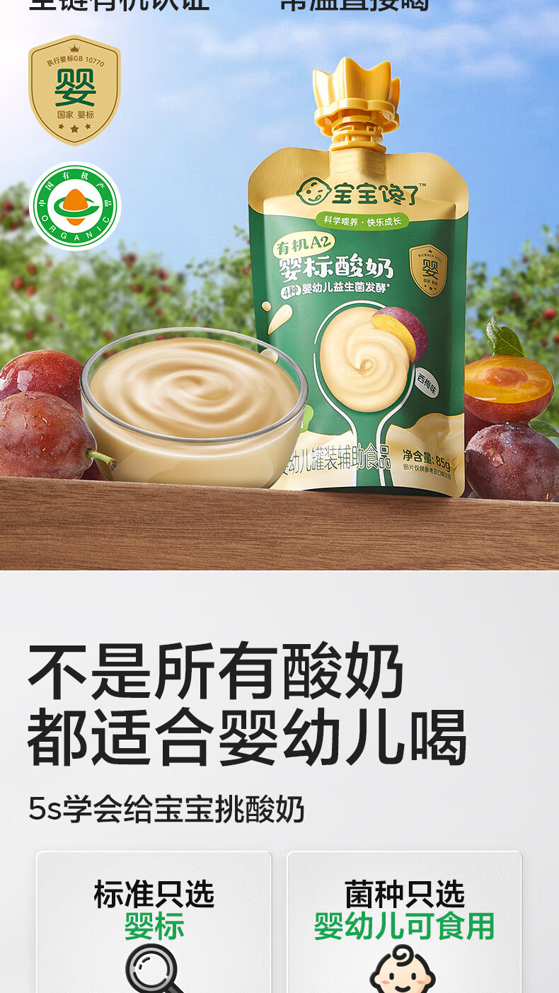 Baby is craving for organic A2 baby-labeled yogurt. Yogurt food snacks for infants and young children over 6 months old. Portable independent packaging. Organic A2 baby-labeled yogurt 85g*10 bags (original flavor).