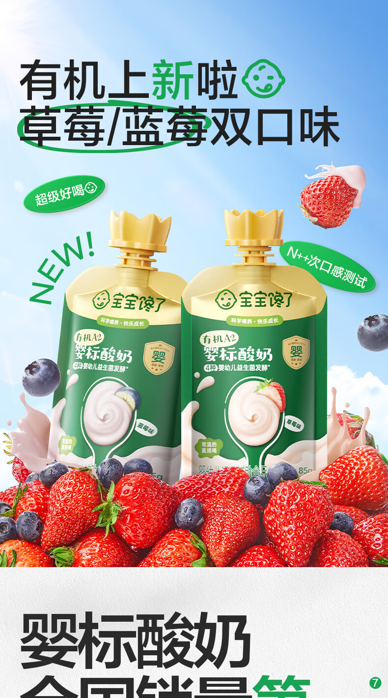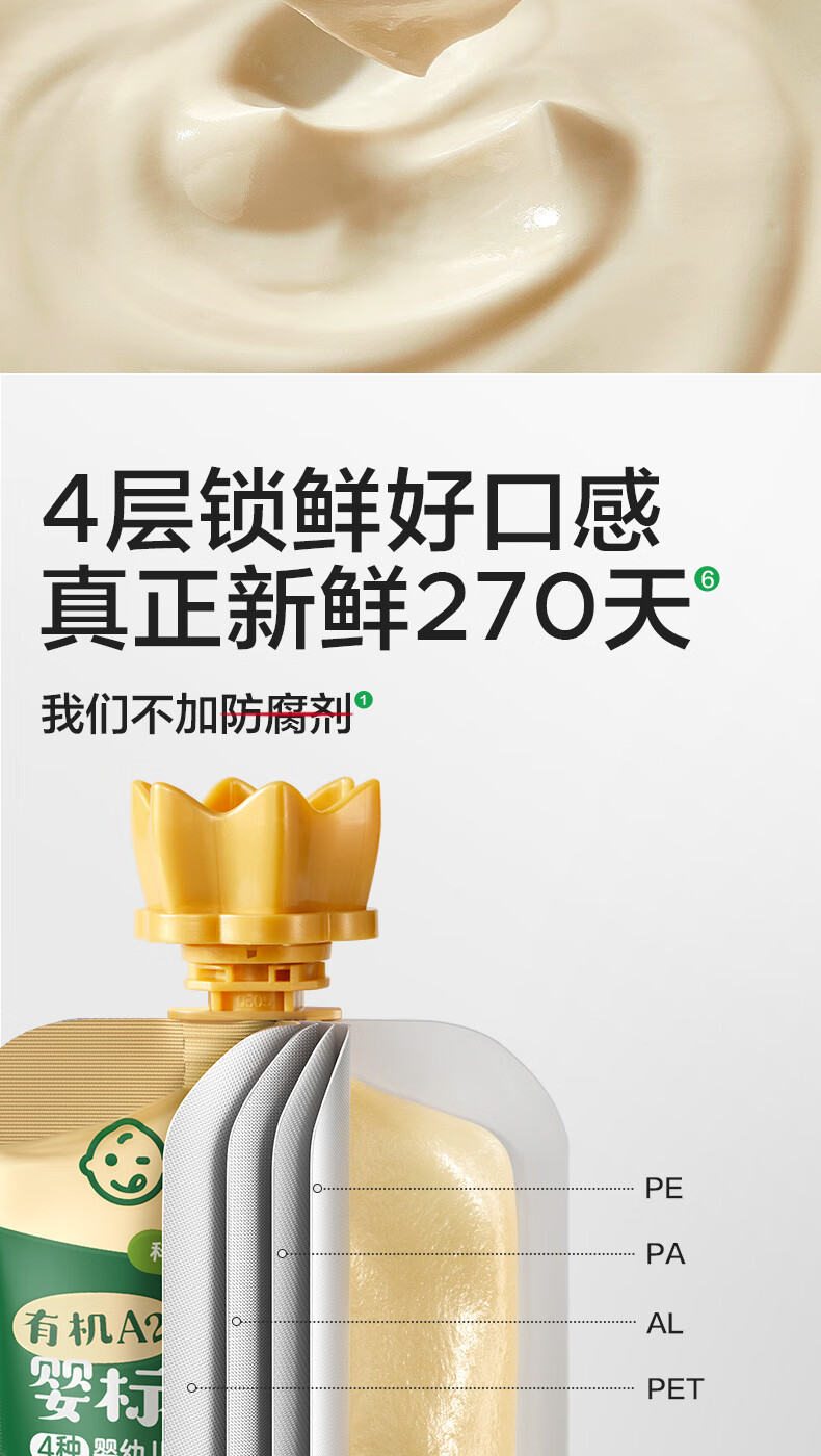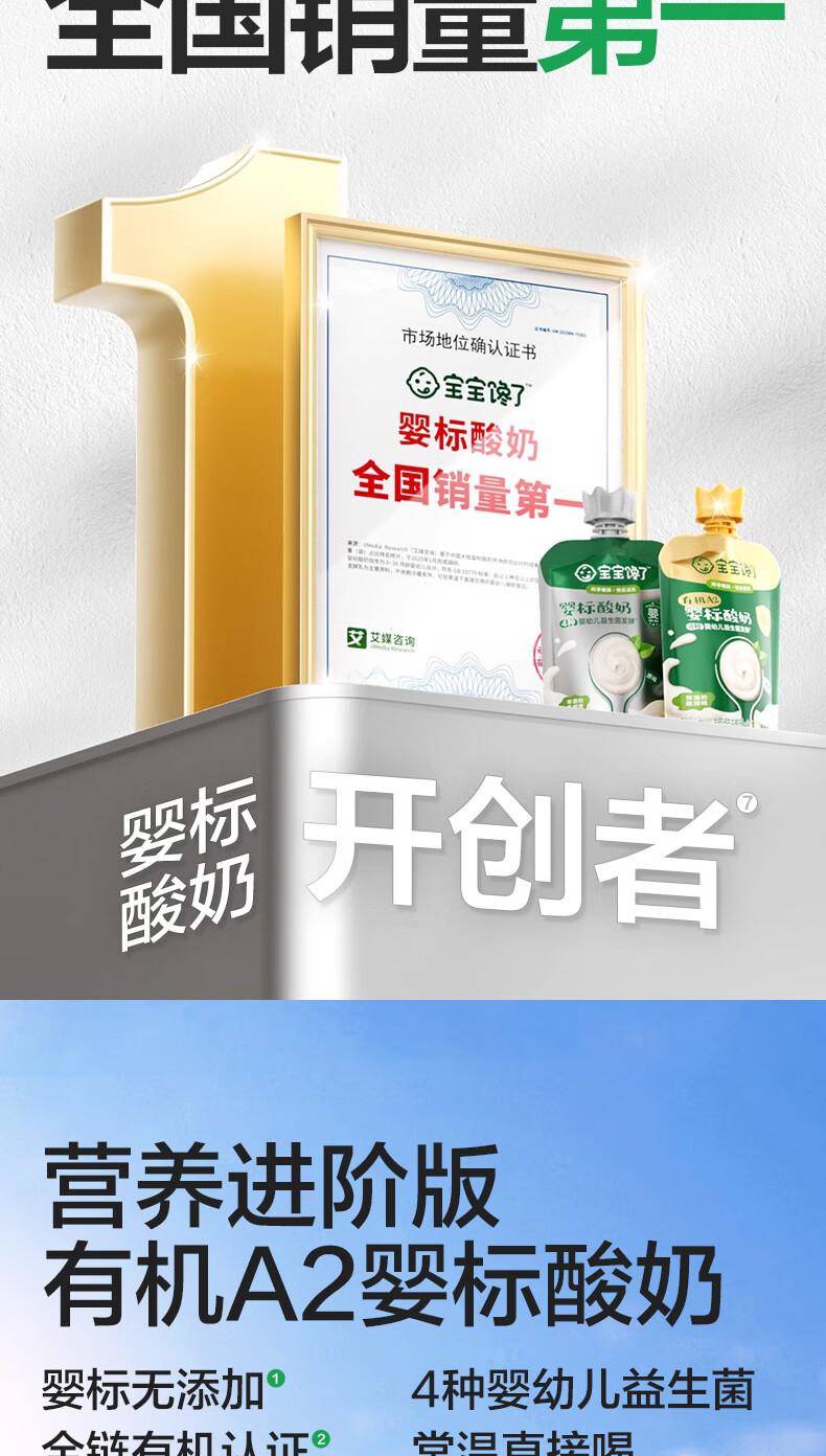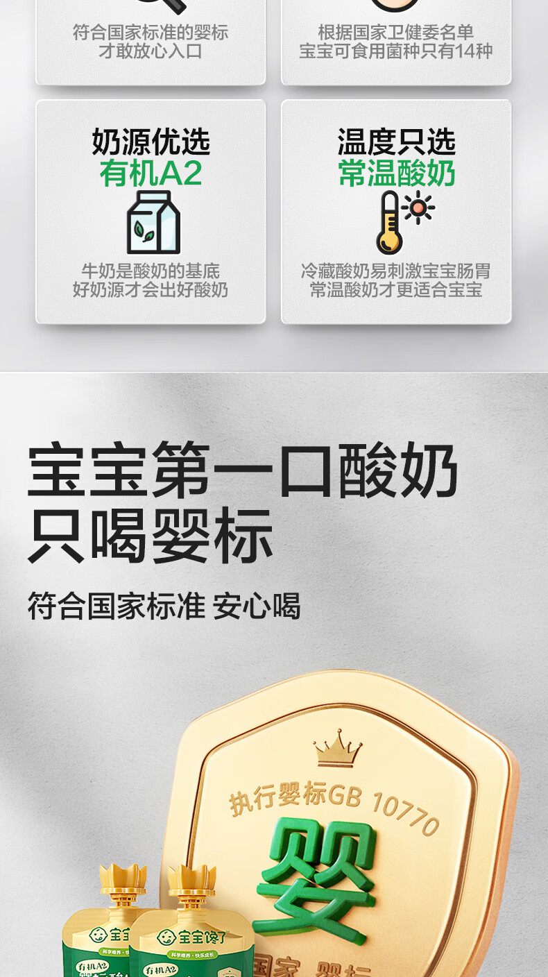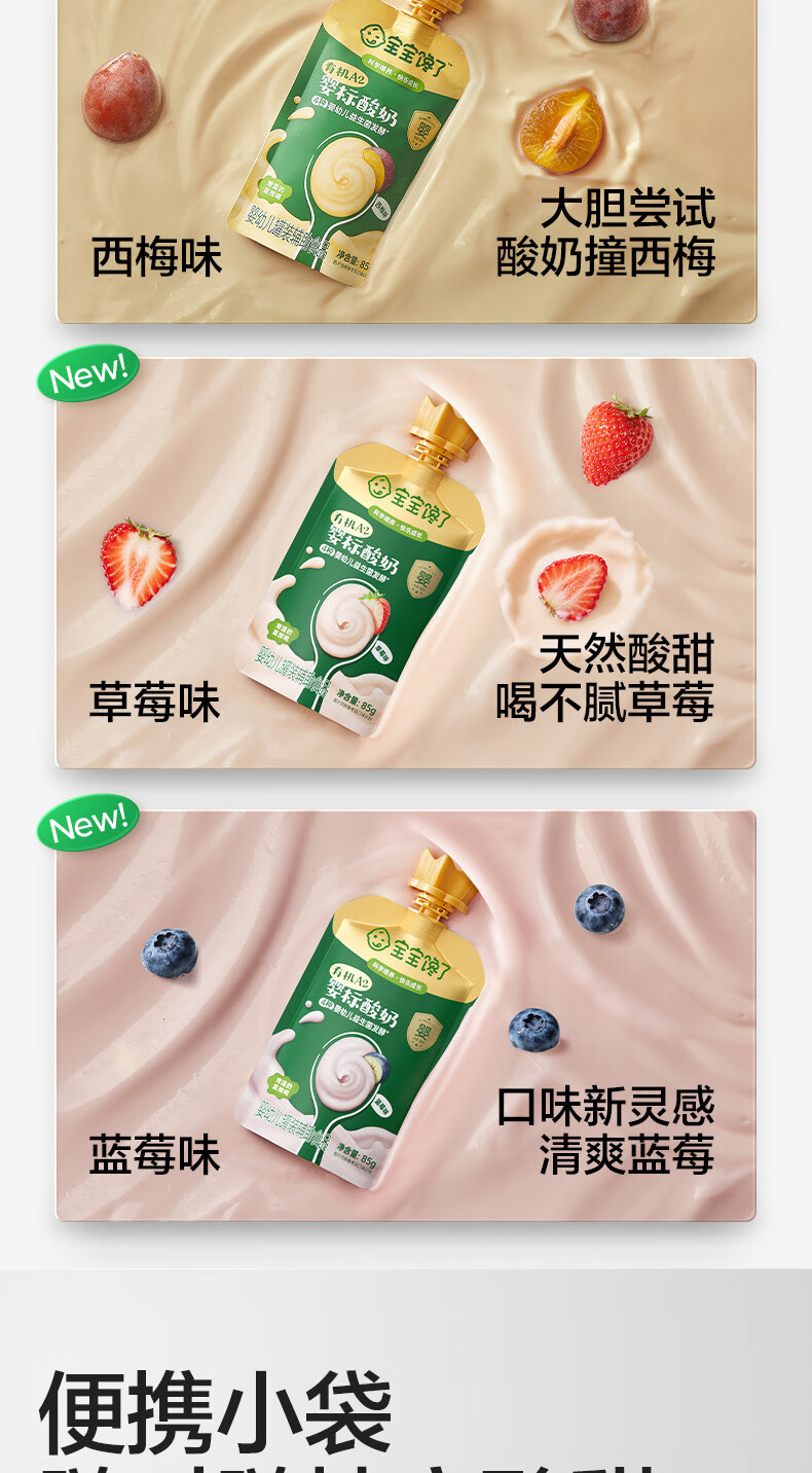 Baby is craving for organic A2 baby-labeled yogurt. Yogurt food snacks for infants and young children over 6 months old. Portable independent packaging. Organic A2 baby-labeled yogurt 85g*10 bags (original flavor).