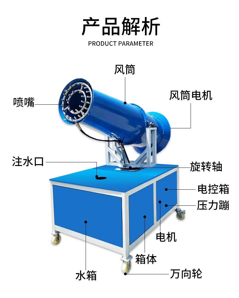 Huling dust collector fog cannon machine construction site automatic sprayer vehicle mobile industrial environmental protection construction dust collector fog cannon machine 15 type three-phase electric (380v) fog cannon machine manual model