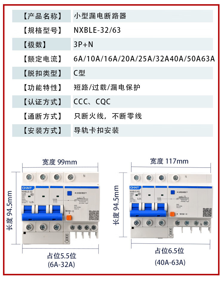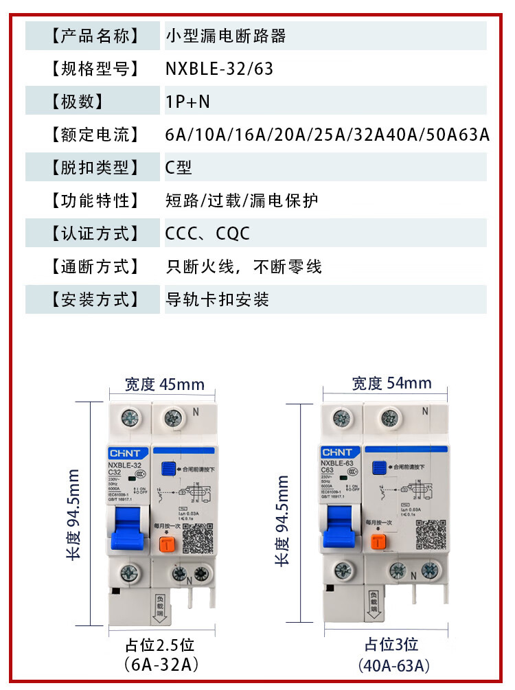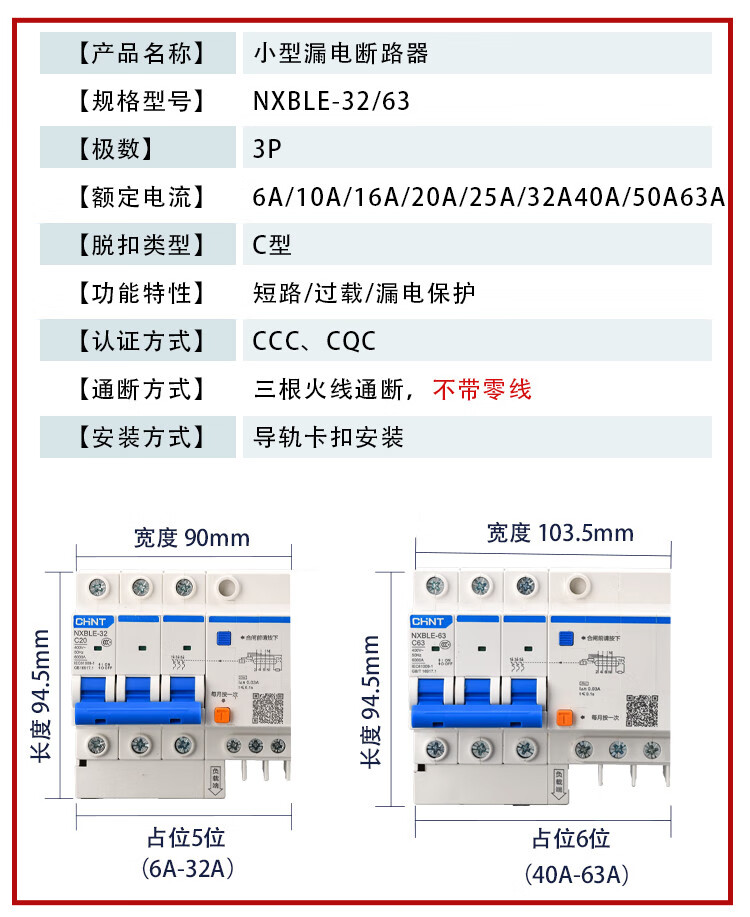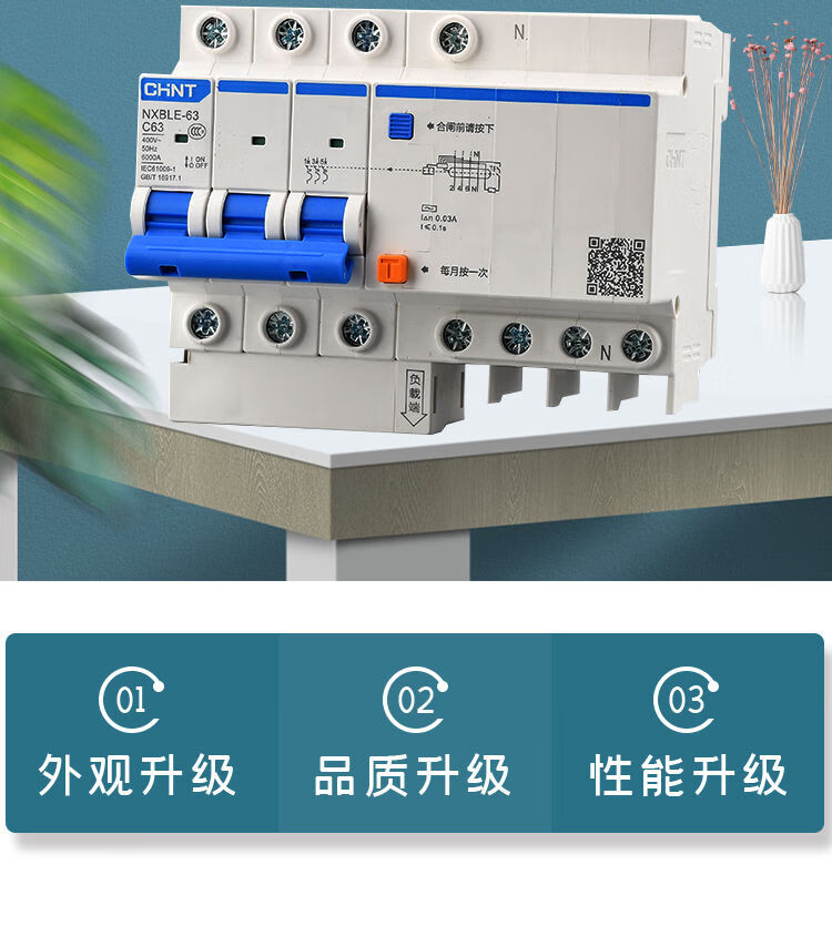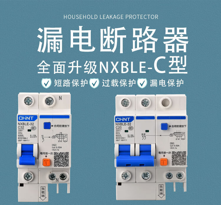 Chint NXBLE-32/63 household air conditioner leakage protection circuit breaker air switch 32a60a protector 2p3 16A 3P
