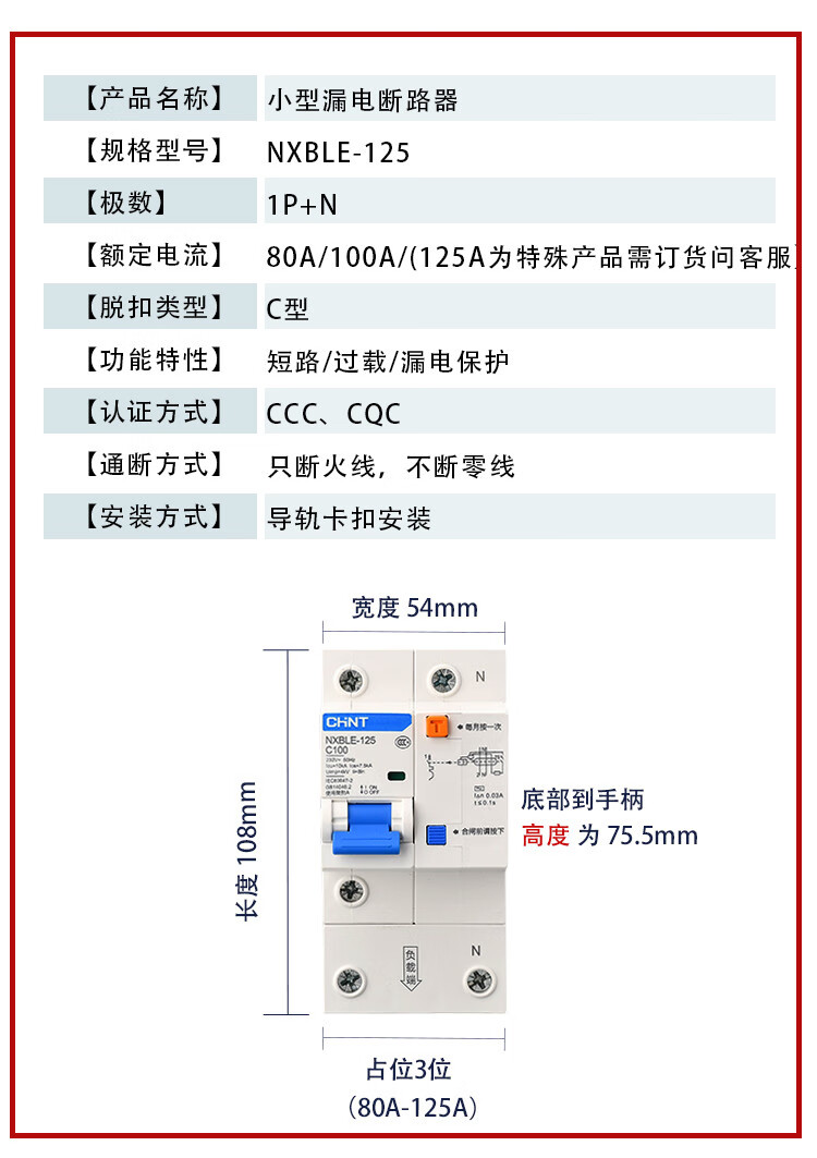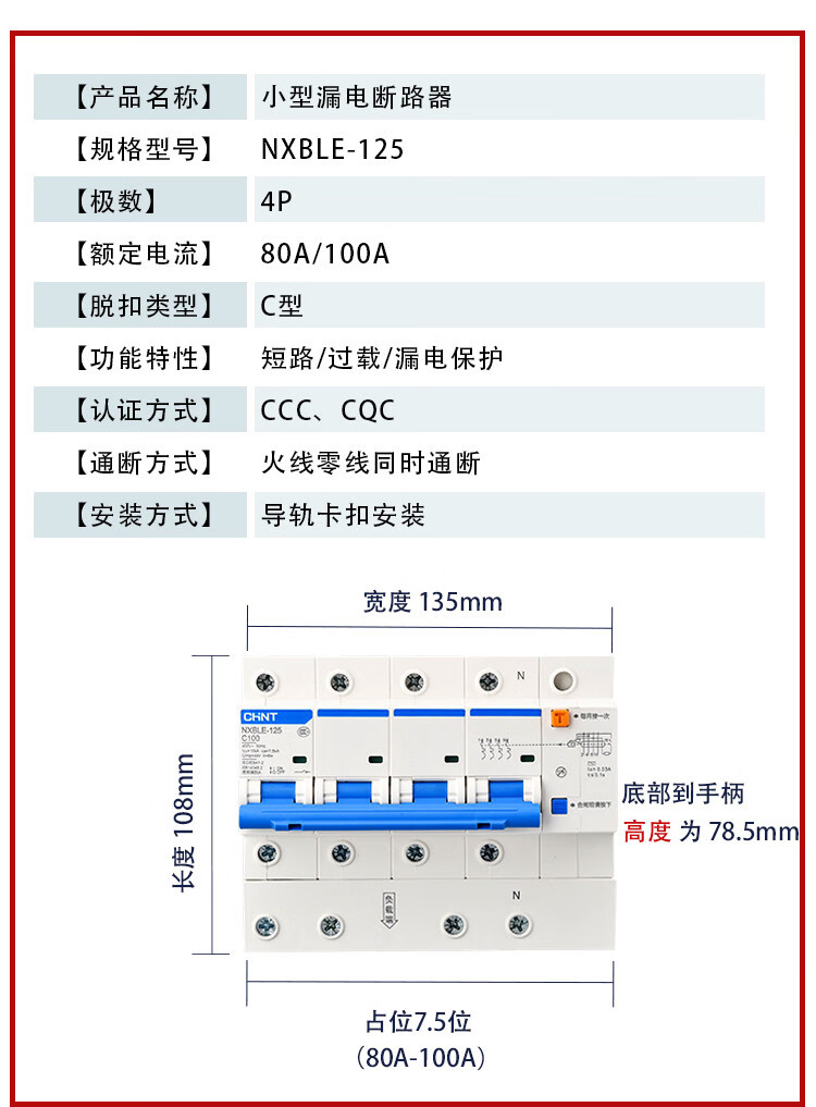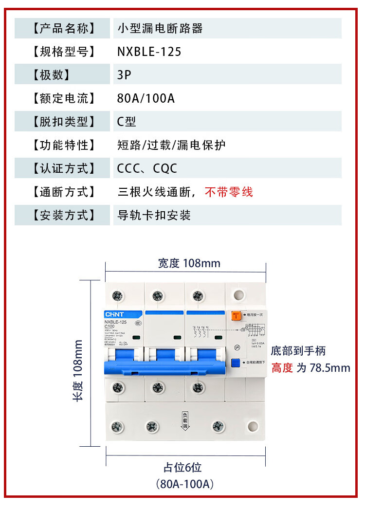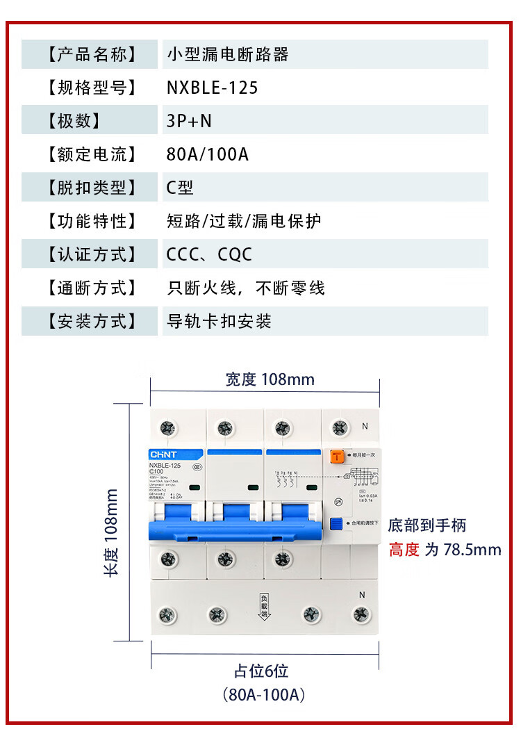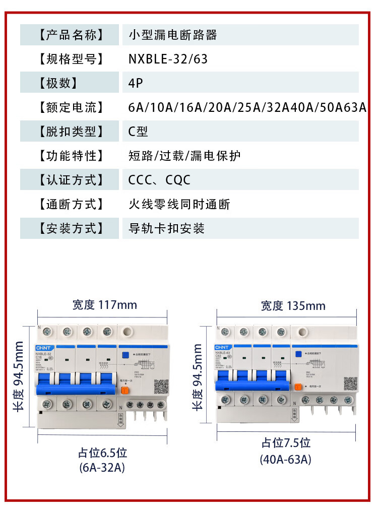 Chint NXBLE-32/63 household air conditioner leakage protection circuit breaker air switch 32a60a protector 2p3 16A 3P