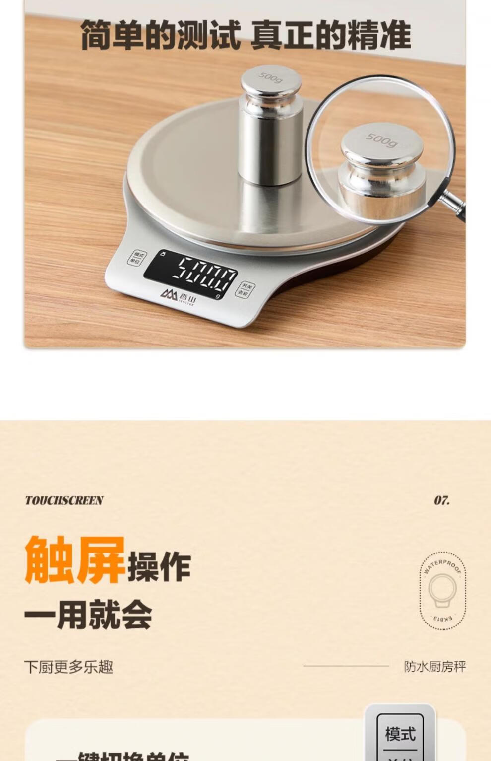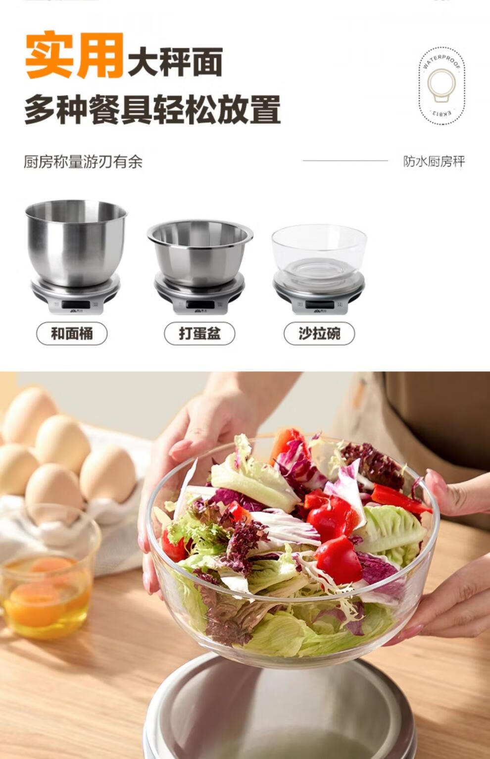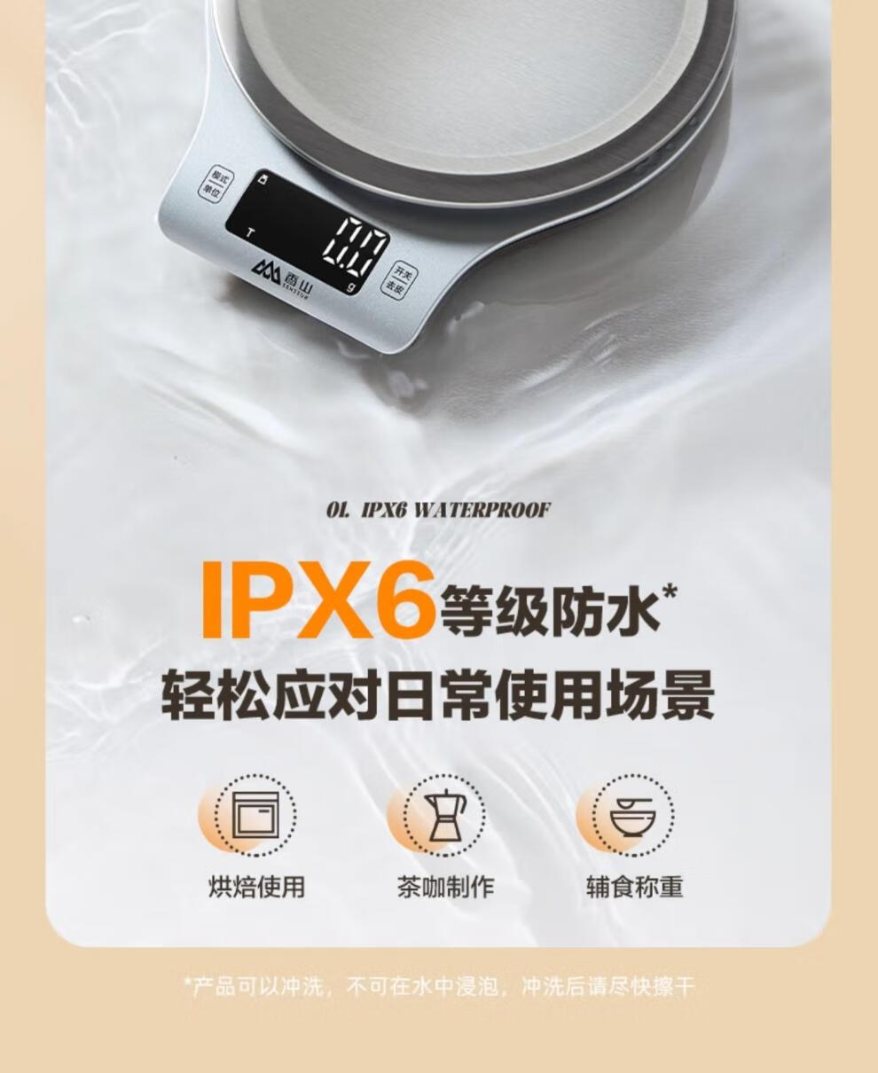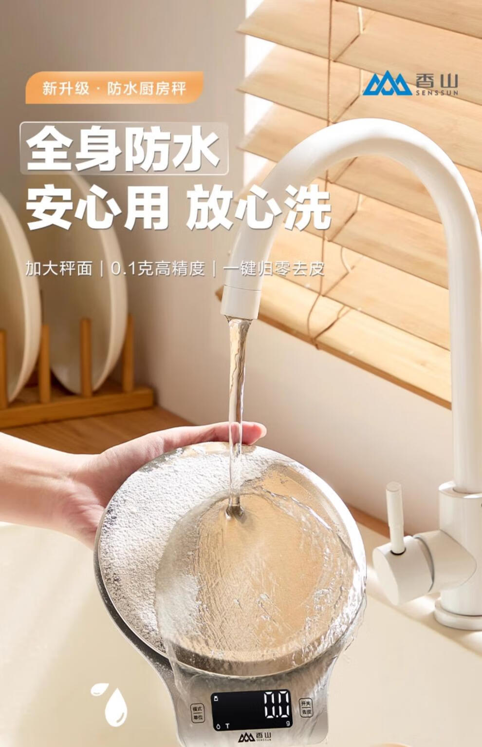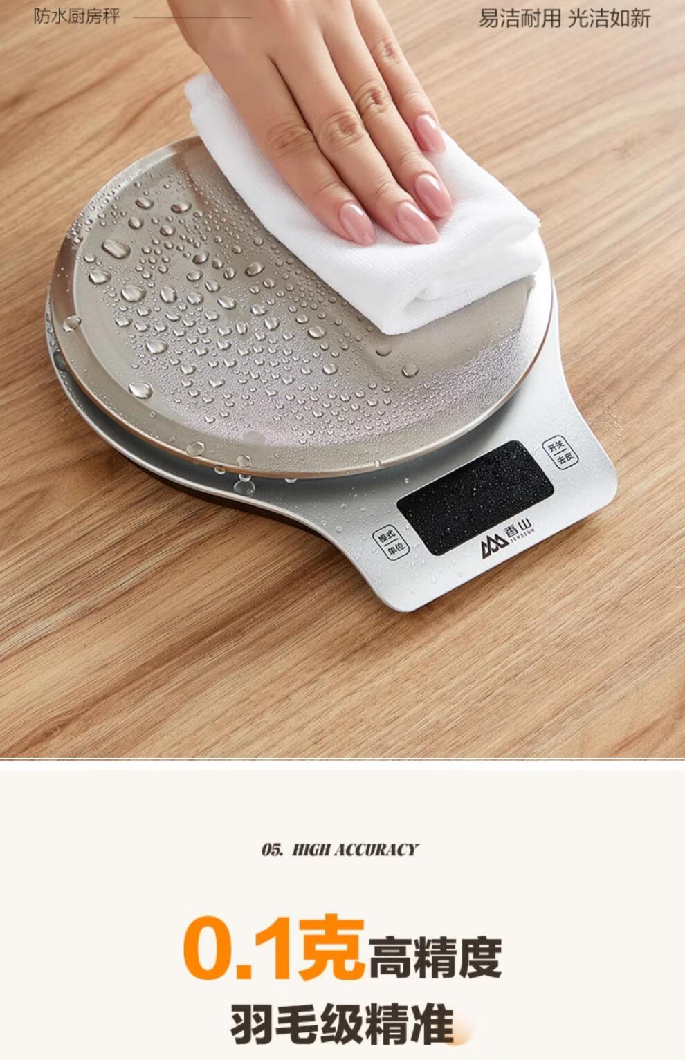 Xiangshan waterproof kitchen scale baking electronic scale gram weighing household food scale high precision large scale commercial bench scale silver battery high precision IPX6 waterproof 0.1g accuracy_5kg