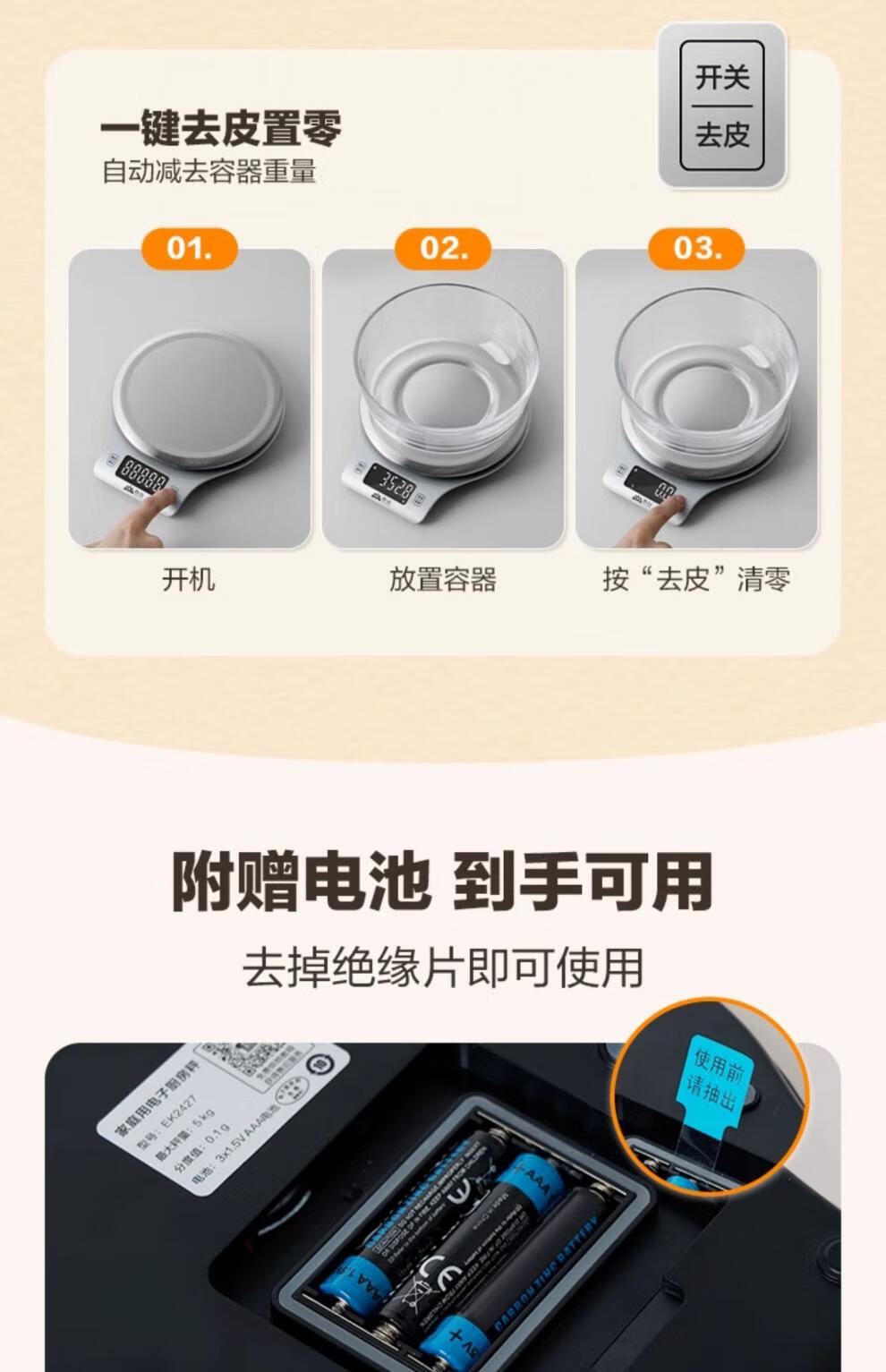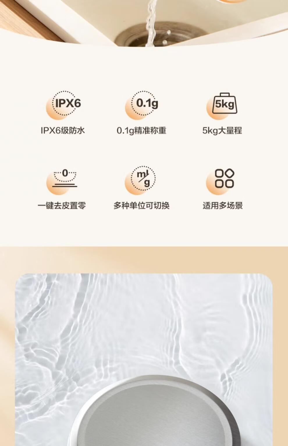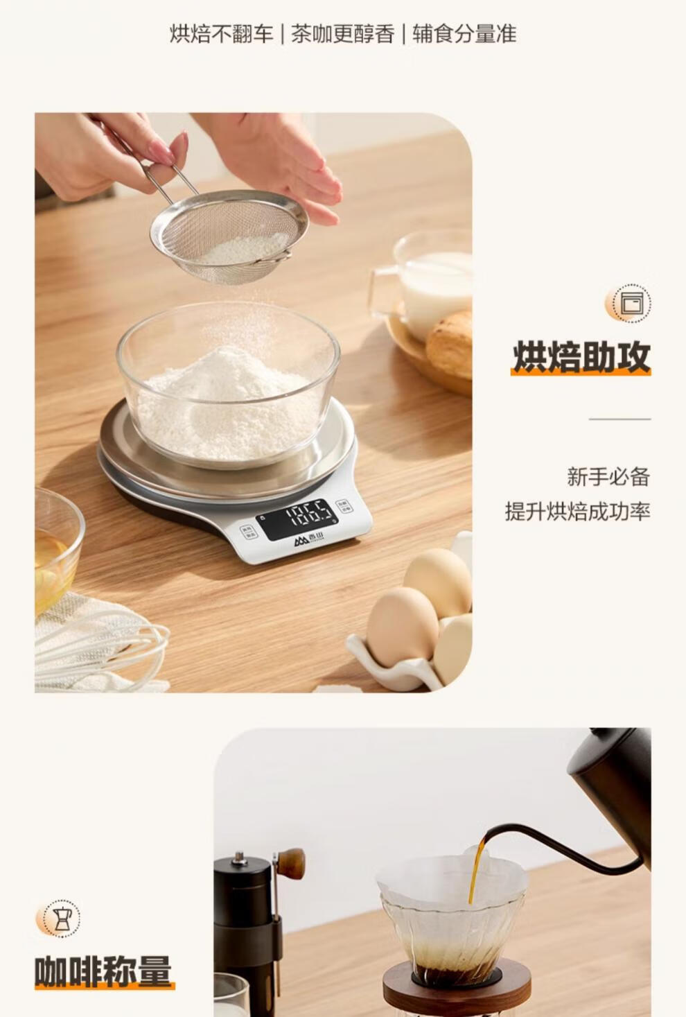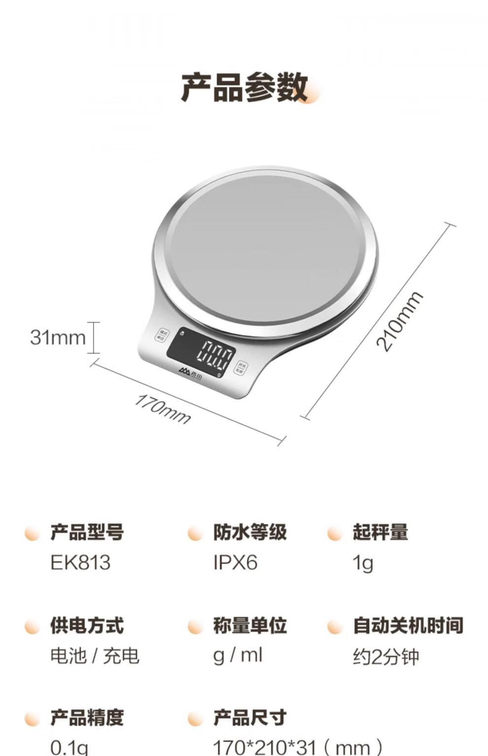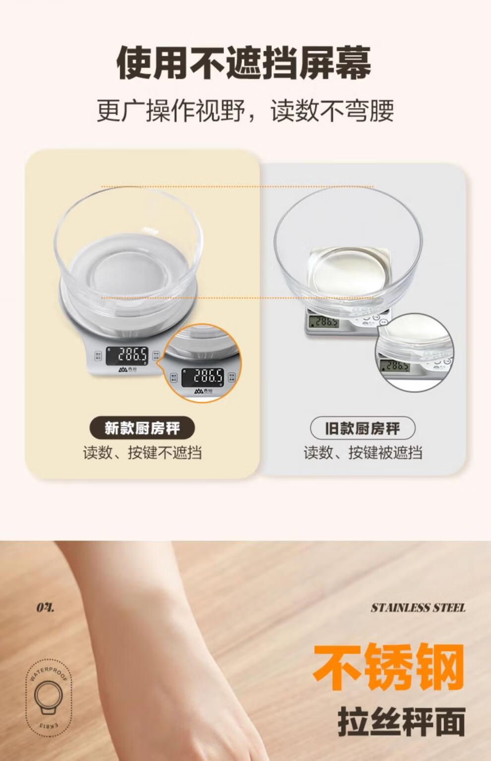 Xiangshan waterproof kitchen scale baking electronic scale gram weighing household food scale high precision large scale commercial bench scale silver battery high precision IPX6 waterproof 0.1g accuracy_5kg
