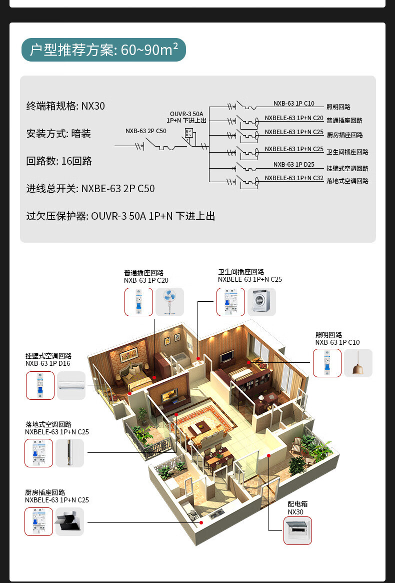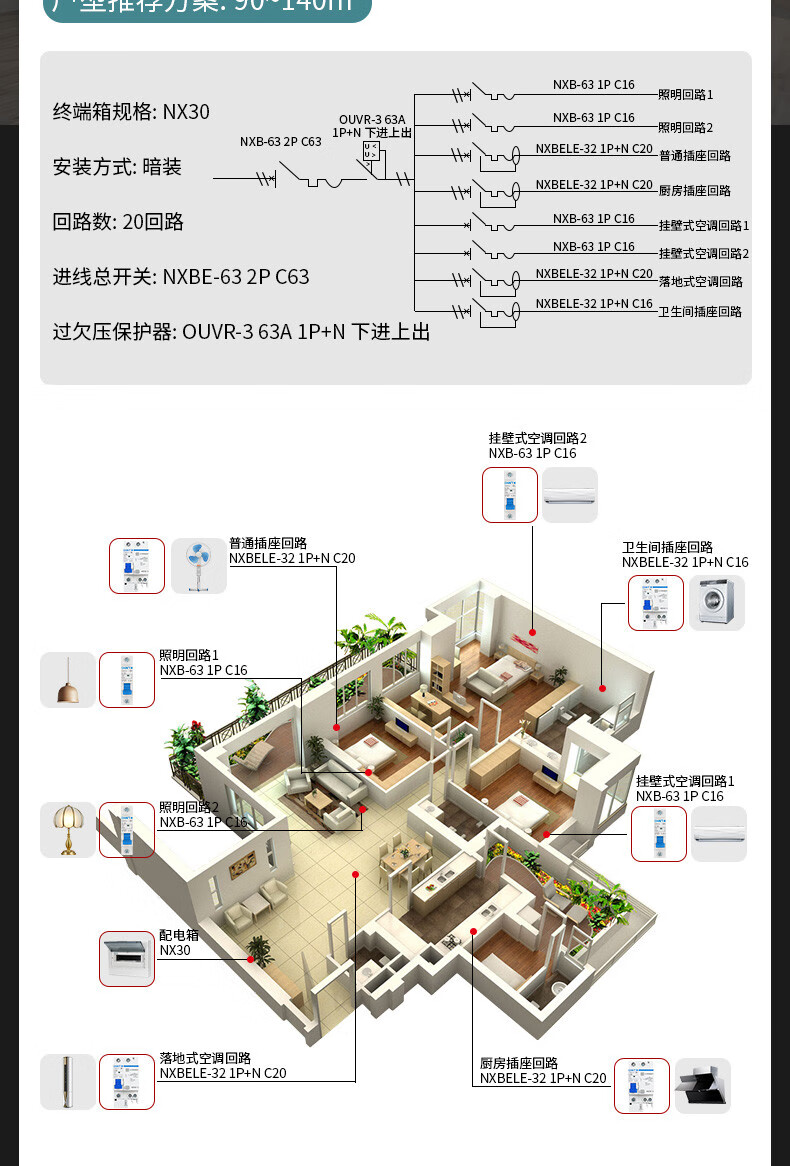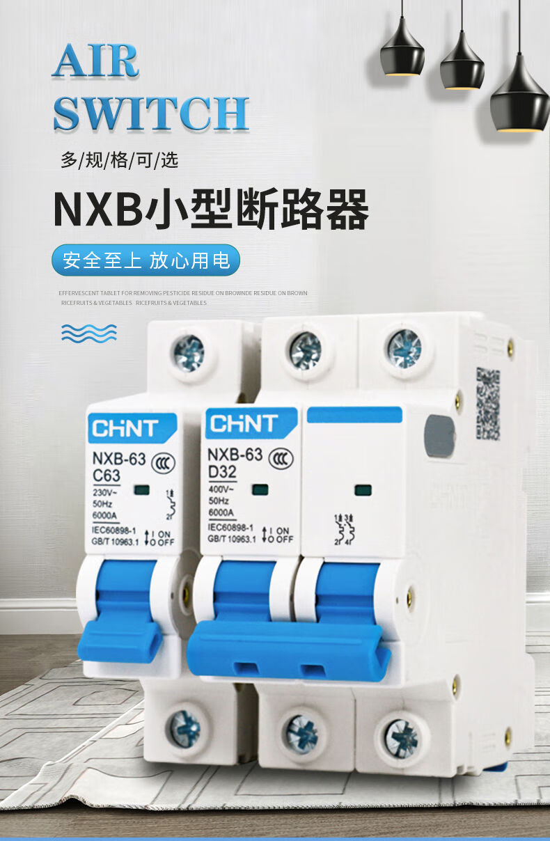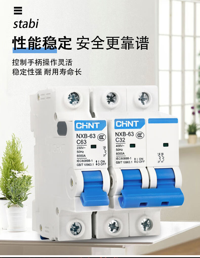 Chint air switch NXB-63A household air switch 1P small circuit breaker 2P air conditioning main switch DZ47 upgrade 63A 1P