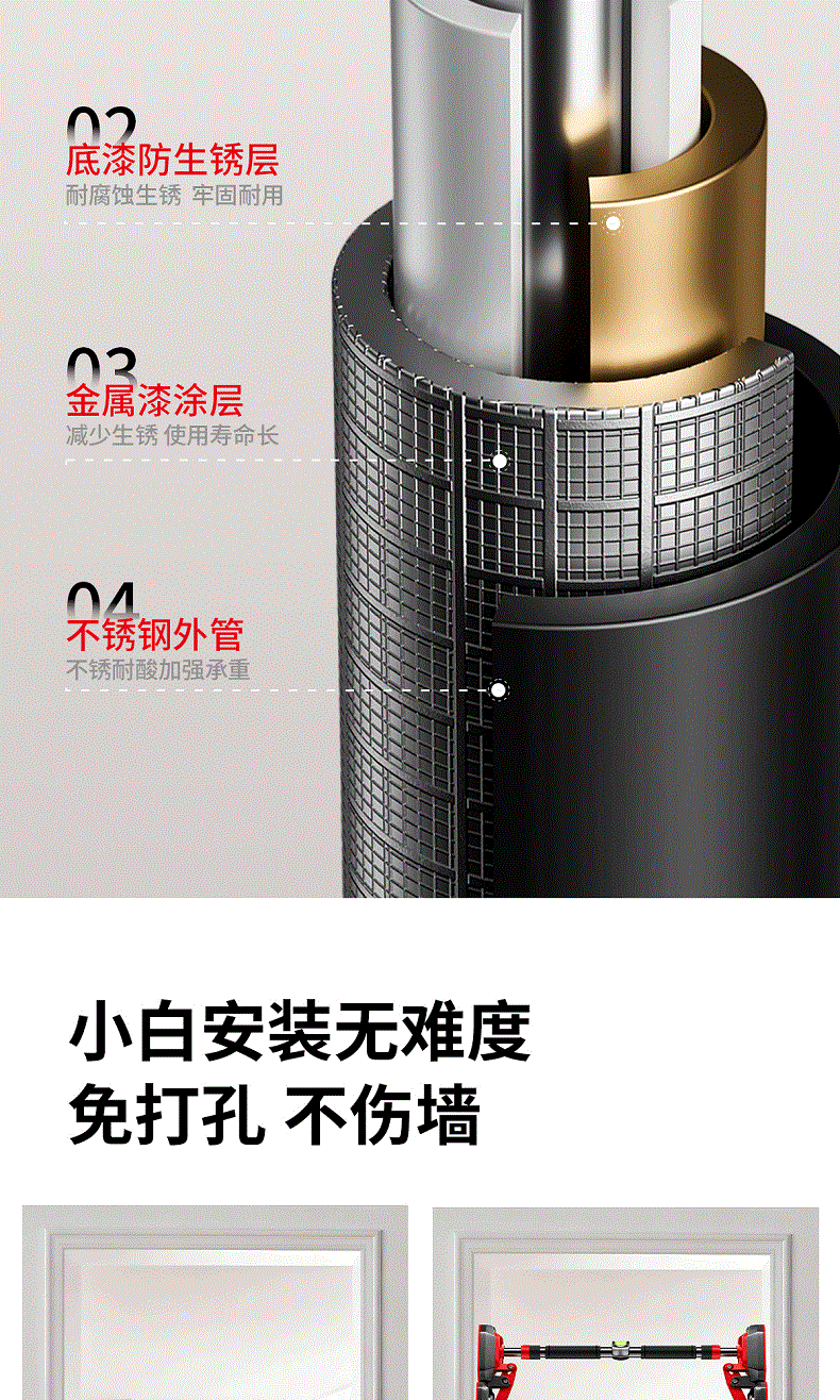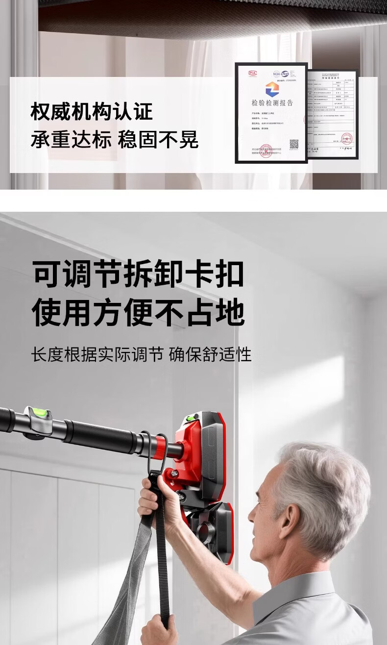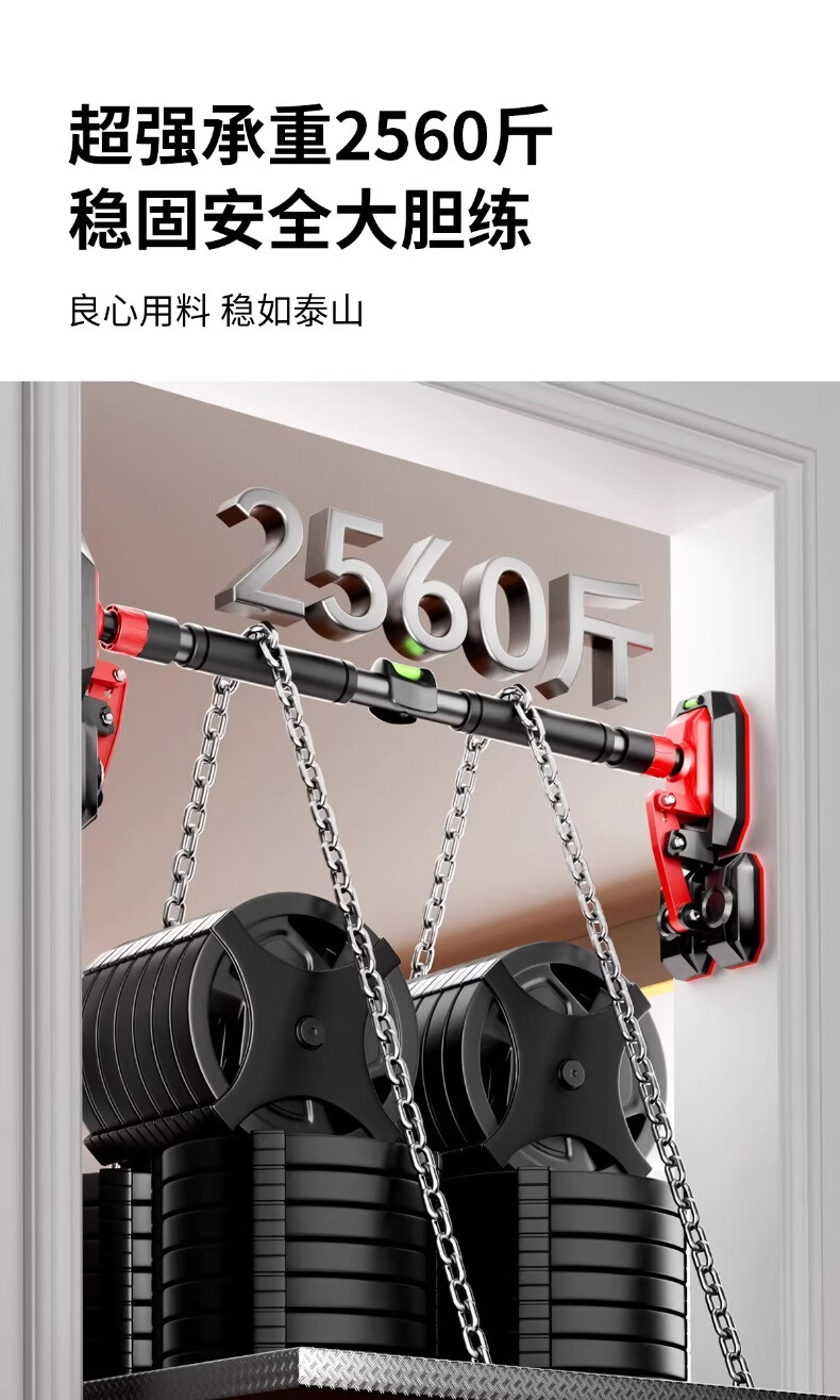 Silk static horizontal bar indoor home punch-free pull-up trainer home fitness equipment stretch bar door frame single bar horizontal bar suitable for 120-165CM installation + ring traction belt no specifications