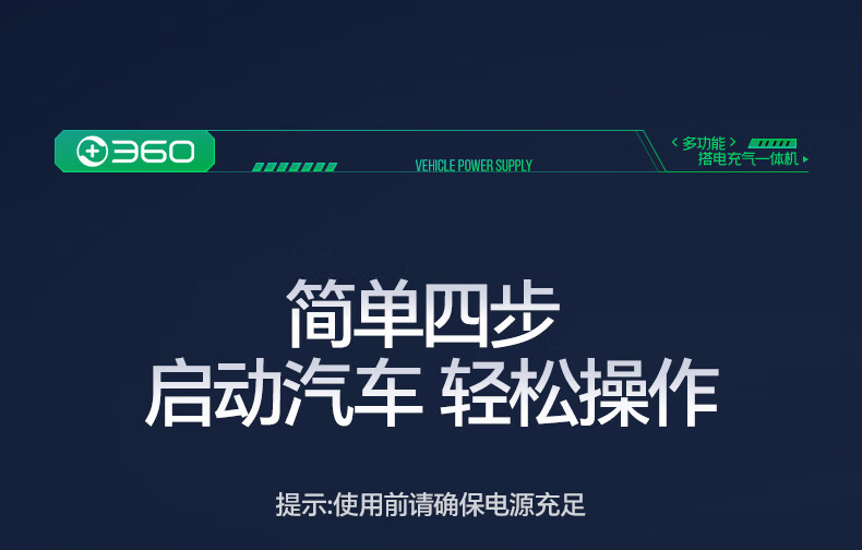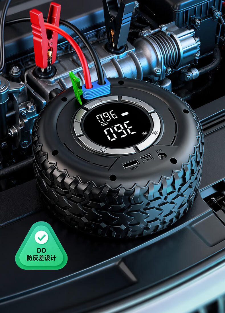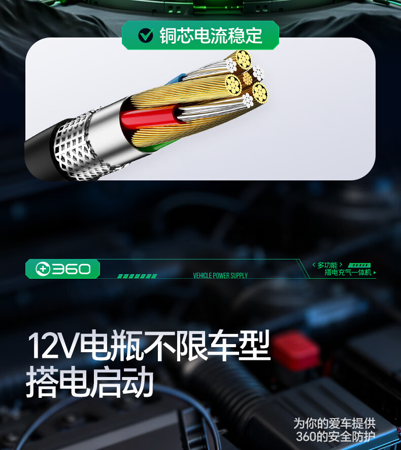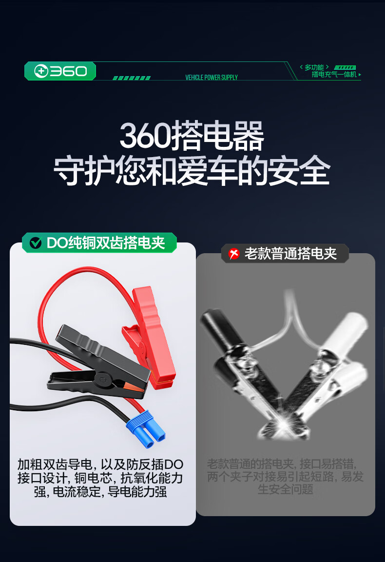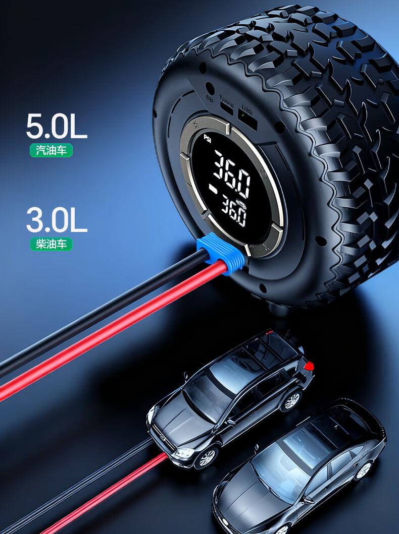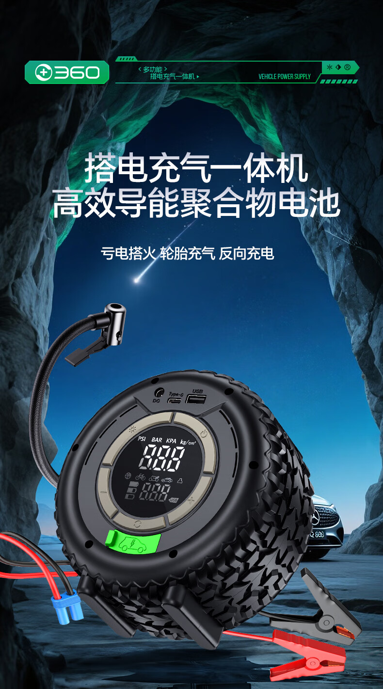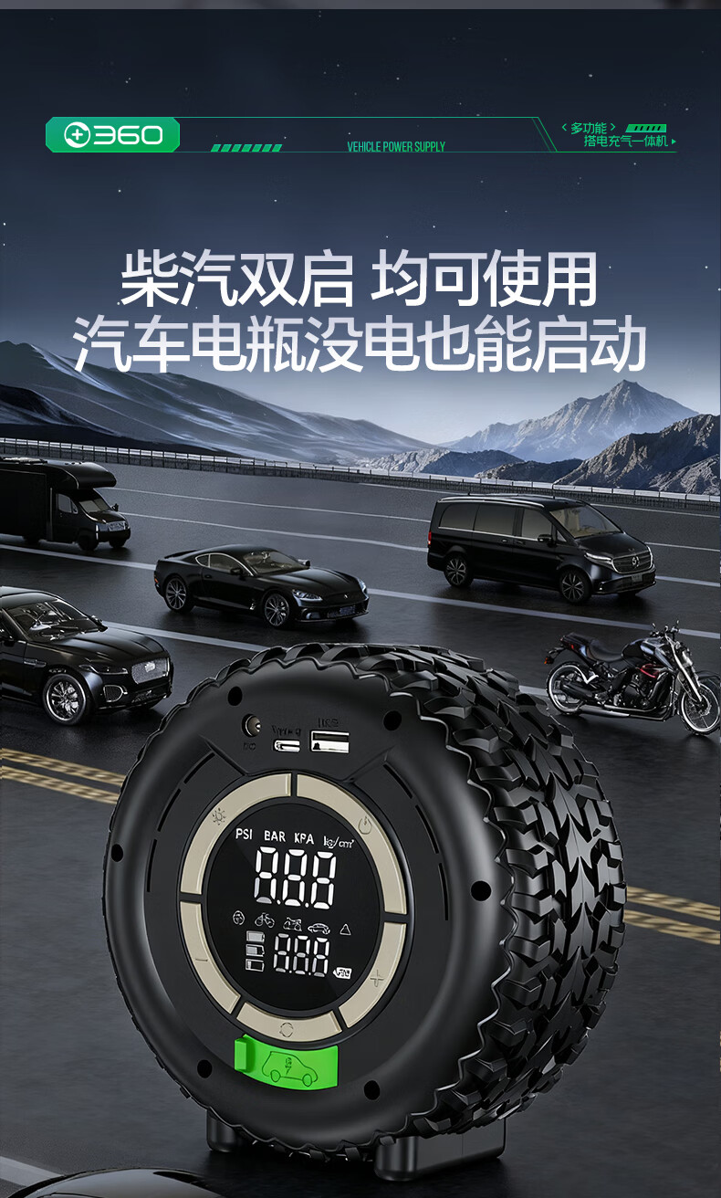 360 car emergency starting power supply, power bank, car battery 12v, charging and inflating all-in-one machine, strong starting ignition artifact, car air pump, tire pressure measurement, rescue air pump, 6000 mAh丨Free upgraded bold clip + storage bag