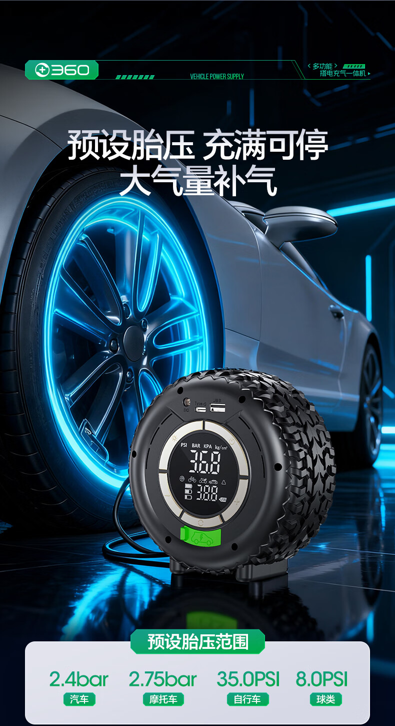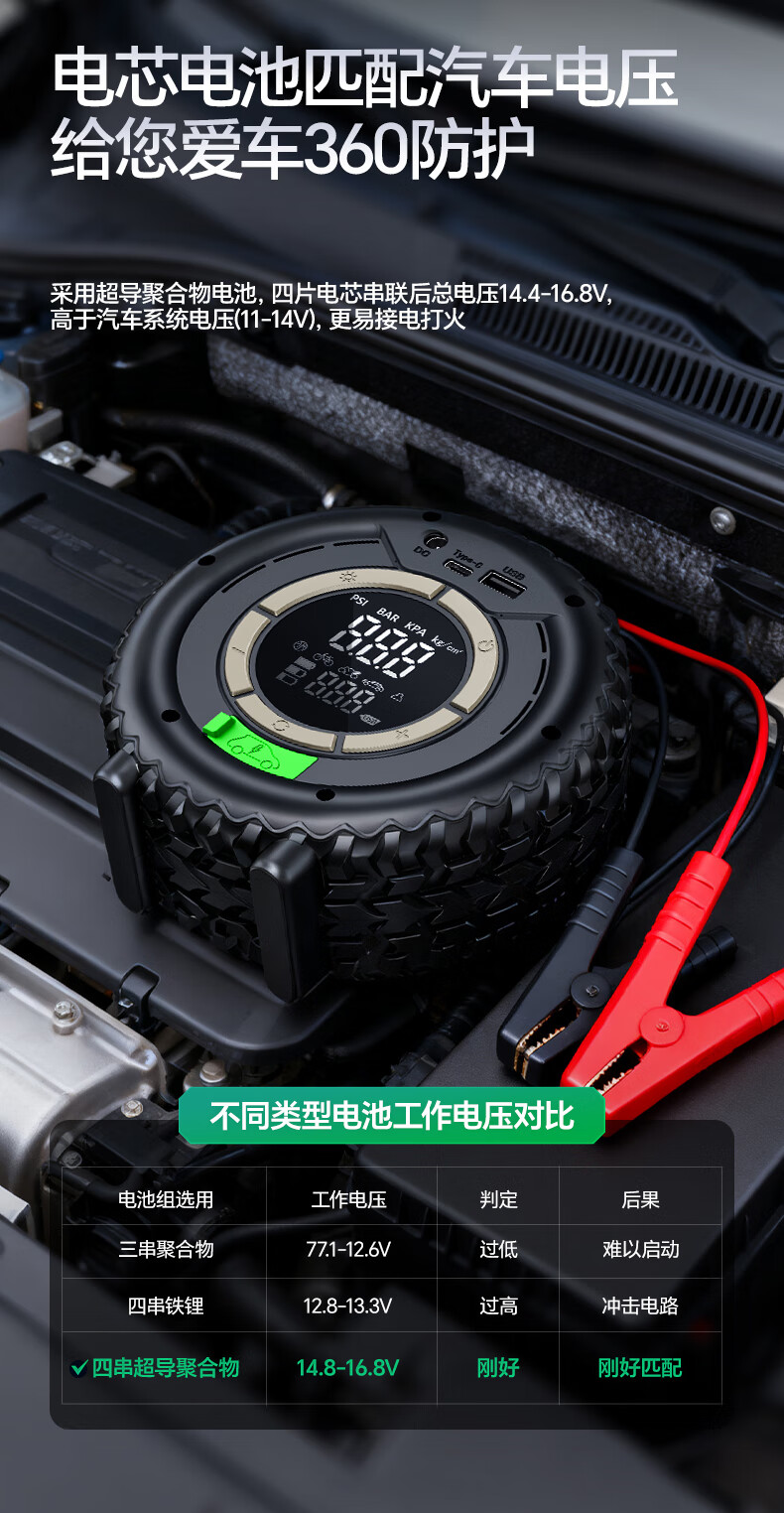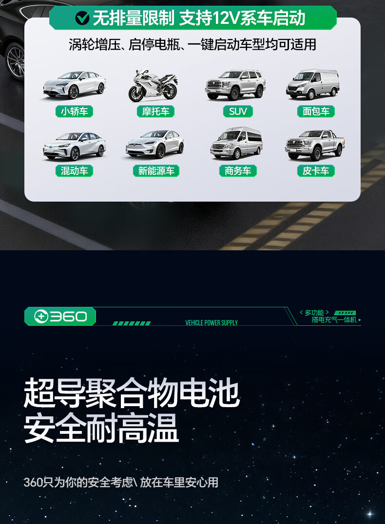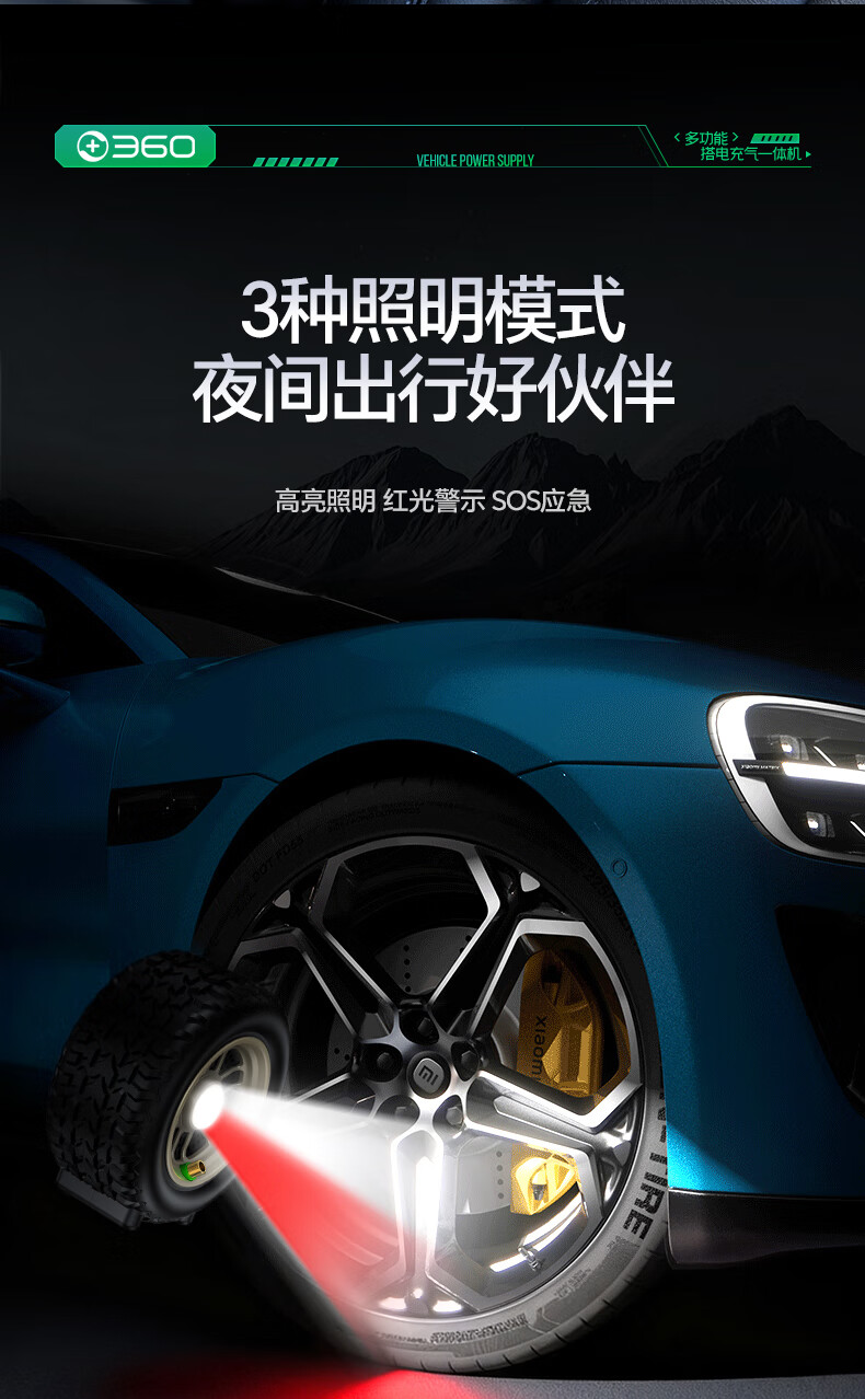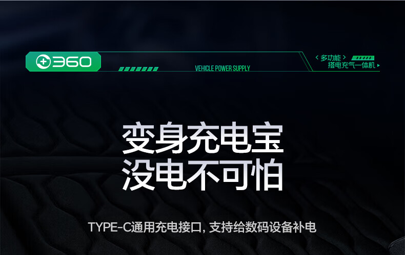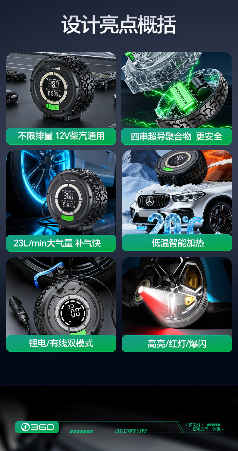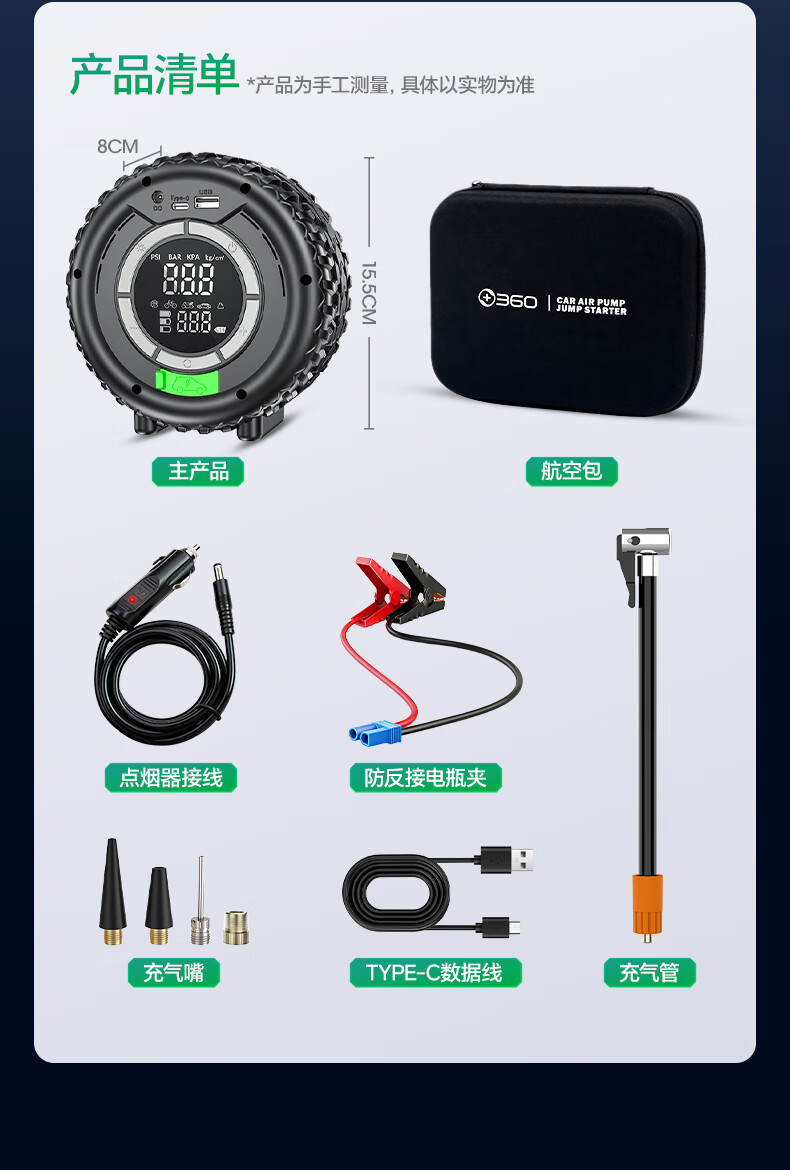 360 car emergency starting power supply, power bank, car battery 12v, charging and inflating all-in-one machine, strong starting ignition artifact, car air pump, tire pressure measurement, rescue air pump, 6000 mAh丨Free upgraded bold clip + storage bag