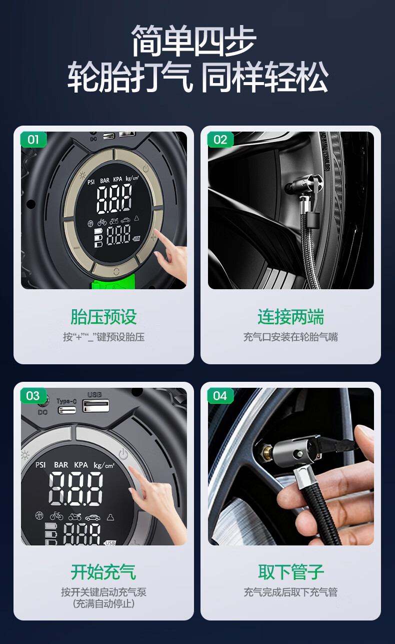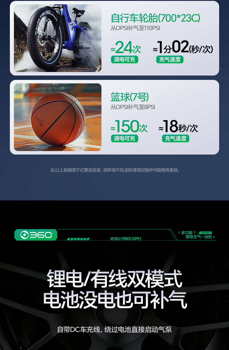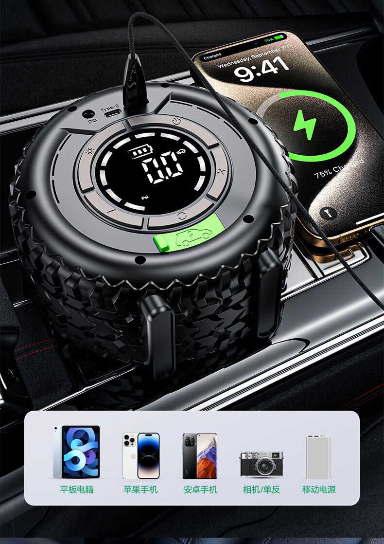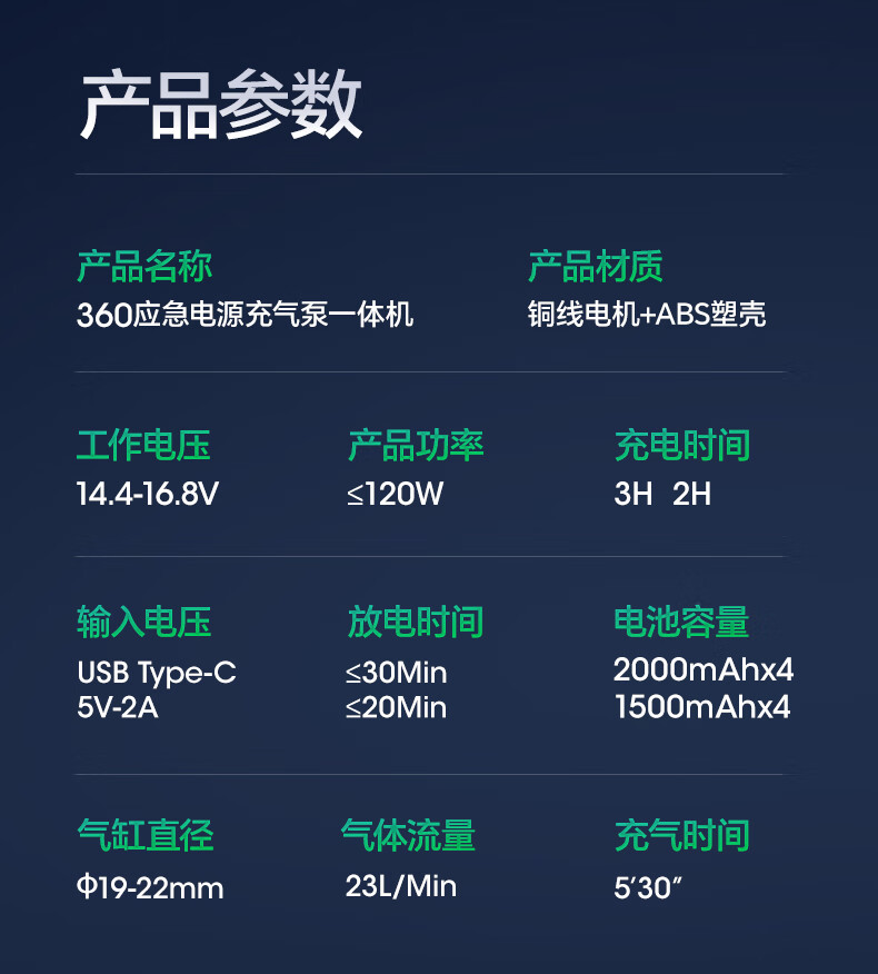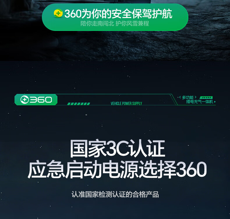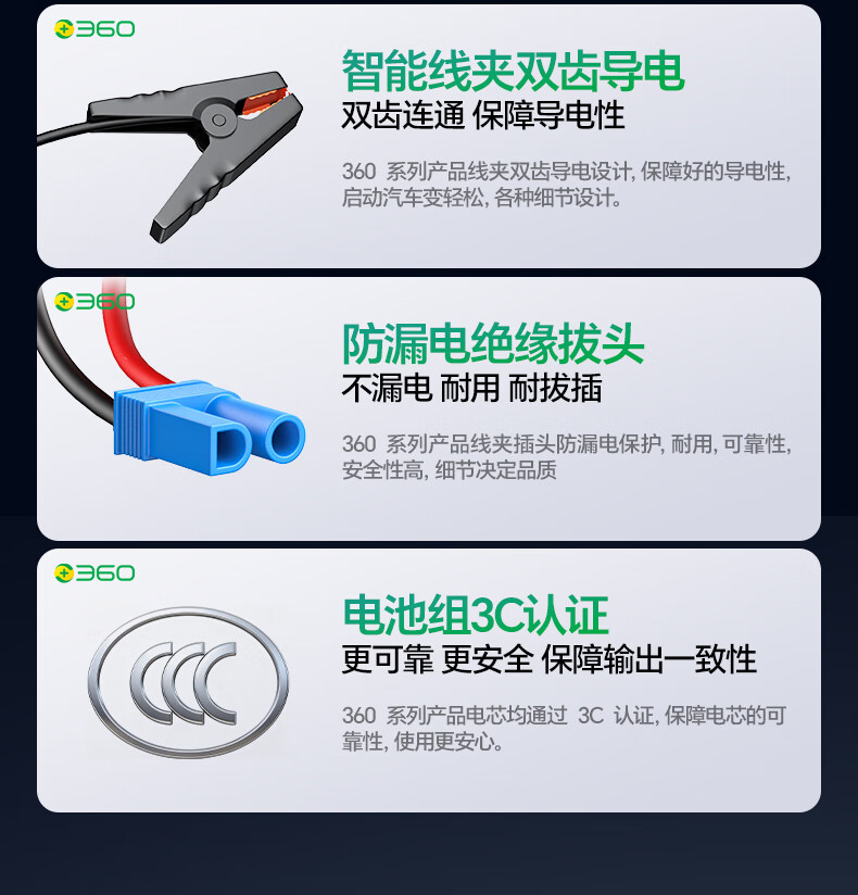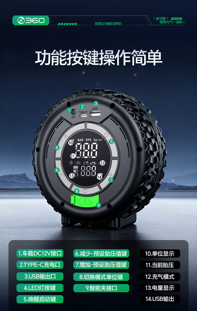 360 car emergency starting power supply, power bank, car battery 12v, charging and inflating all-in-one machine, strong starting ignition artifact, car air pump, tire pressure measurement, rescue air pump, 6000 mAh丨Free upgraded bold clip + storage bag