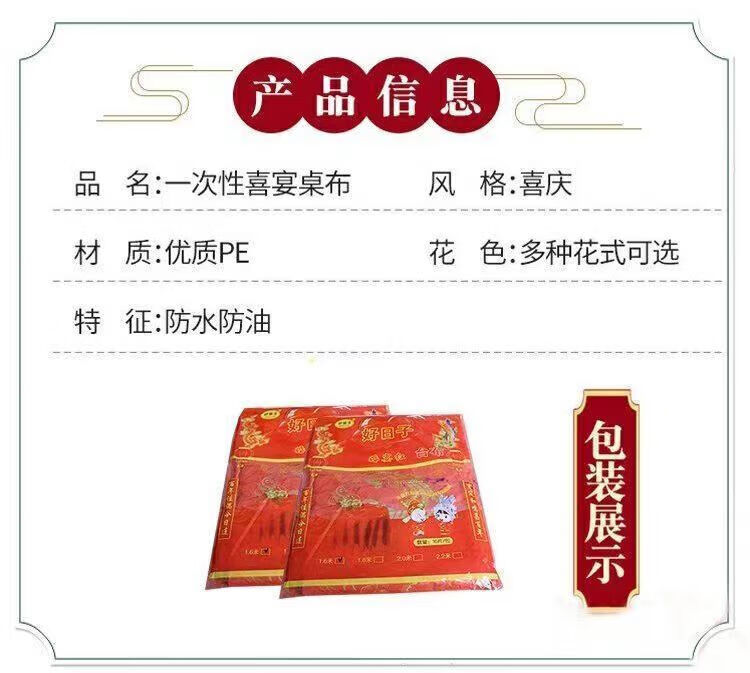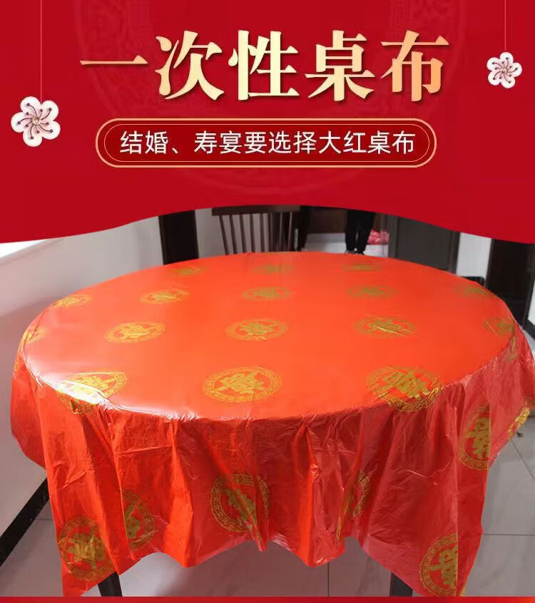 He Jiagong disposable tablecloth red tablecloth plastic round thickened wedding banquet tablecloth rectangular festive film