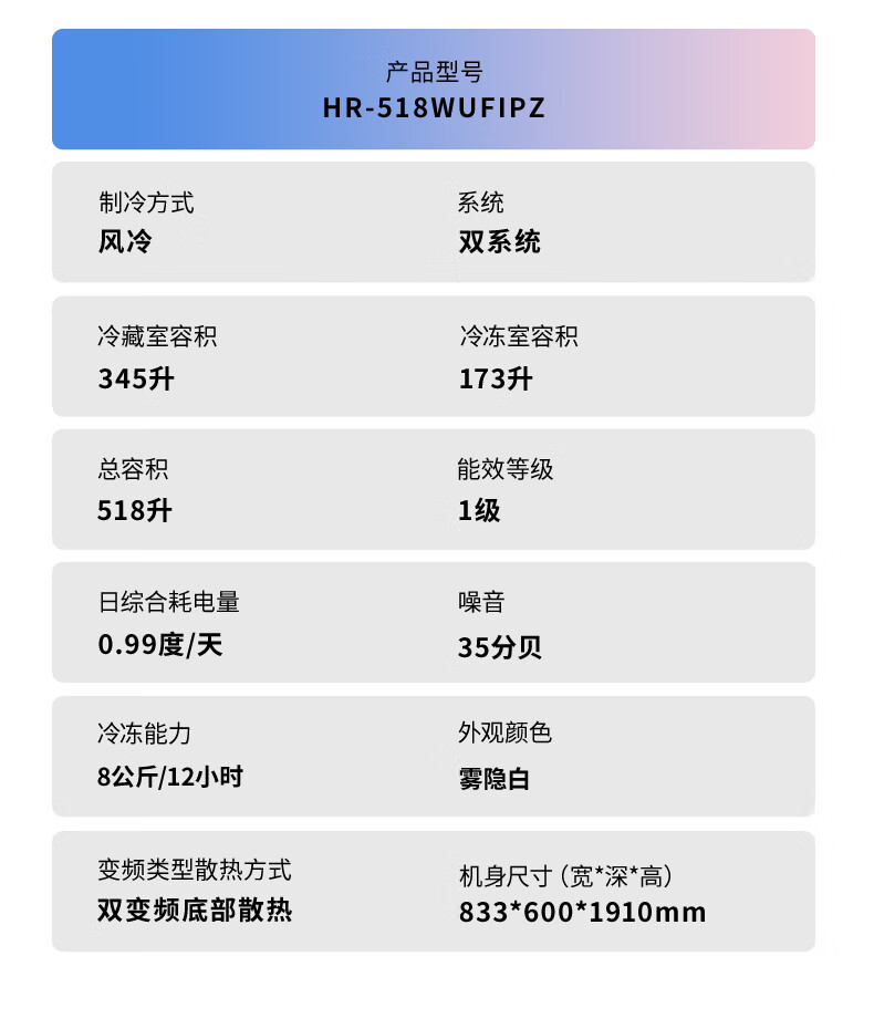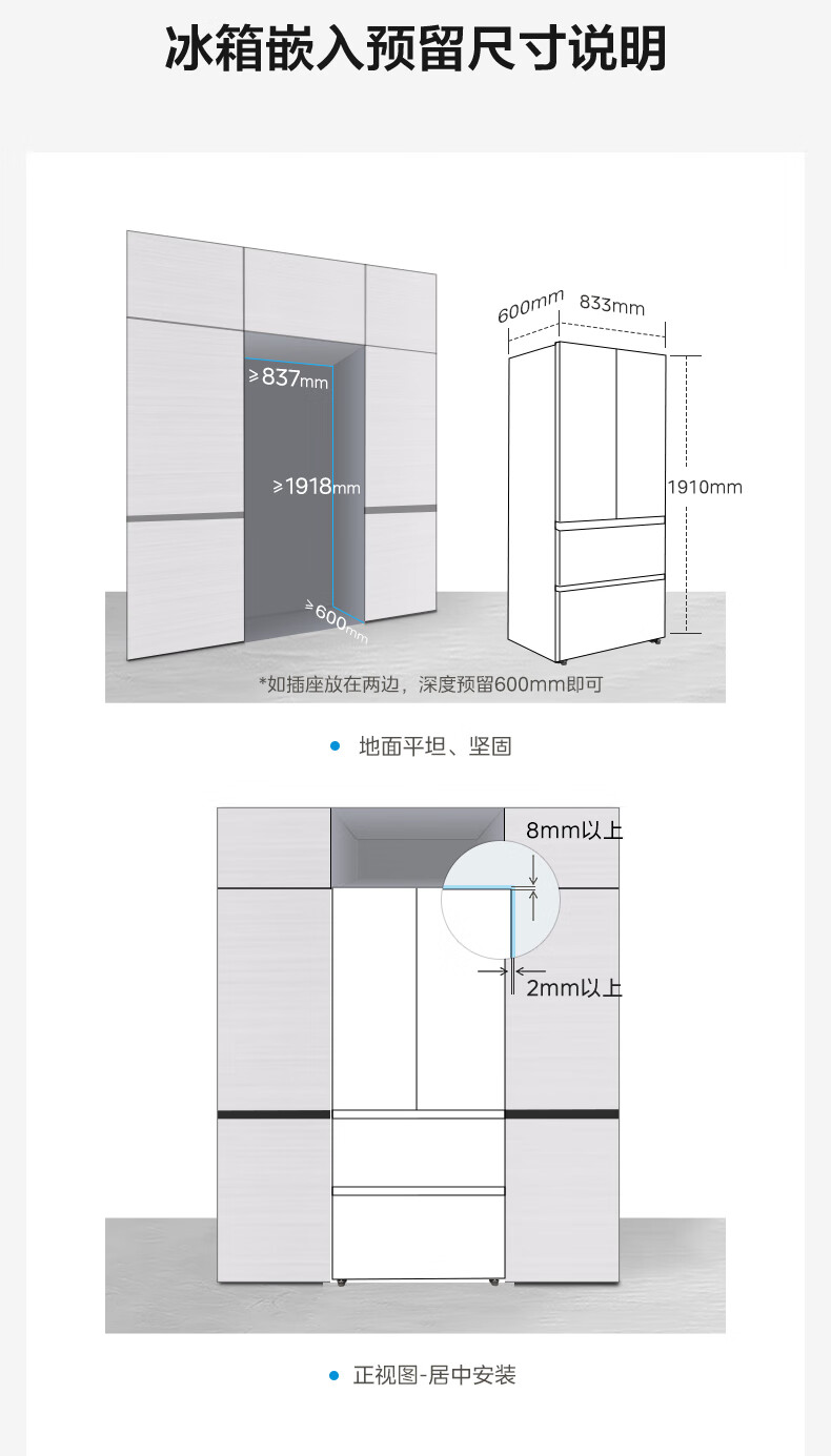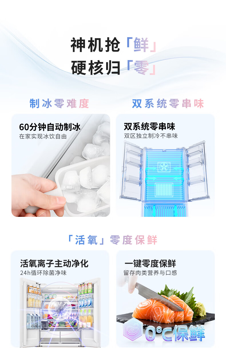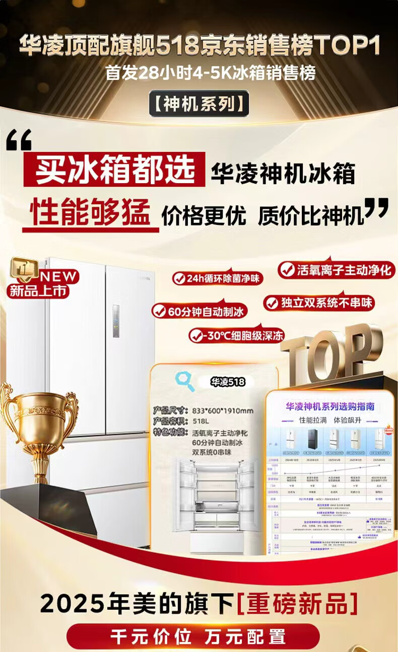 Hualing Zeus 518 automatic ice-making dual system ultra-thin zero-embedded French multi-door refrigerator HR-518WUFIPZ produced by Midea