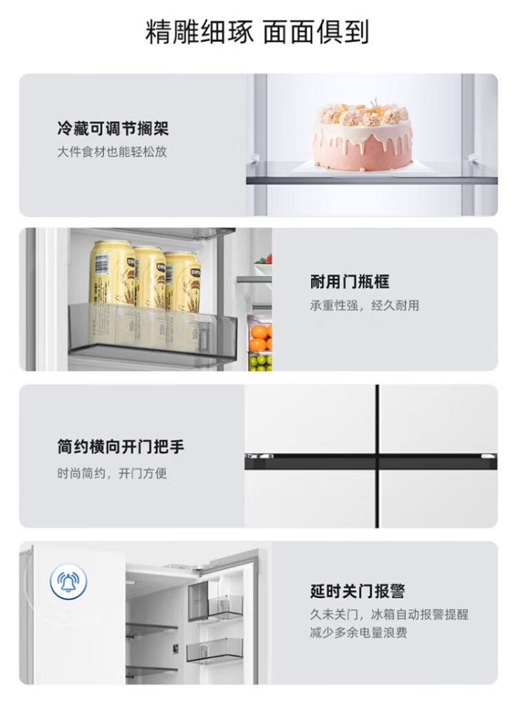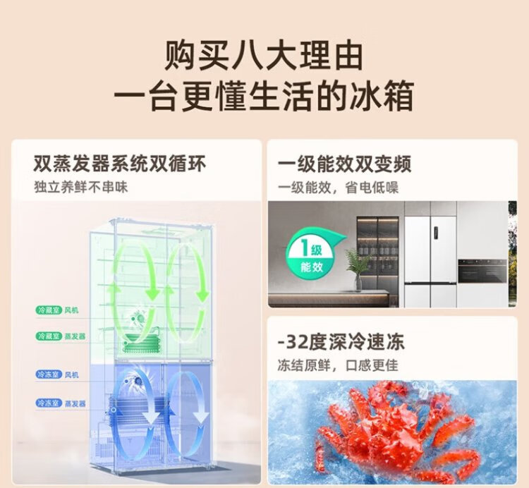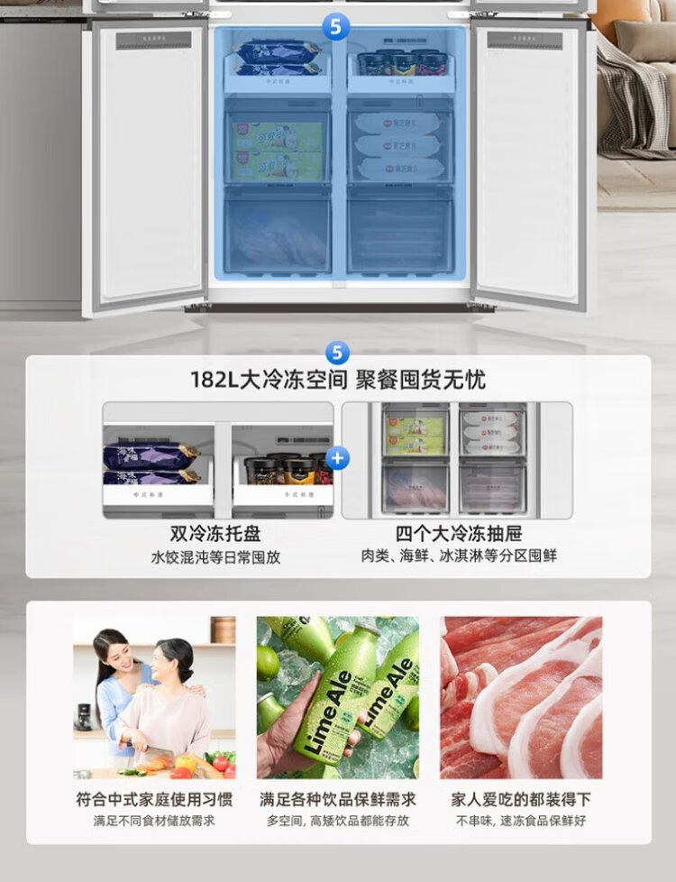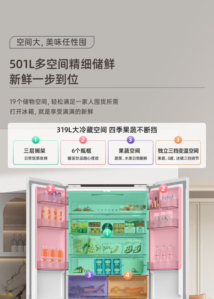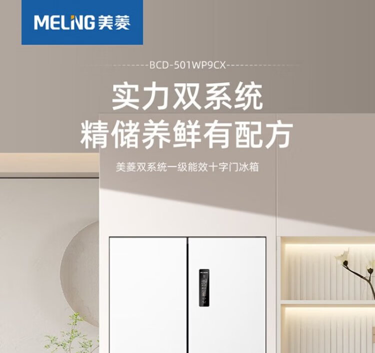 Meiling Storage Division 501 liter dual system first-level energy efficiency four-open cross-door refrigerator household air-cooled variable frequency large capacity ultra-thin antibacterial and odor-free BCD-501WP9CX-white
