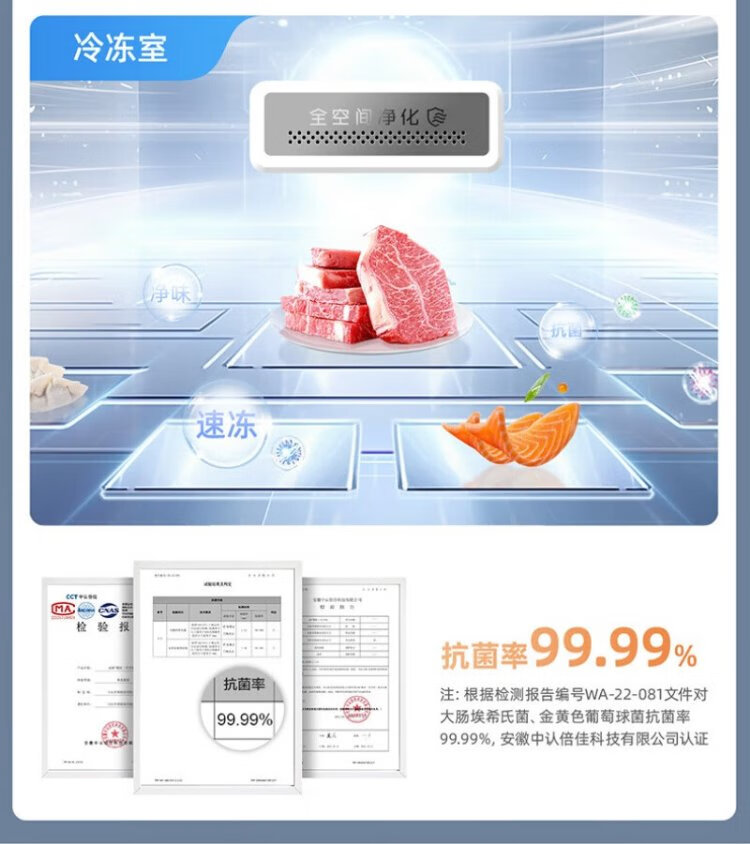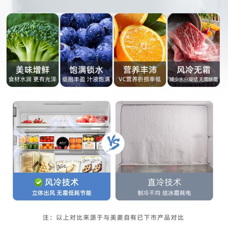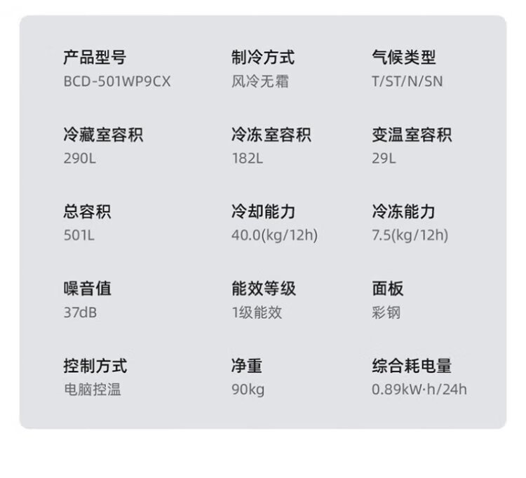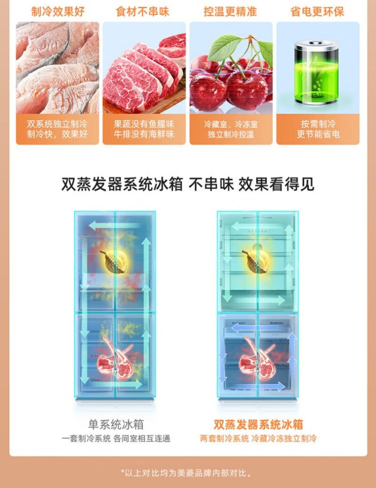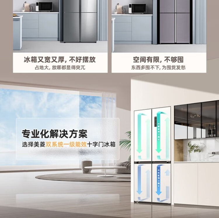 Meiling Storage Division 501 liter dual system first-level energy efficiency four-open cross-door refrigerator household air-cooled variable frequency large capacity ultra-thin antibacterial and odor-free BCD-501WP9CX-white