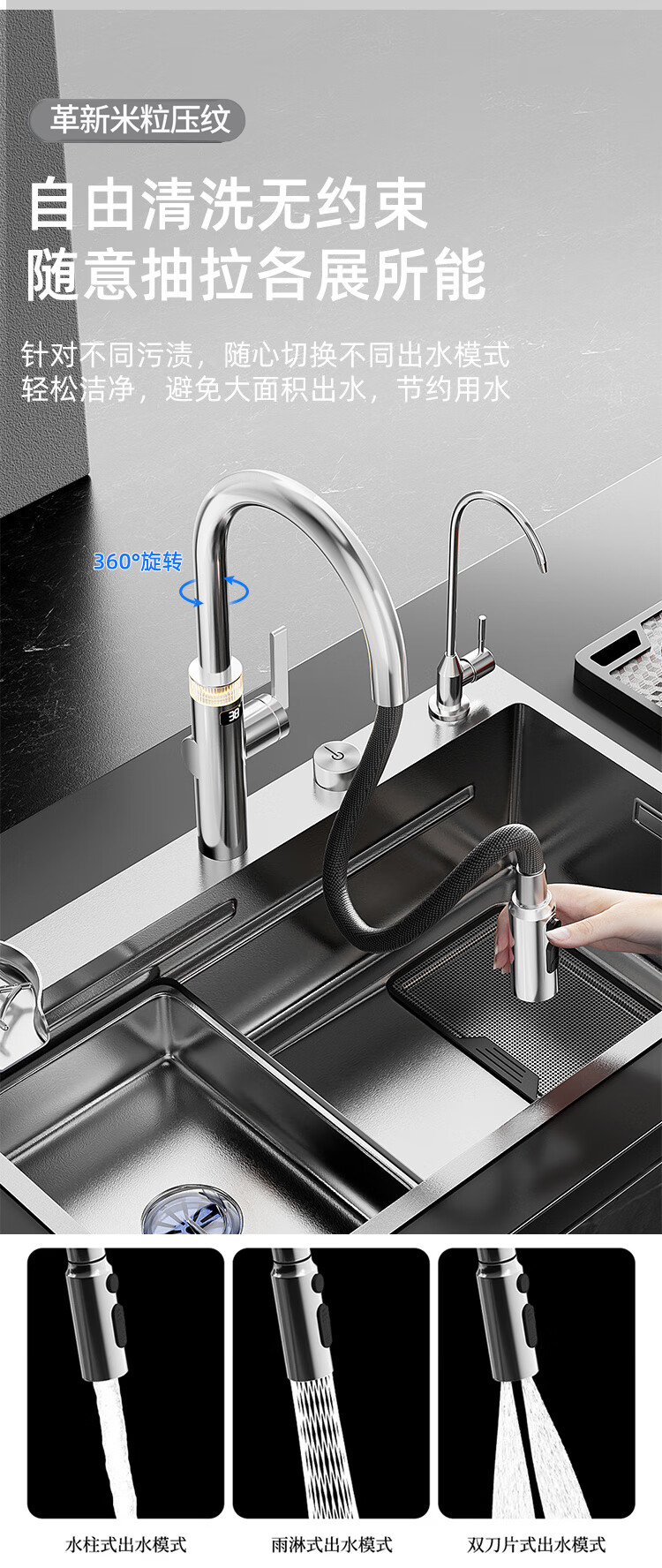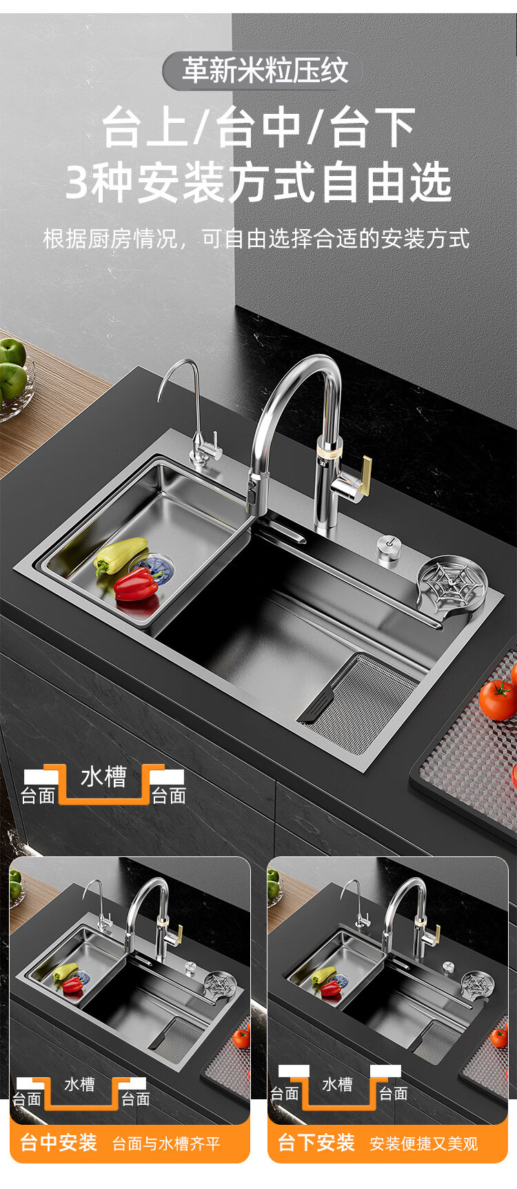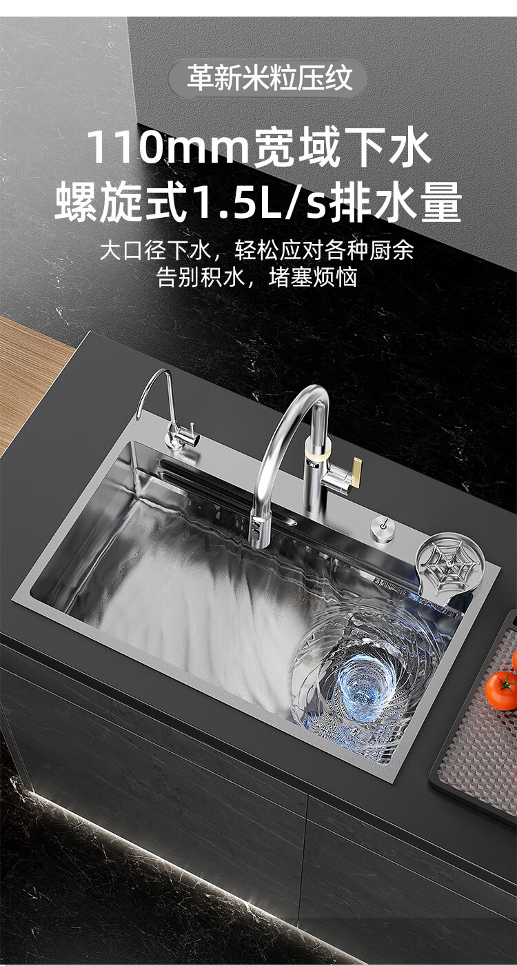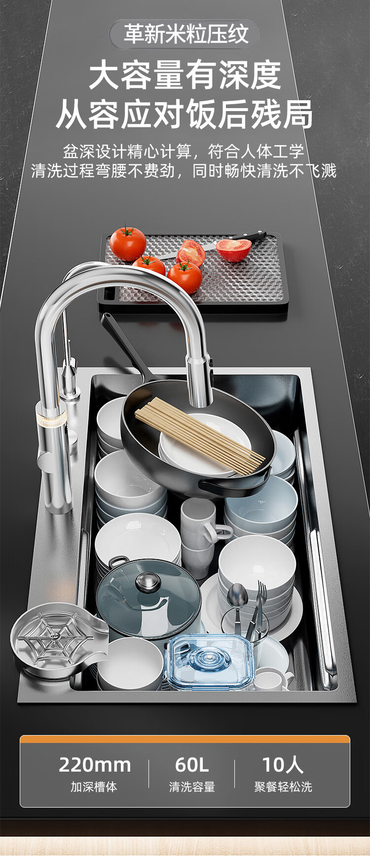 JOMOW sink 5.0 thickened kitchen large single-slot integrated basin 304 stainless steel sink multi-functional vegetable basin B package 75*45 pull-out faucet + soap dispenser