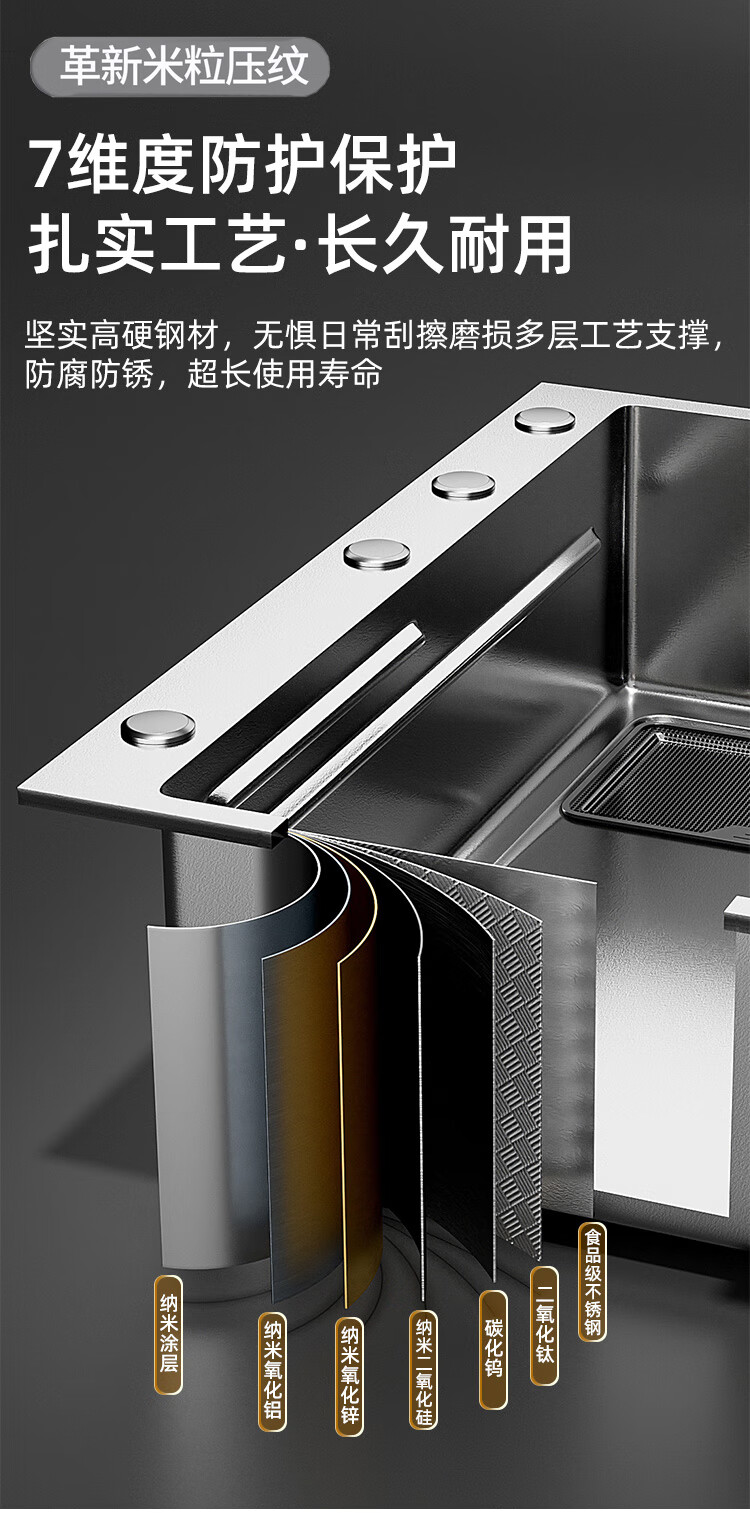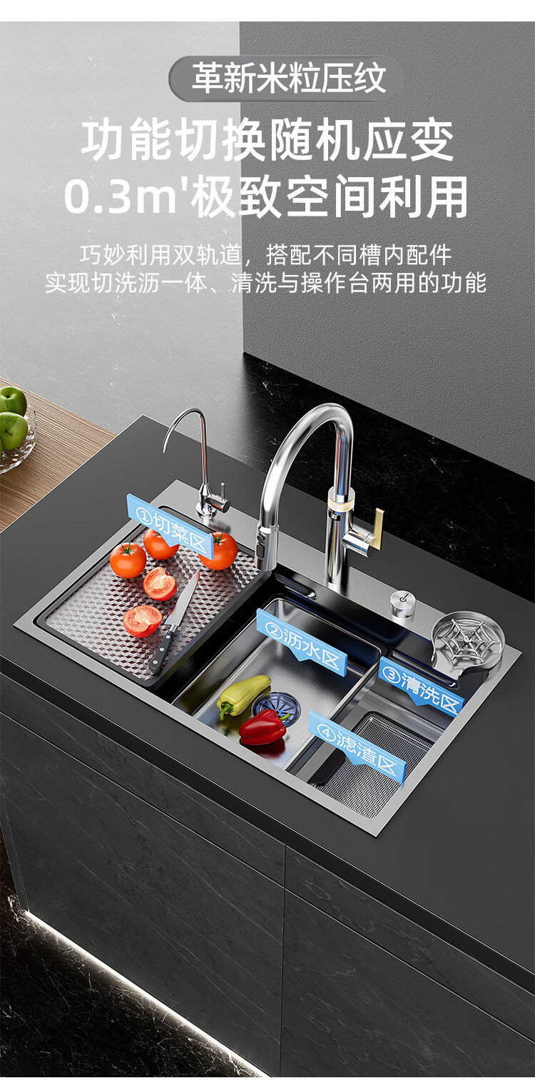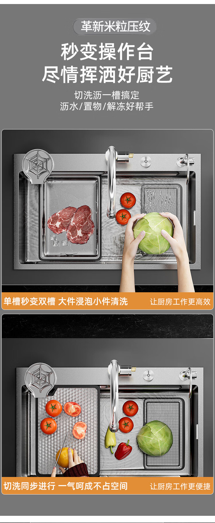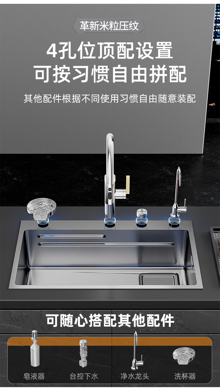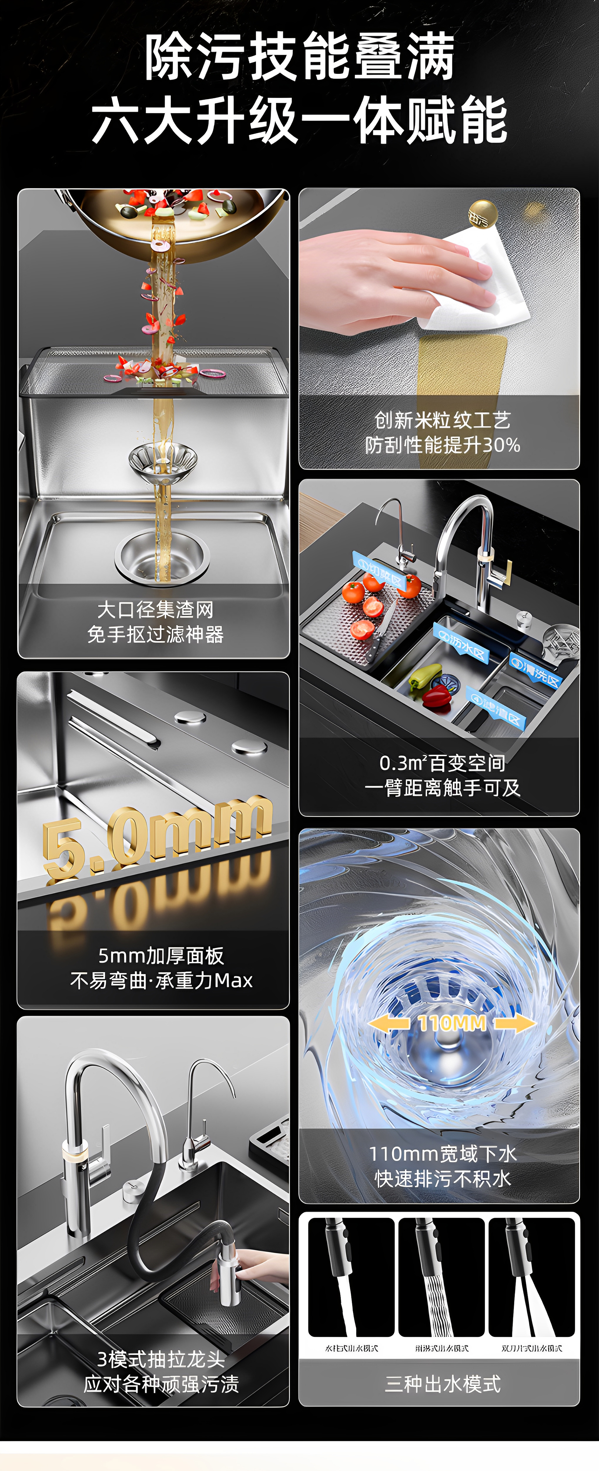 JOMOW sink 5.0 thickened kitchen large single-slot integrated basin 304 stainless steel sink multi-functional vegetable basin B package 75*45 pull-out faucet + soap dispenser