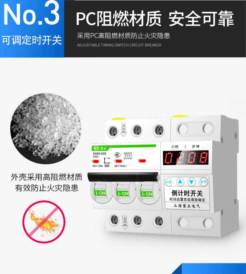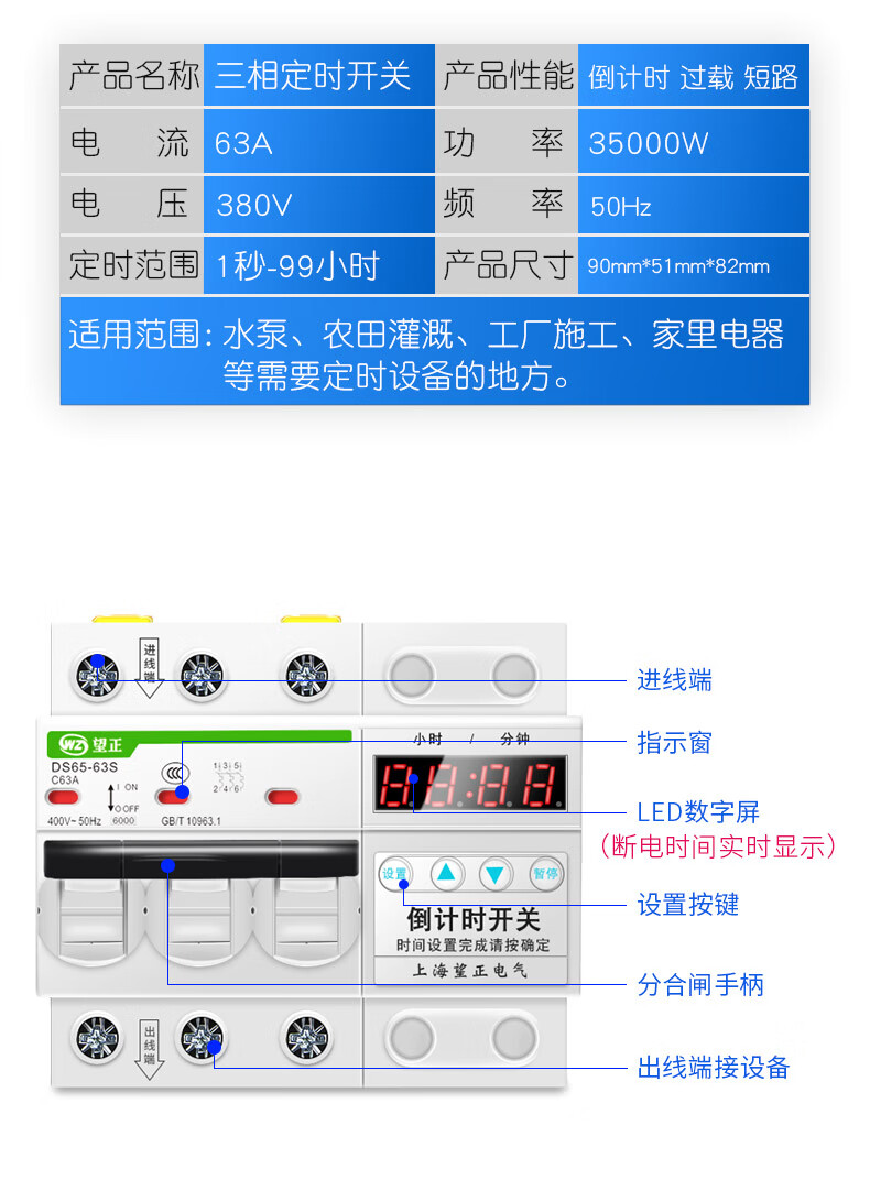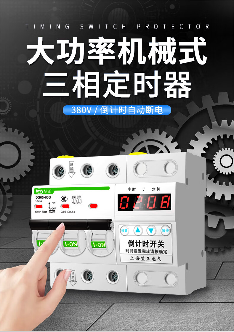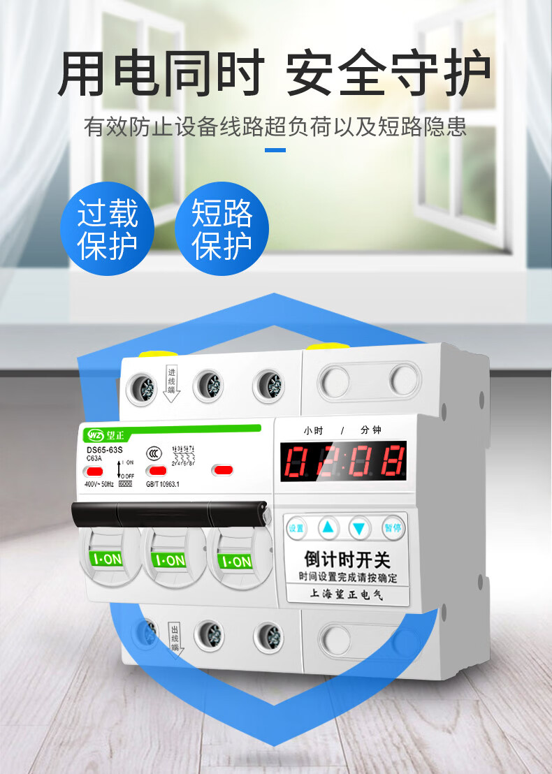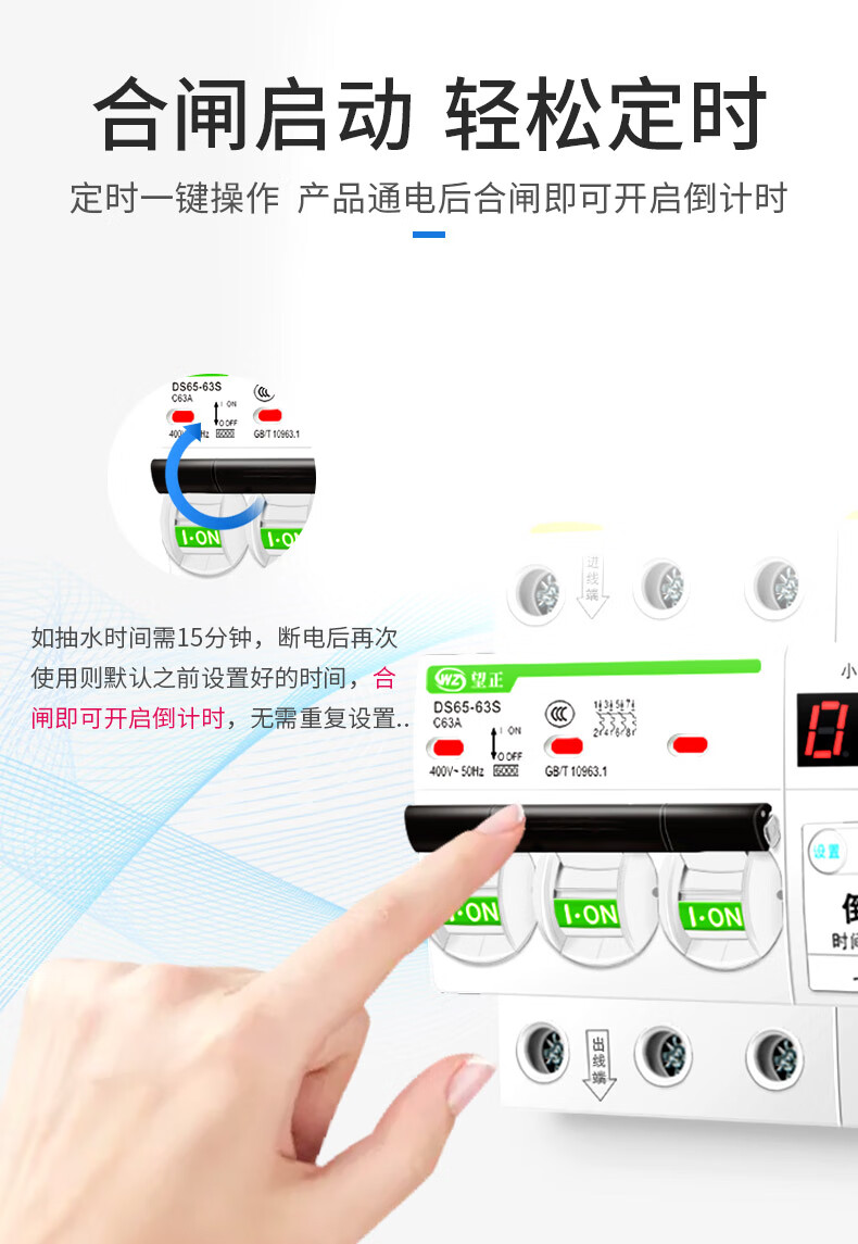 High-power time switch three-phase 380V timer time control switch water pump countdown control circuit breaker 220V63A 12 kilowatt (1 second-100 hours) short circuit